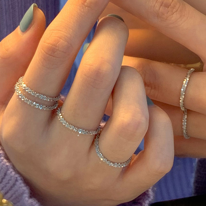 Sparkling Element Ring Silver Ring Simple Female Style Folded Closed Index Finger Ring