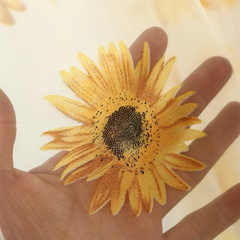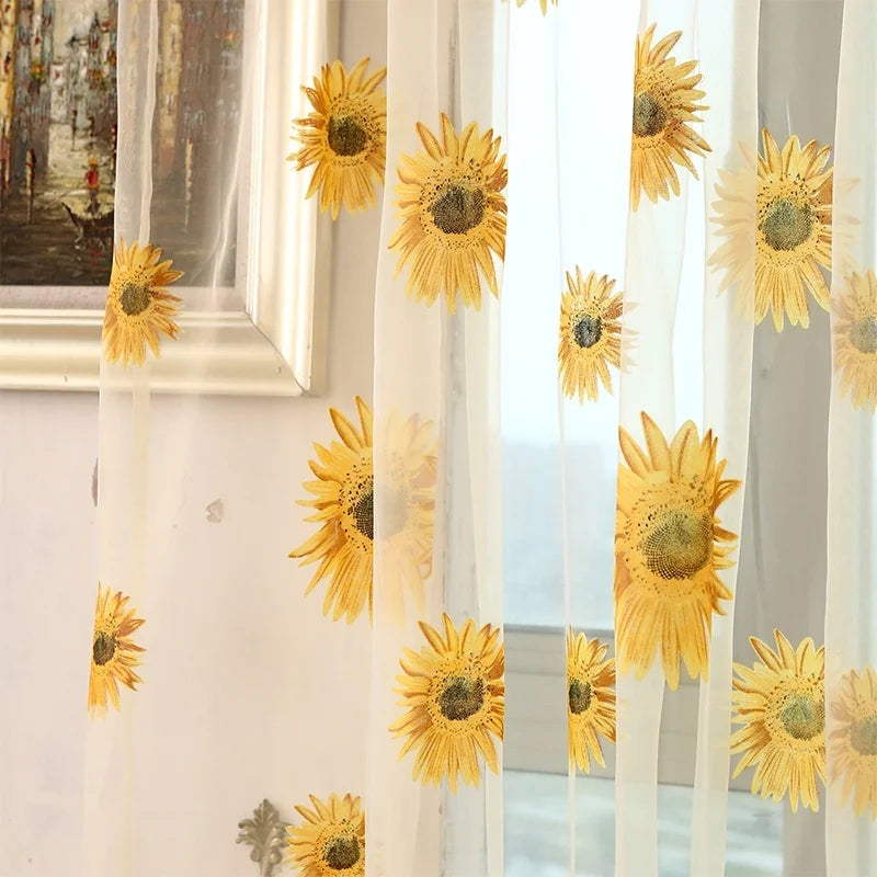Bright Sunflower Sheer Curtains | Tulle Window Drapes for Home Décor | 39"x79"