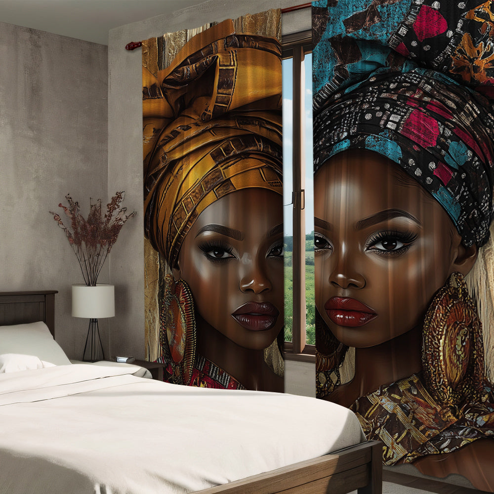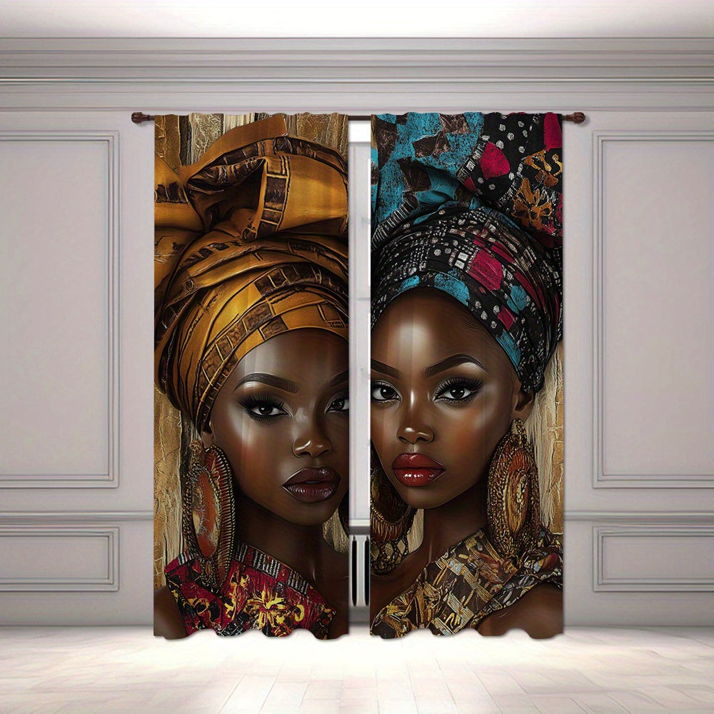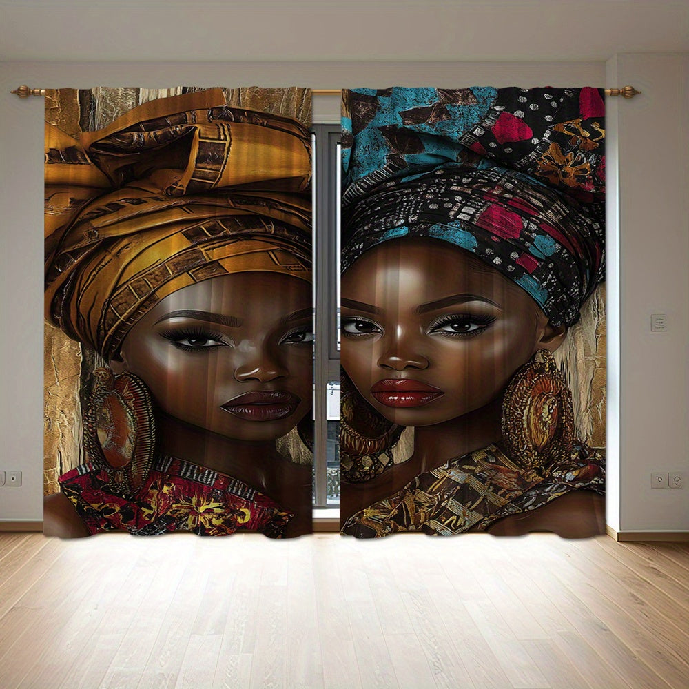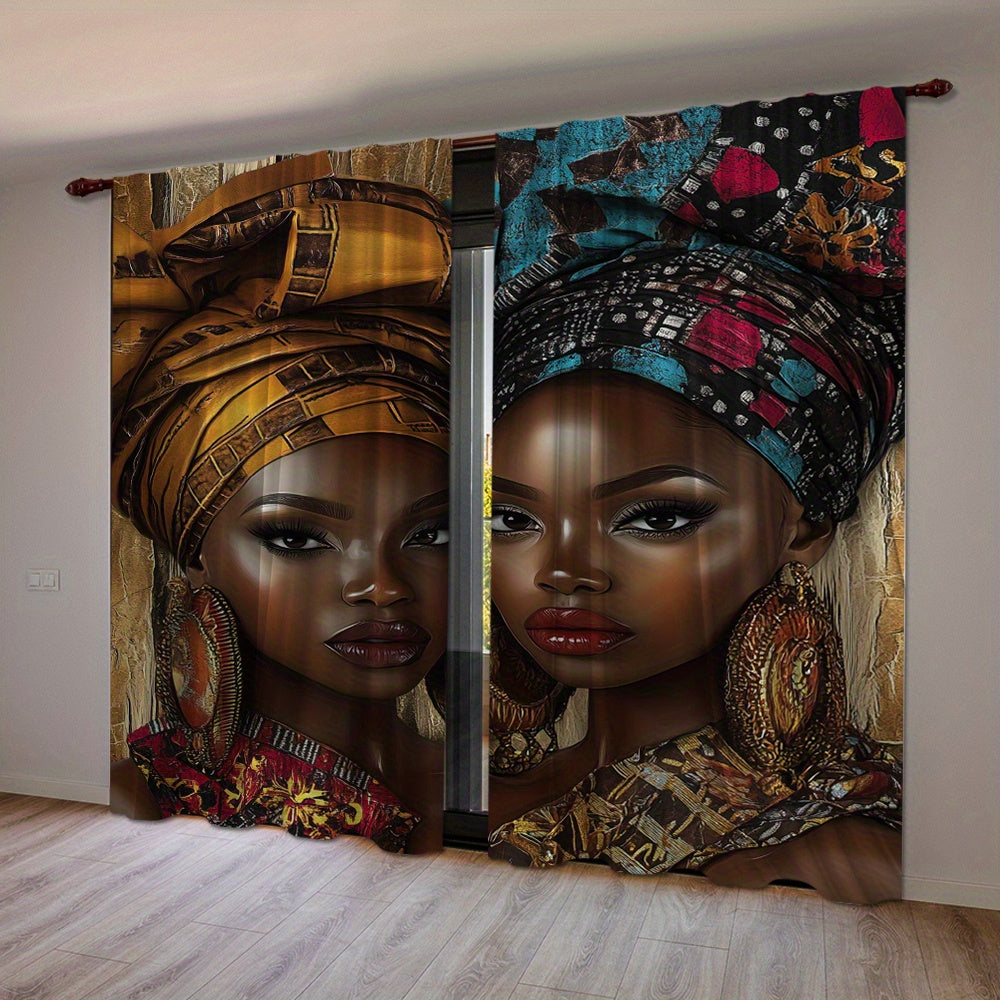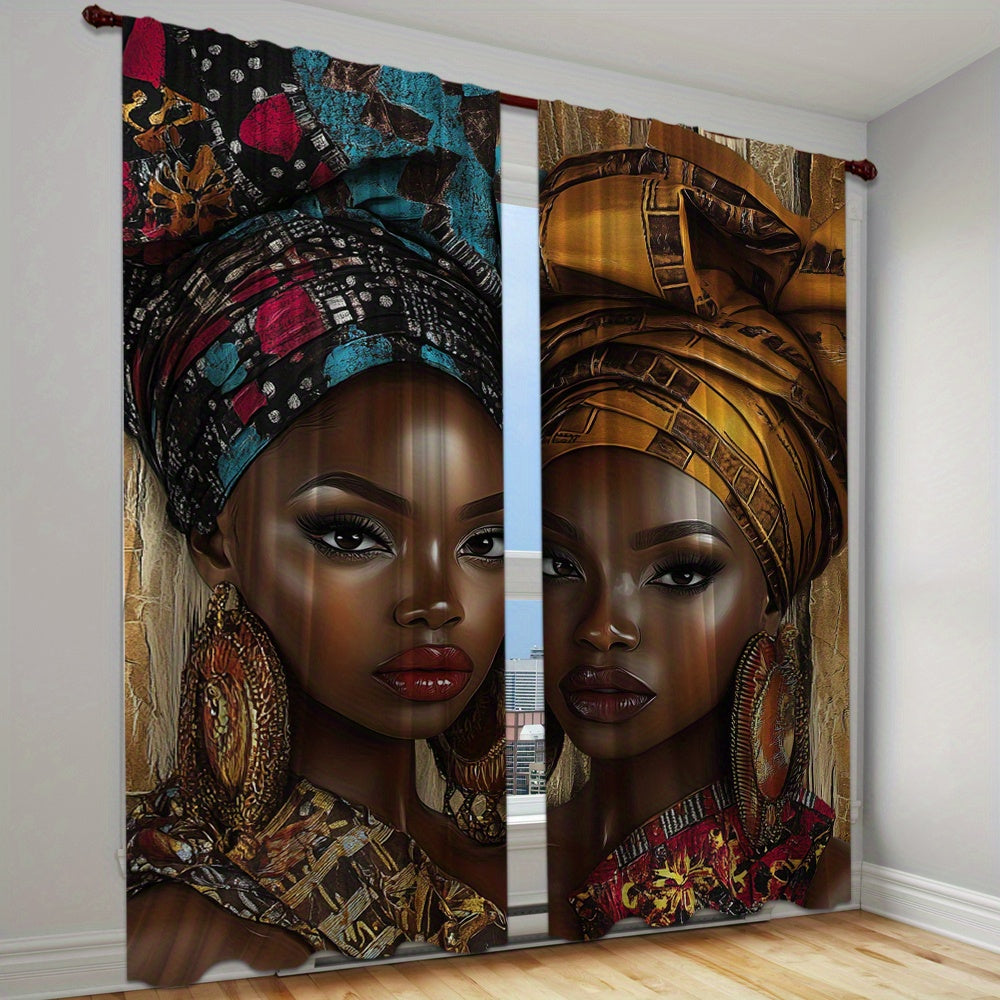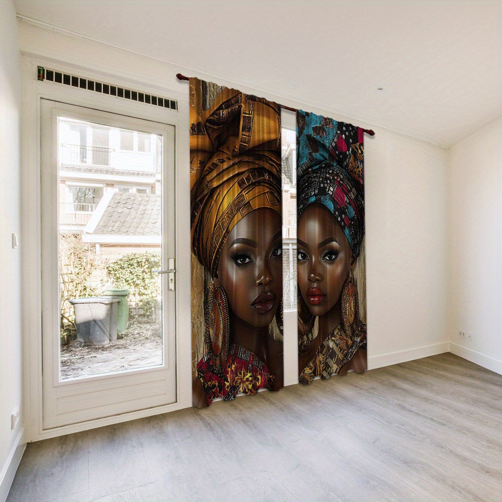 African Woman Print Drapes Set of 2, Rod Pocket Polyester Curtains, Digital Print Home Decor for Living Room, Bedroom, Dining - 14+ Age Group (Rod Not Included)