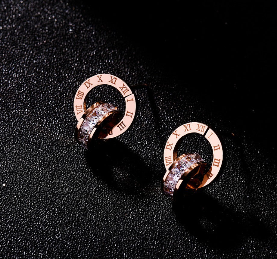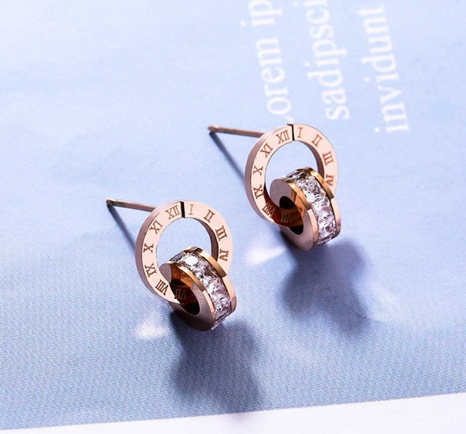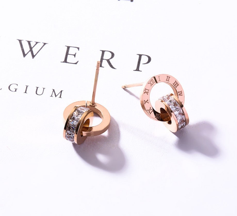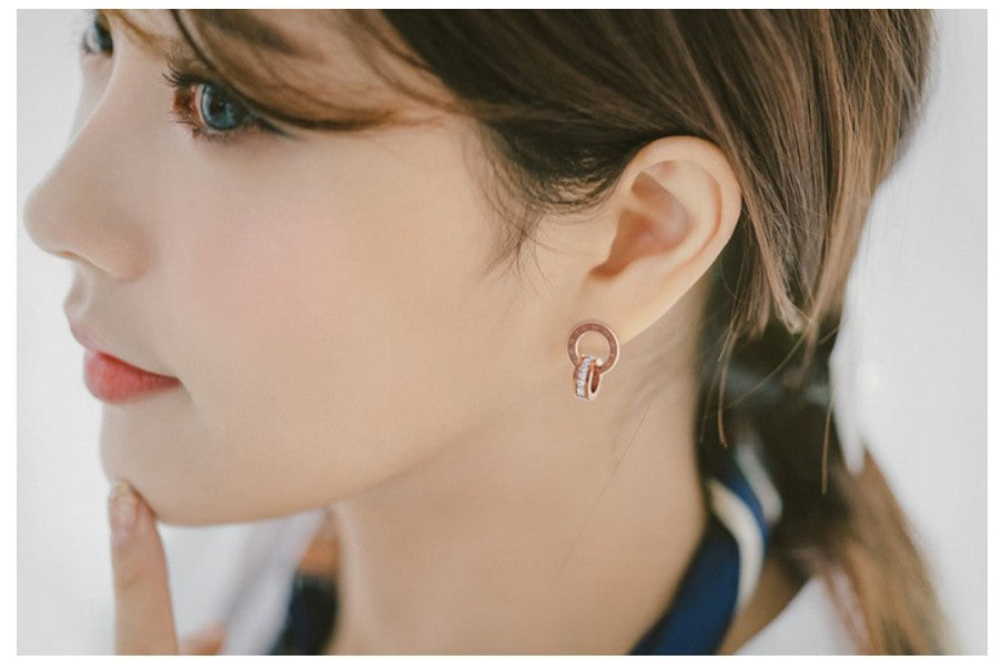 Stainless Steel Rose Gold Double Ring Stud Earrings