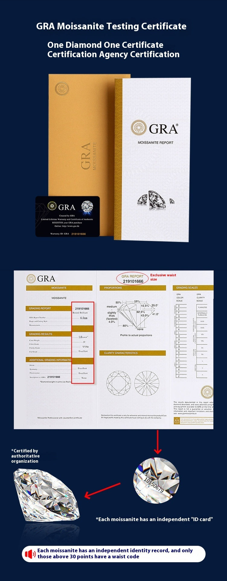 Color: 1 karat [high carbon stone], 1 karat [moissanite GRA certificate waist size Black Card]]
