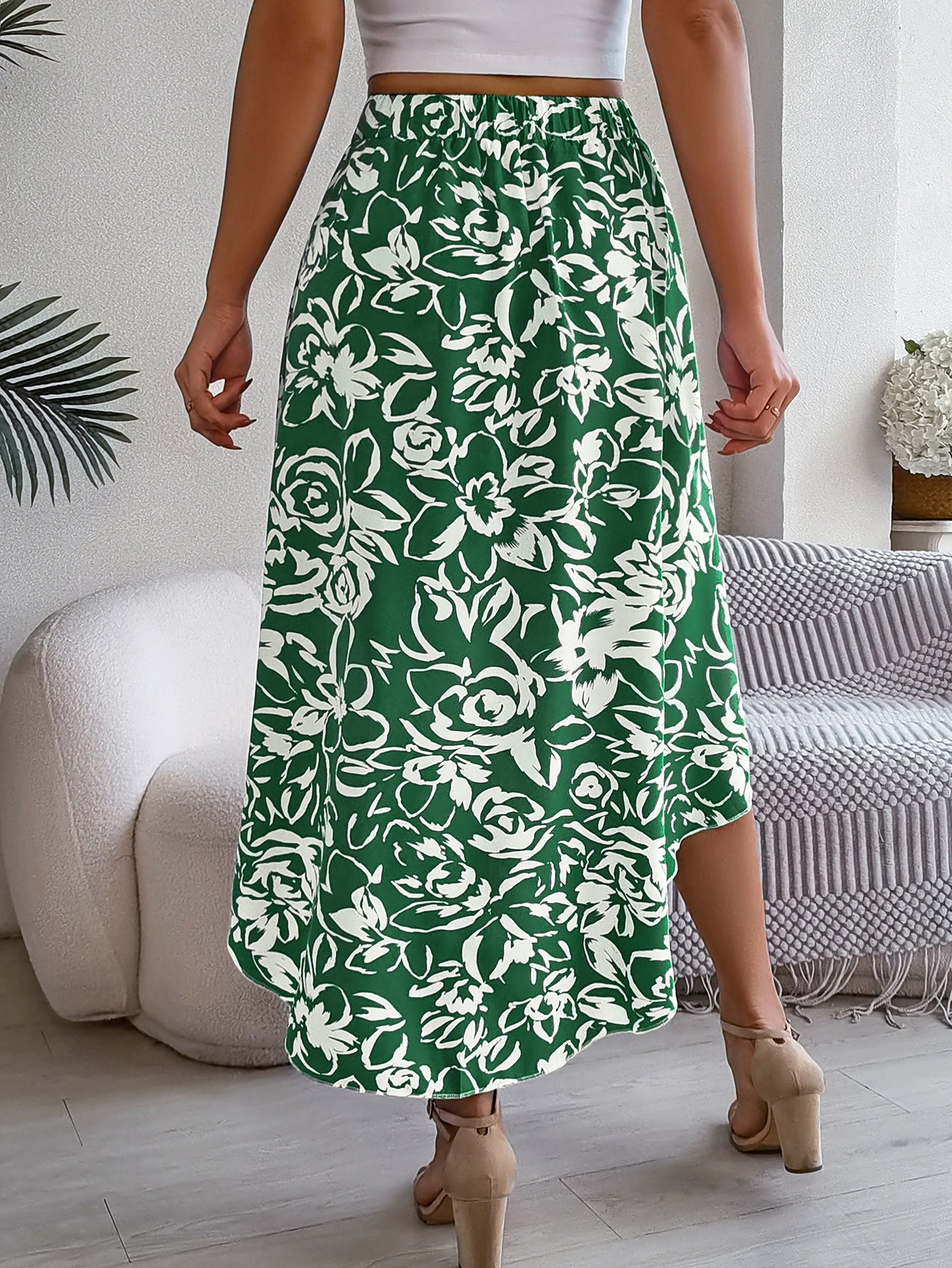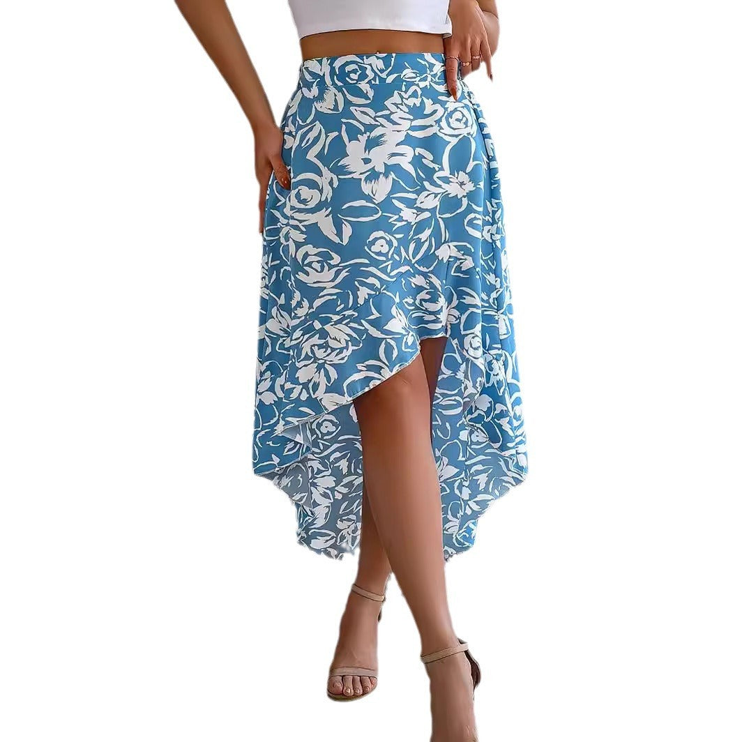 Summer Flower Ruffled Mid-length Irregular Skirt