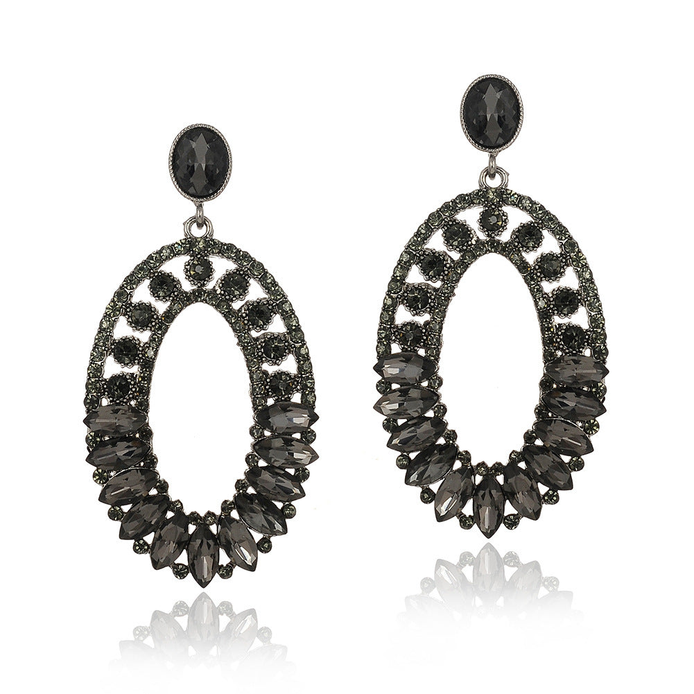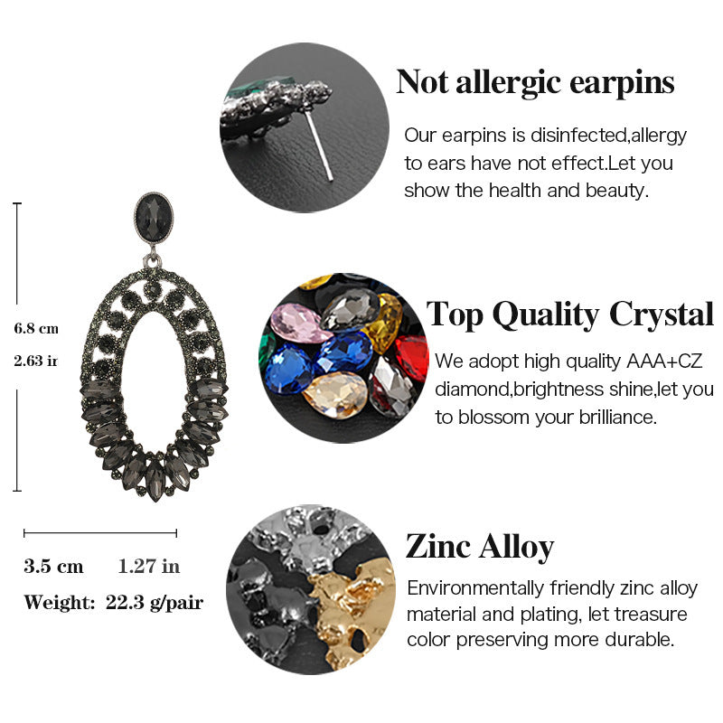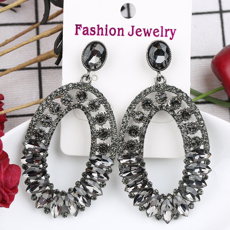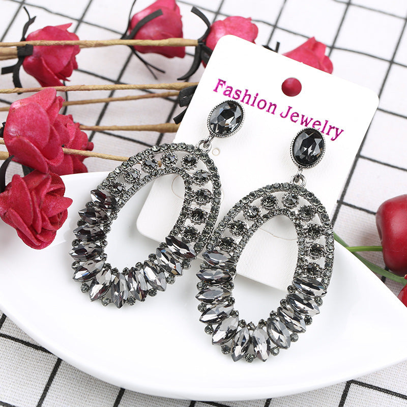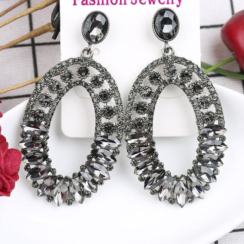 Oval Luxury Crystal Earrings Zinc Alloy Earrings Hollow Design Dress Earrings