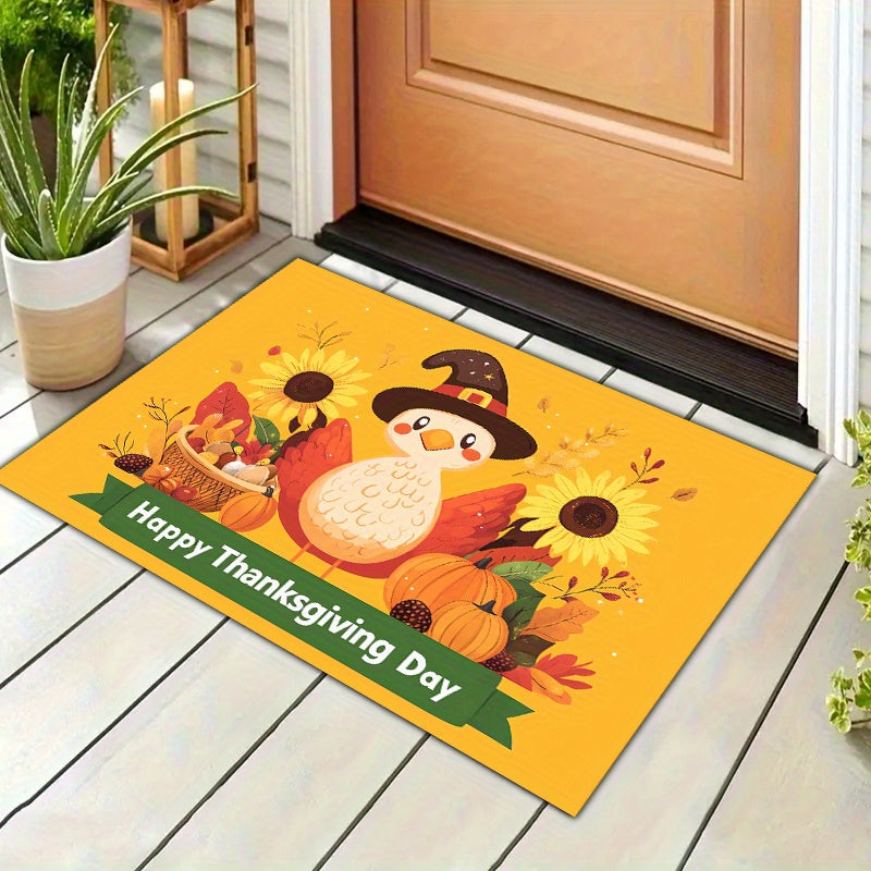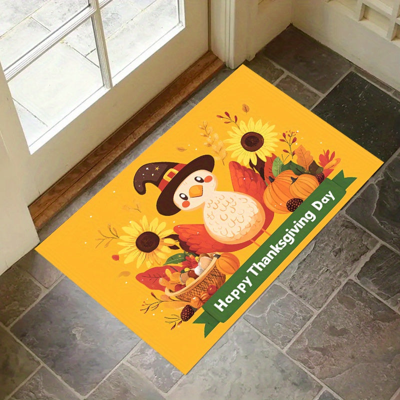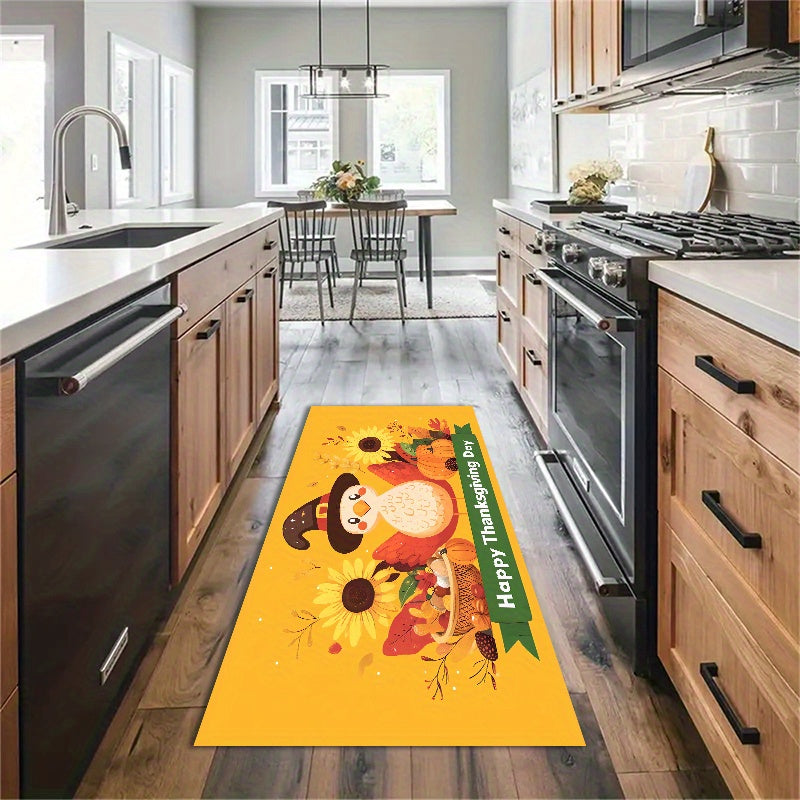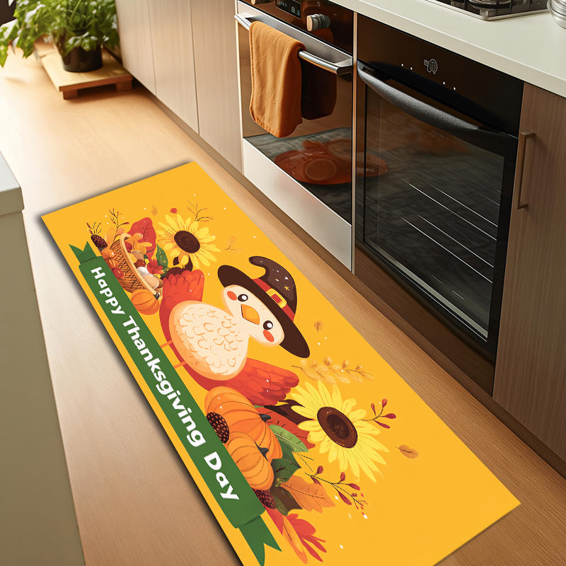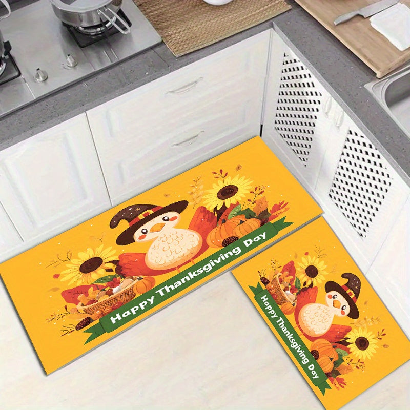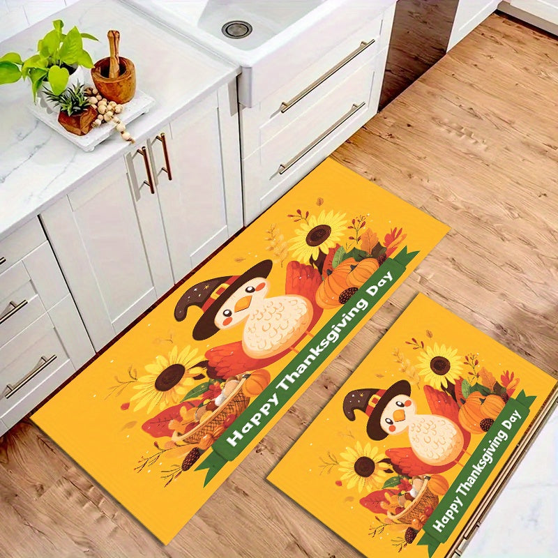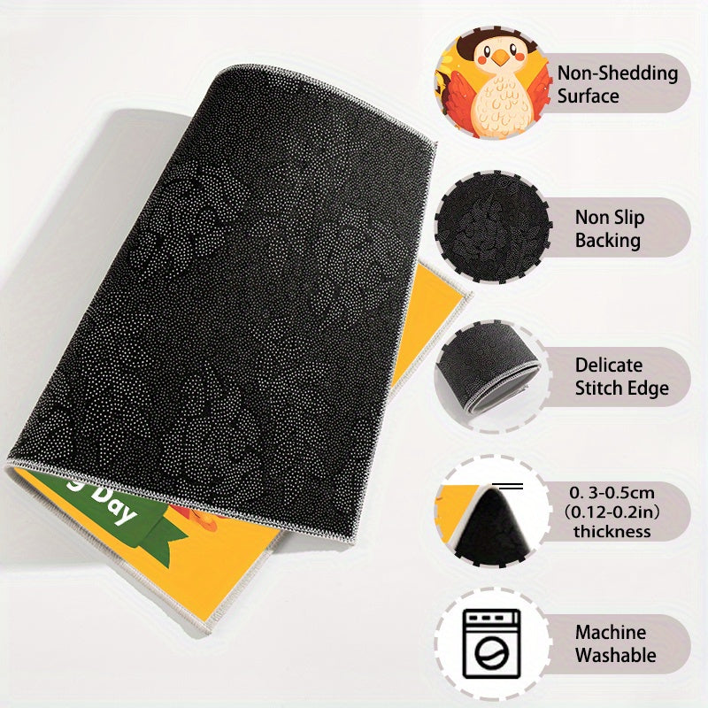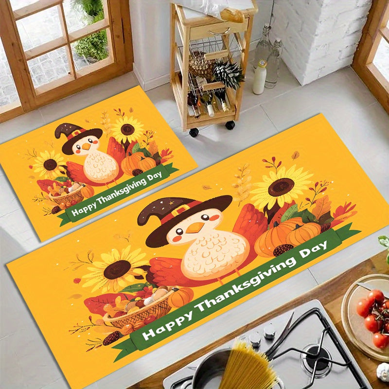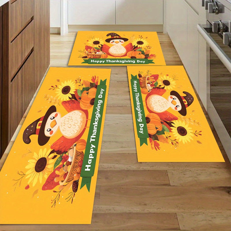 1/3pcs Set Of Thicken Polyester Carpet With Anti-slip Dot Plastic Bottom, Thanksgiving Turkey Sunflower Cartoon Pattern Print Rug, Machine Washable Non-shedding And Stain-resistant Decorative Mat For Living Room Kitchen Entrance, Thanksgiving Decor