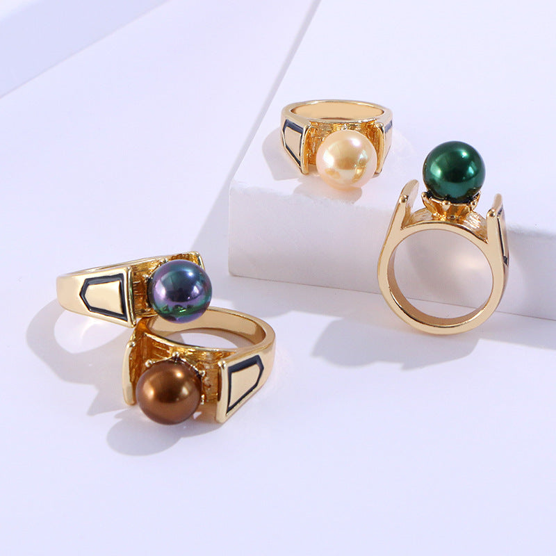 Personalized Hip Hop Ring Color Pearl Cross Ring