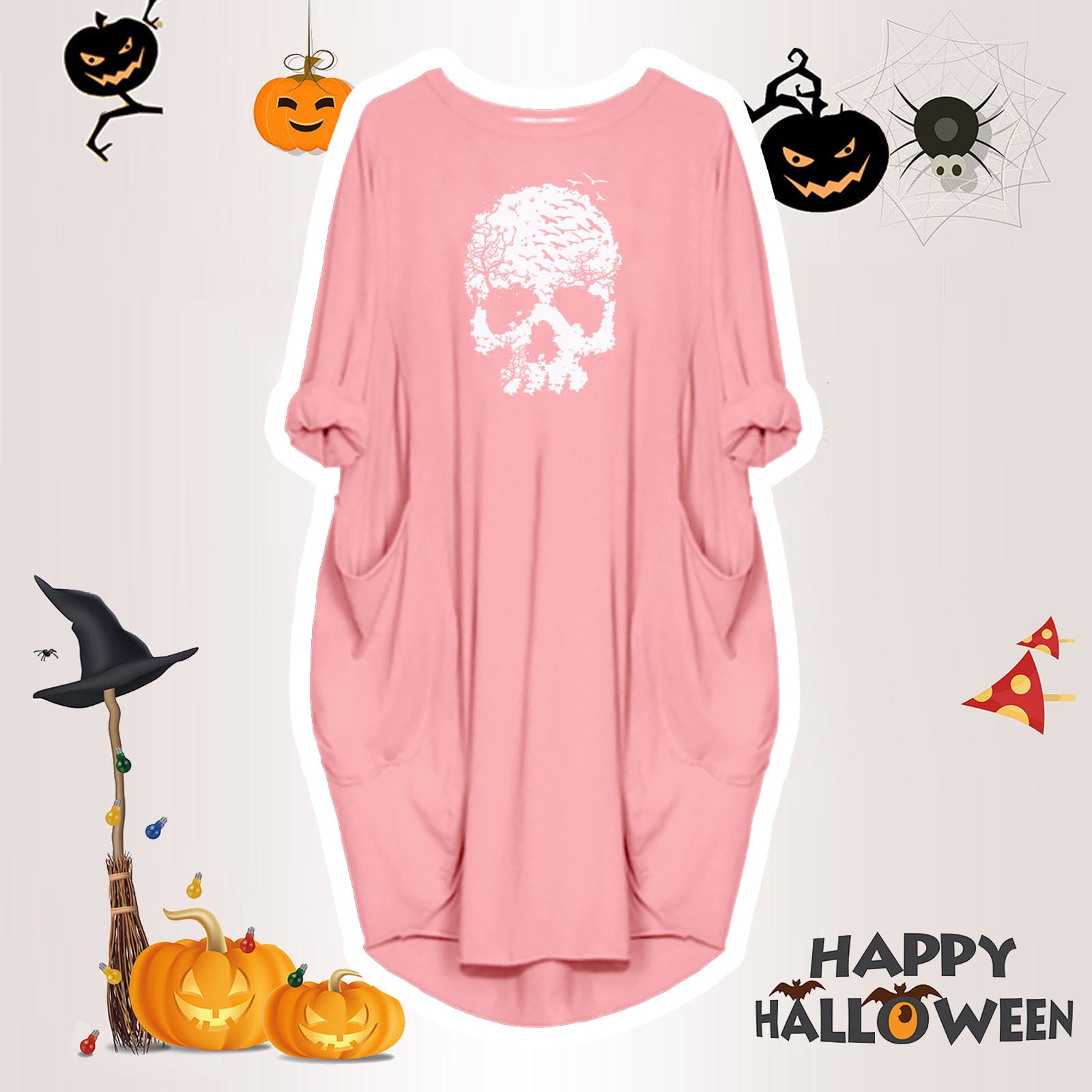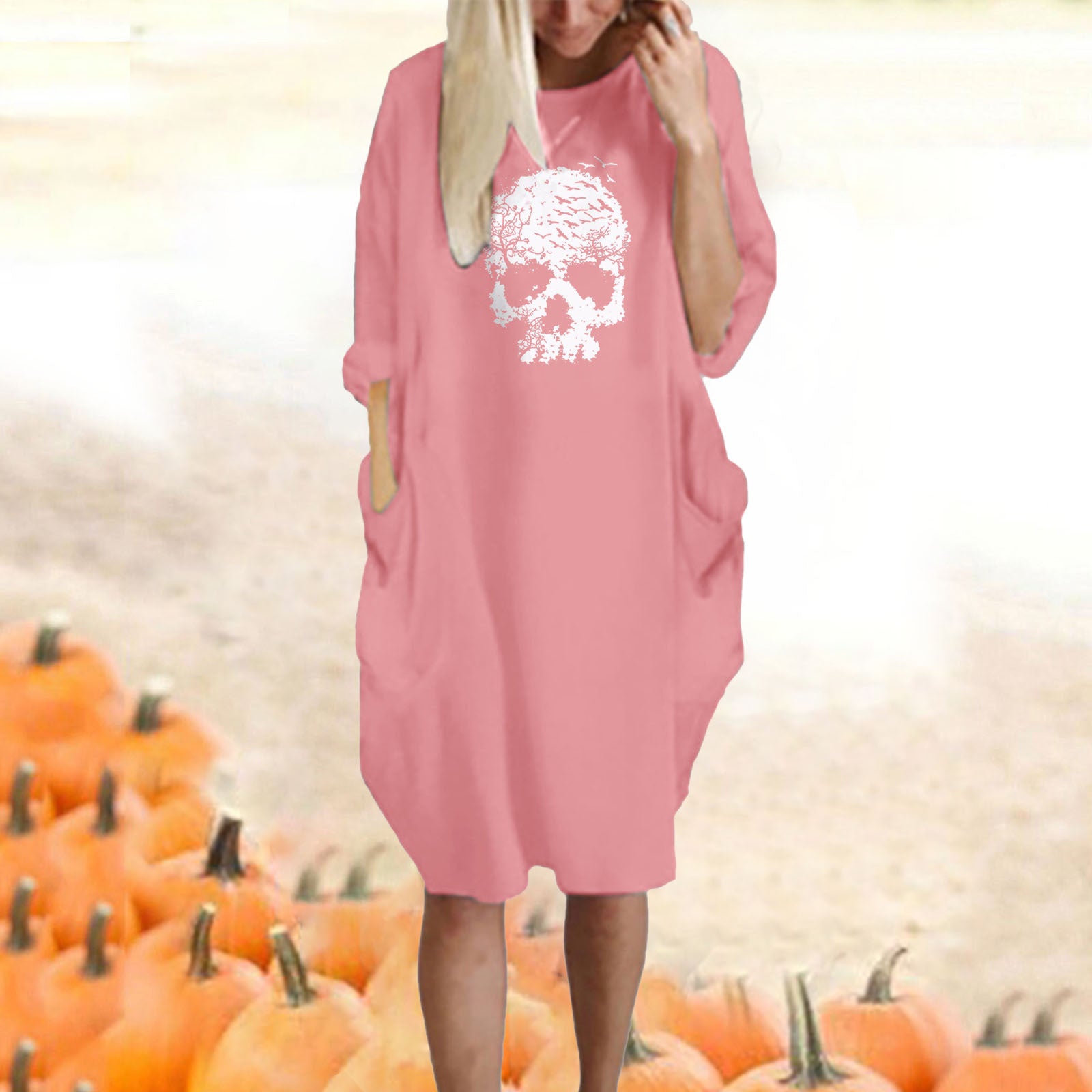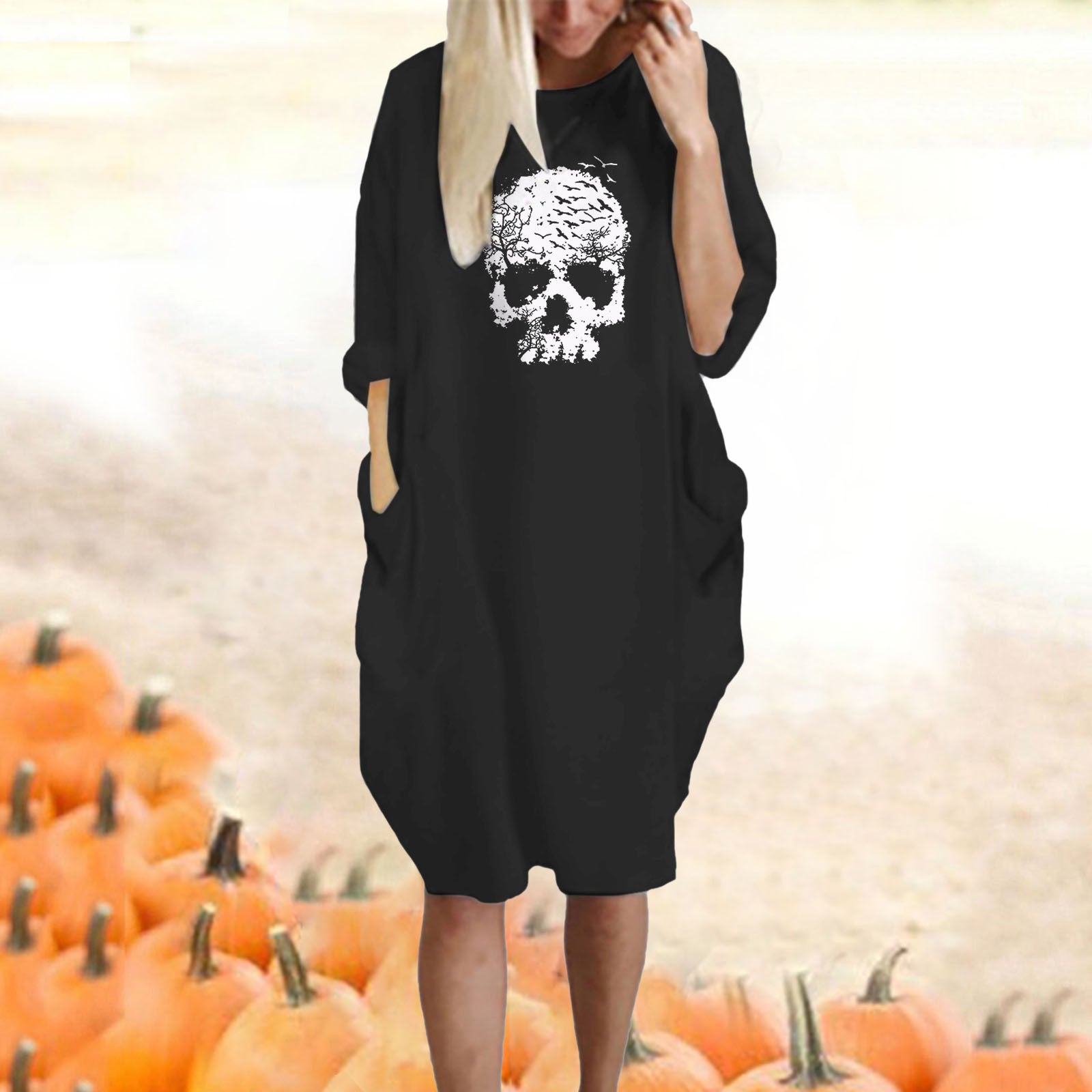Women's Halloween Loose Fun Graphic Print Crew Neck Dress