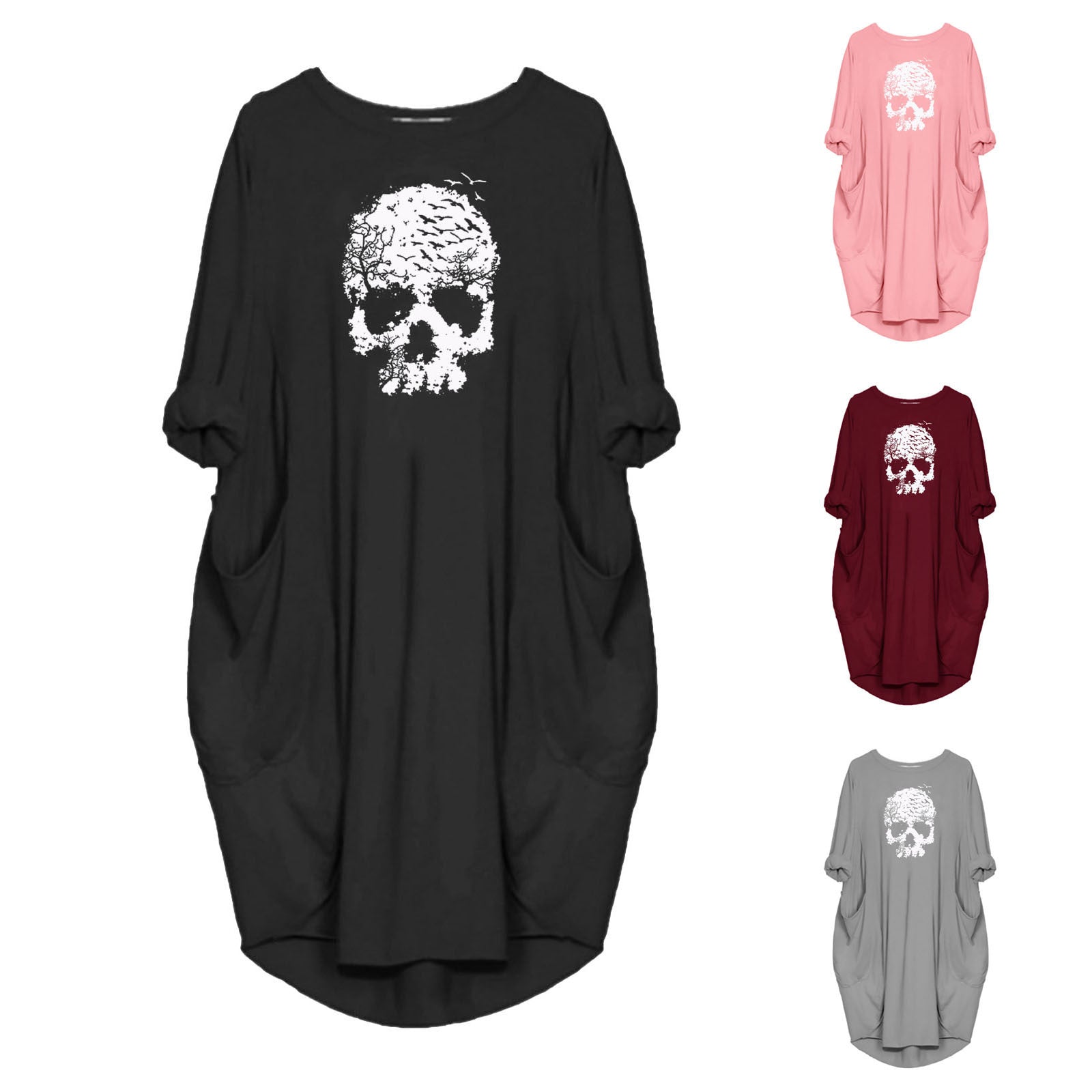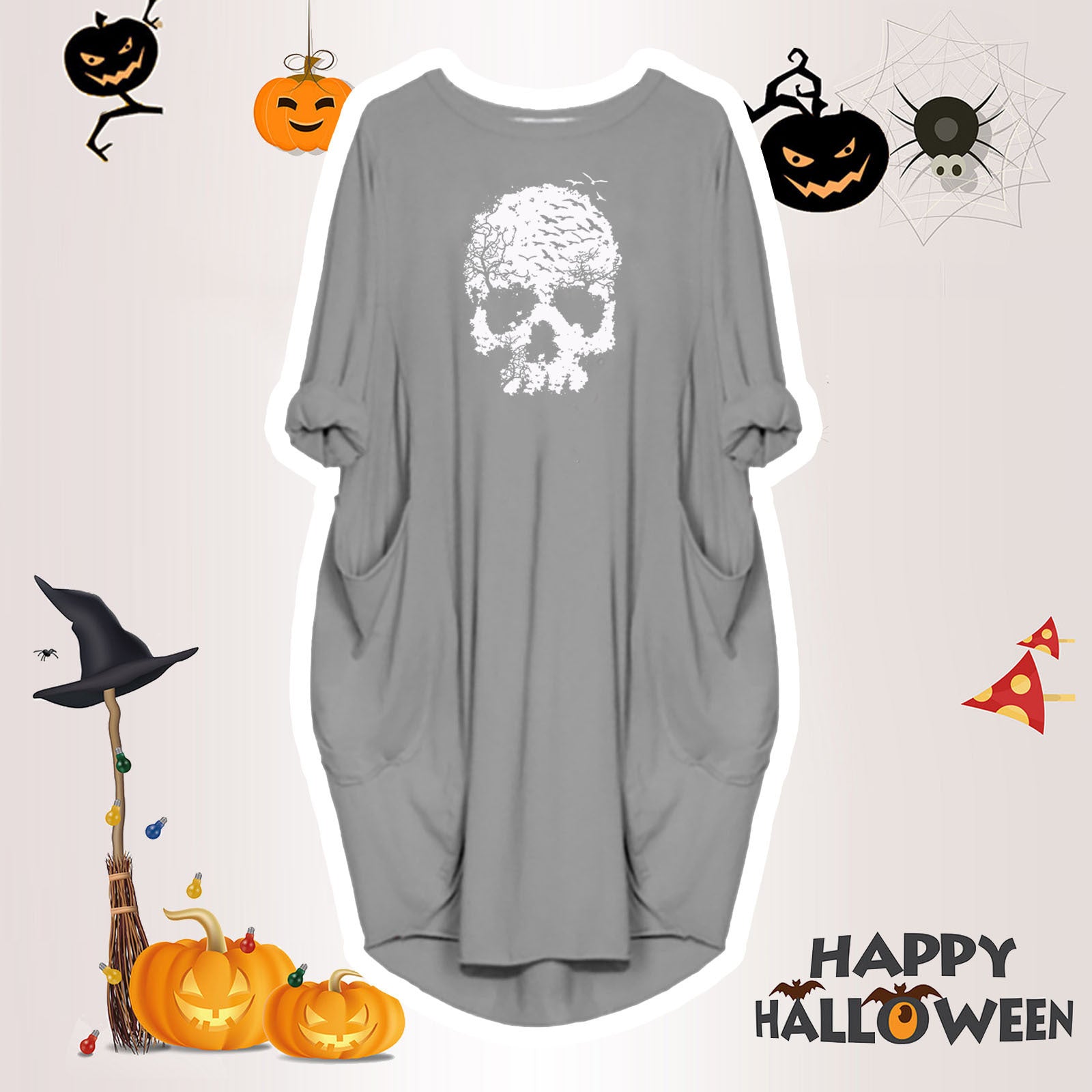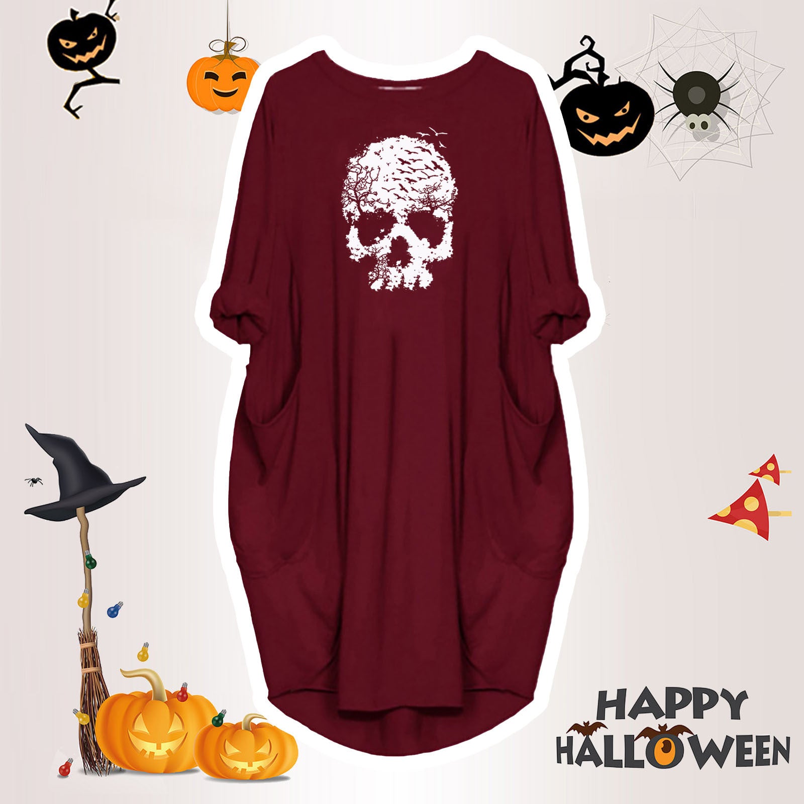 Women's Halloween Loose Fun Graphic Print Crew Neck Dress