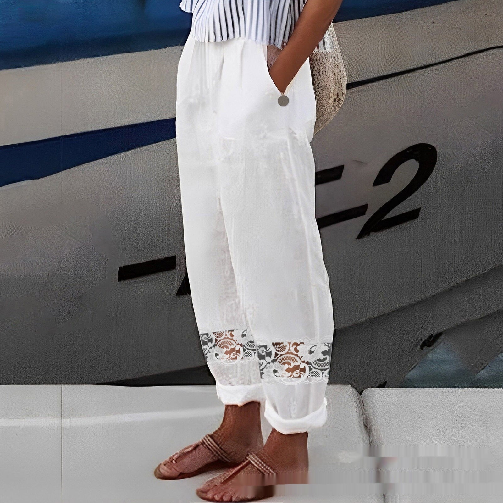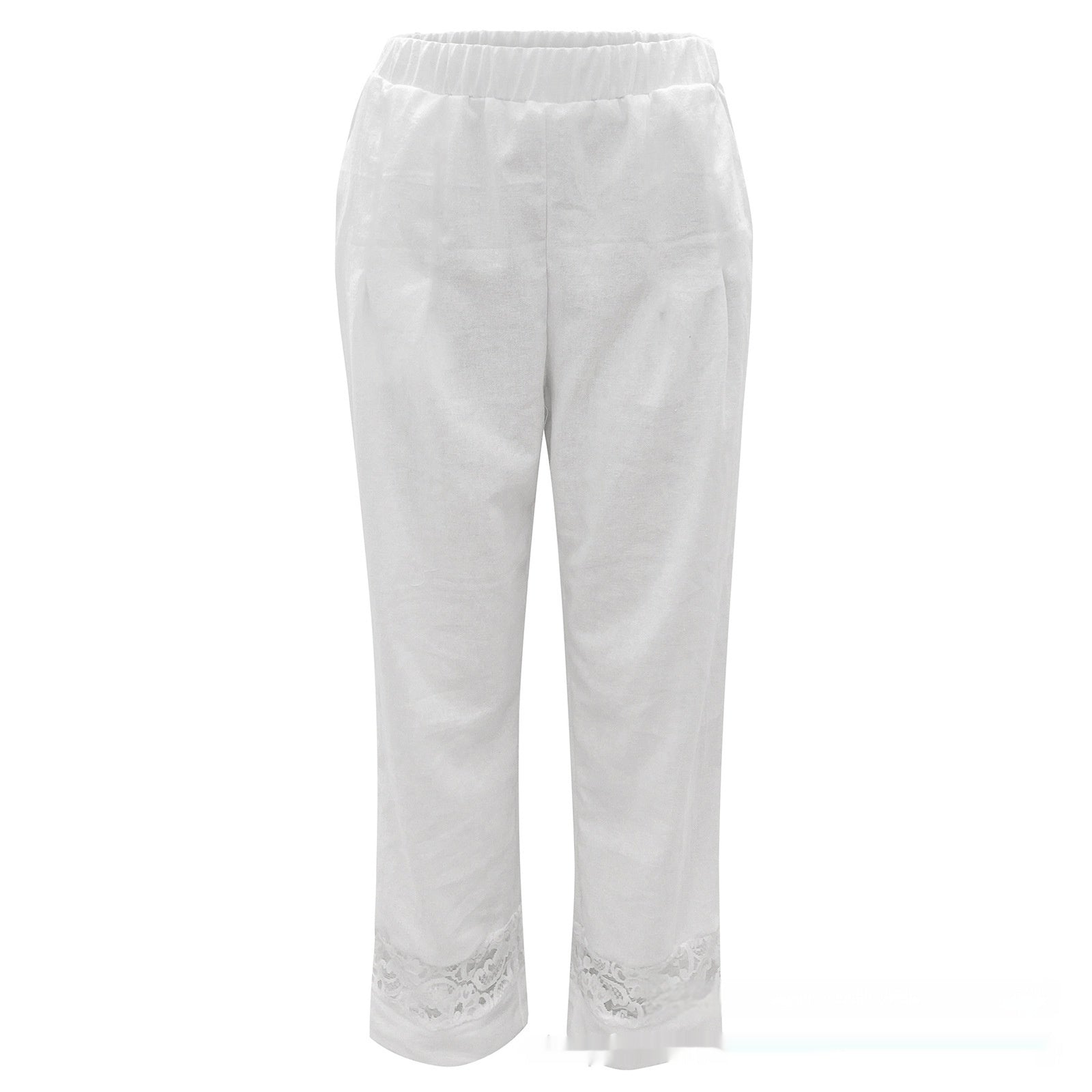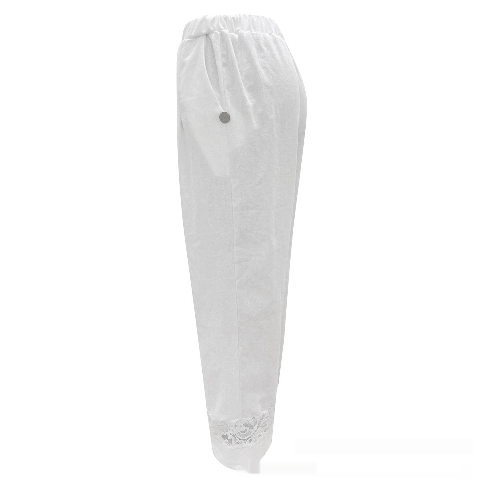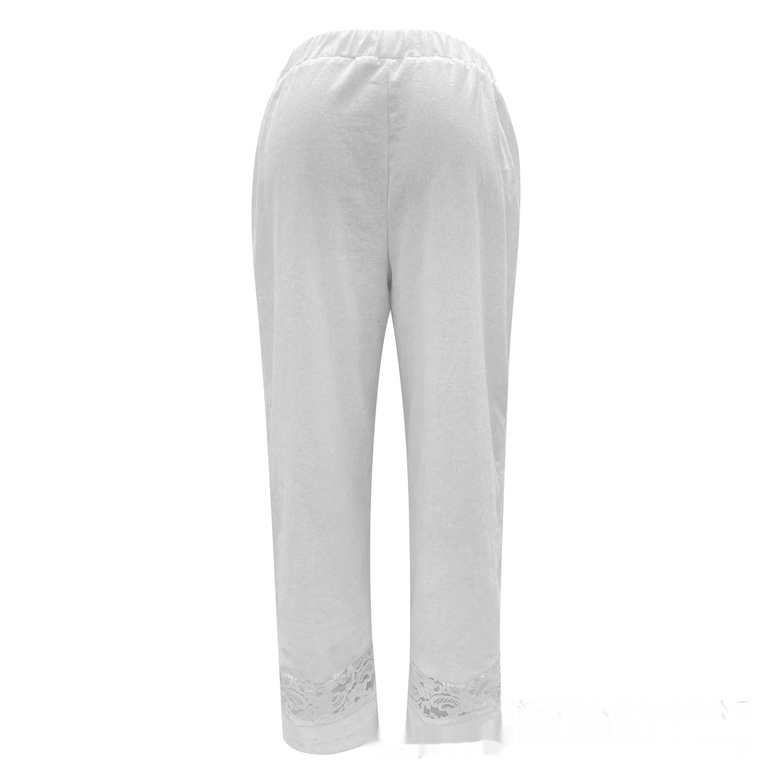 European And American Cotton And Linen Lace Stitching Button Elastic Waist Casual Pants
