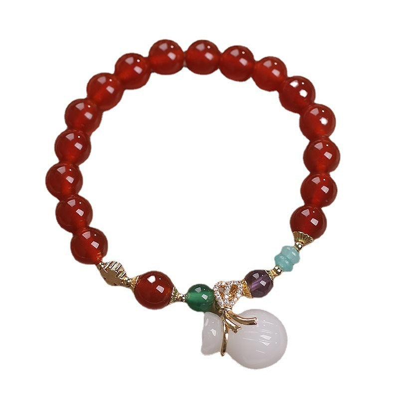 Ethnic Style Money Drawing And Luck Changing Red Agate Beaded Bracelet