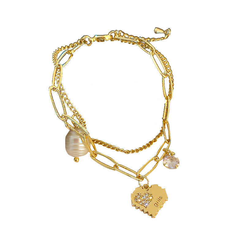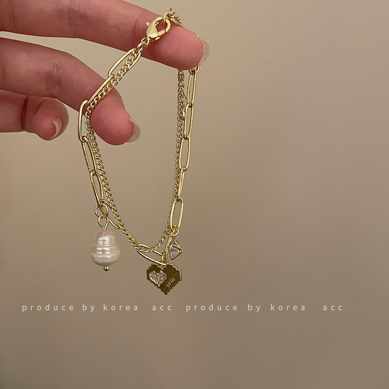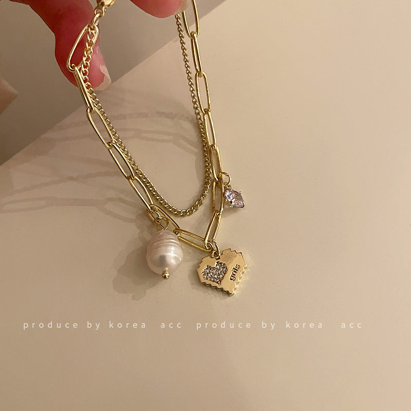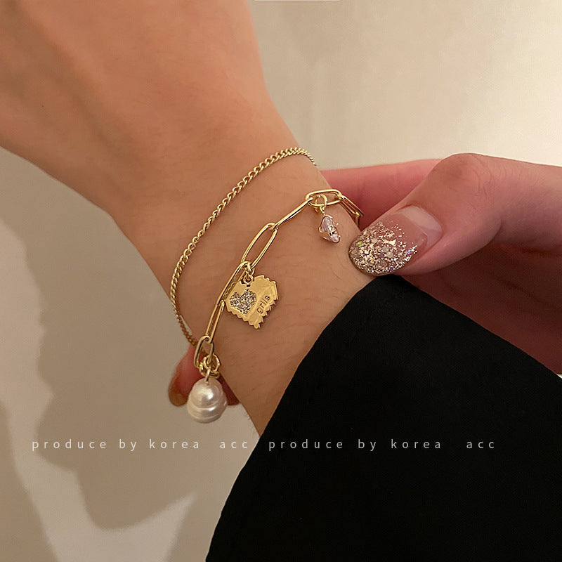Freshwater Pearl Diamond Love Double Layer Bracelet Women