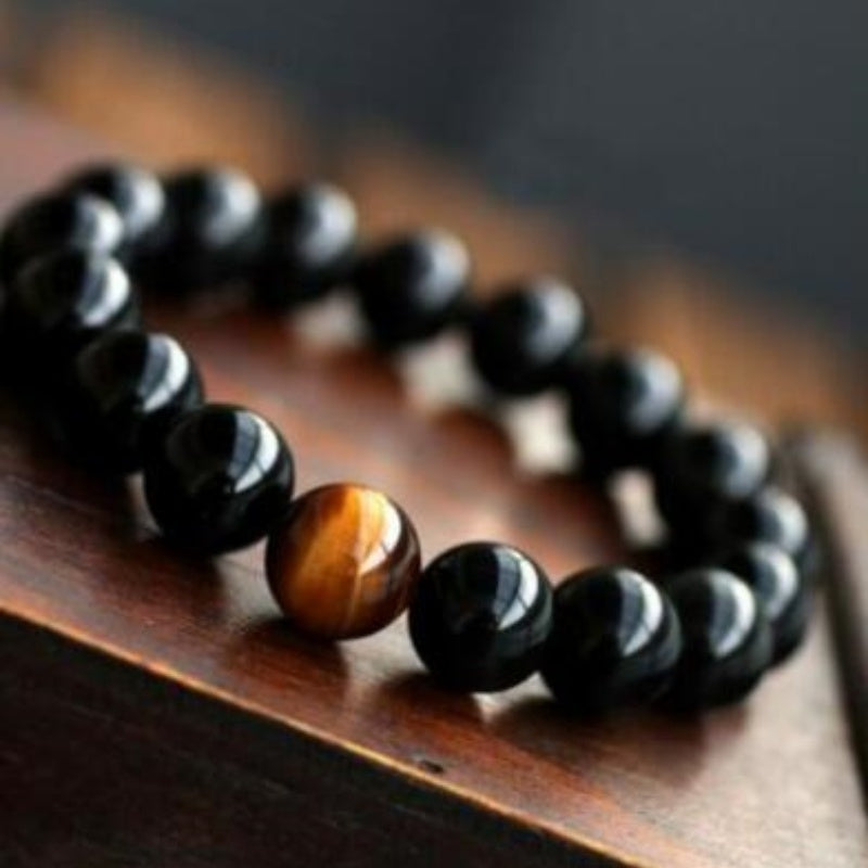 Natural Black Onyx With Stone Tiger Eyes Energy Bracelet