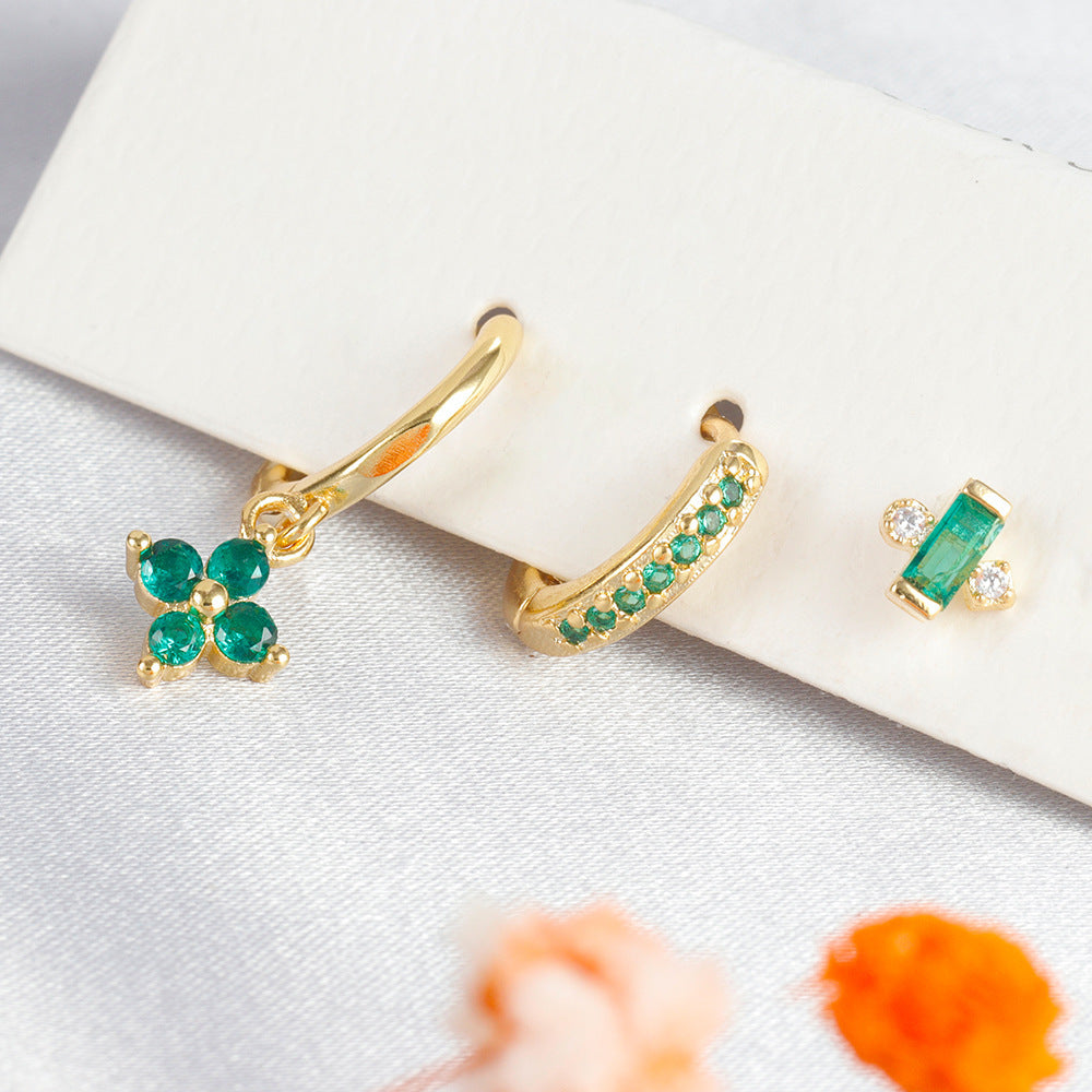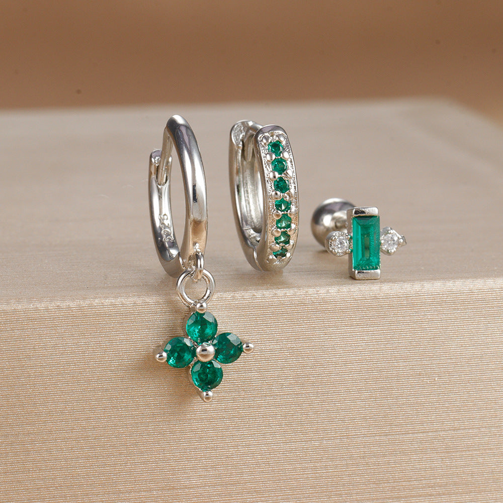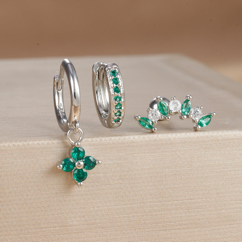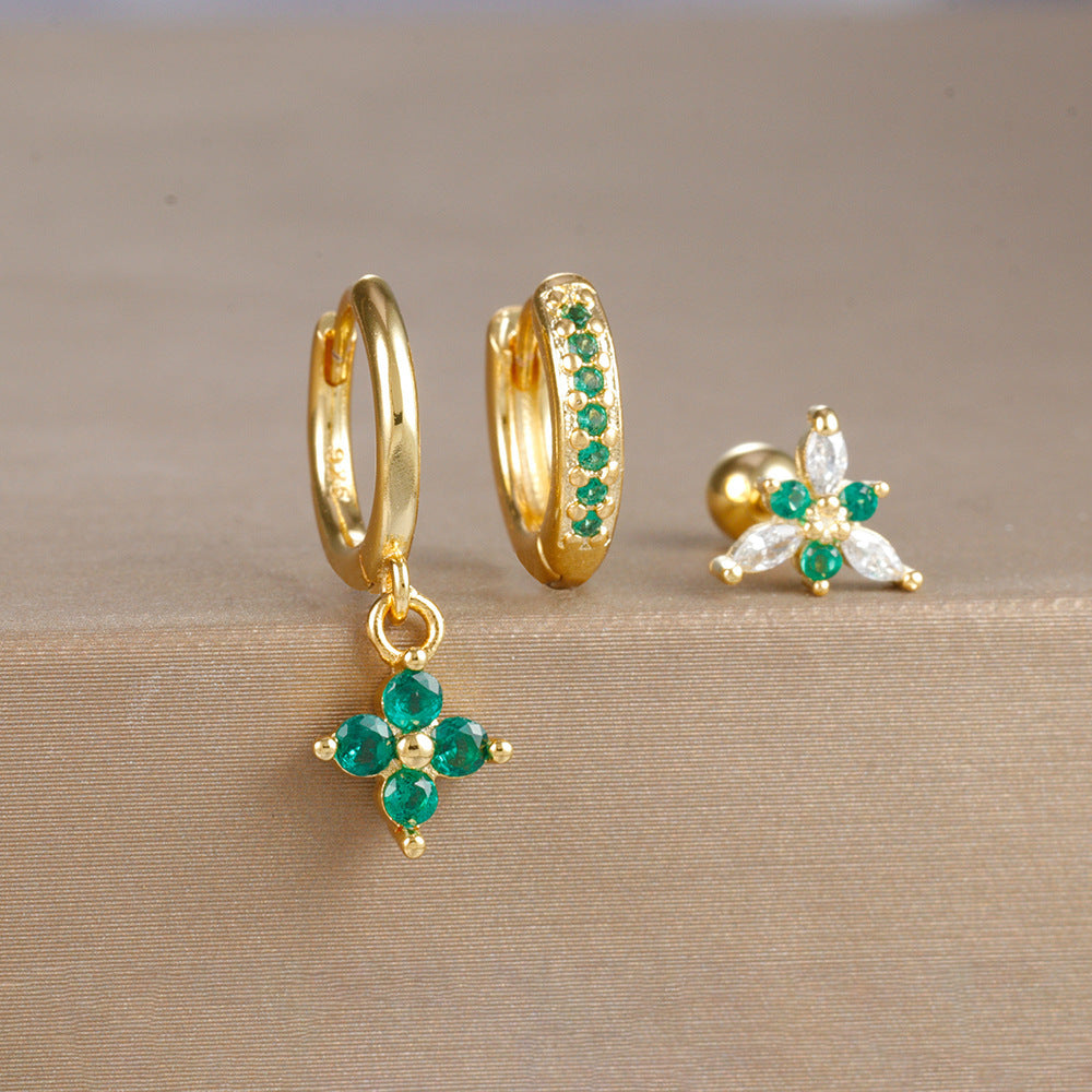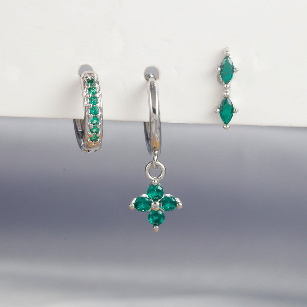 Geometric Ear Studs Suit Green Zircon Flower Light Luxury
