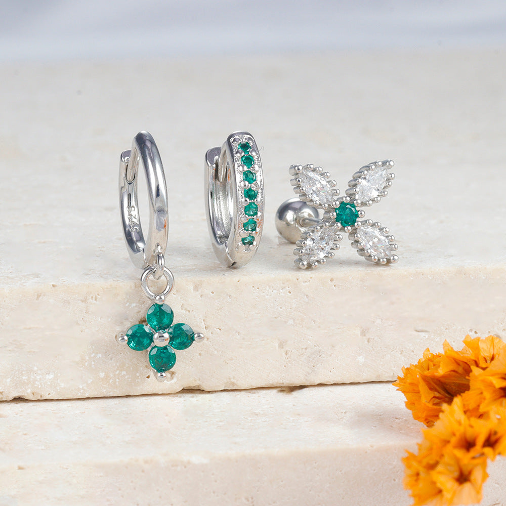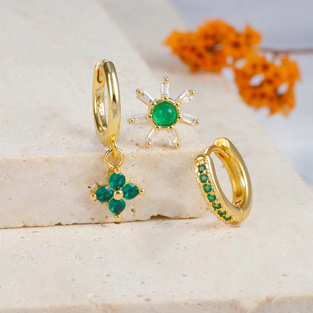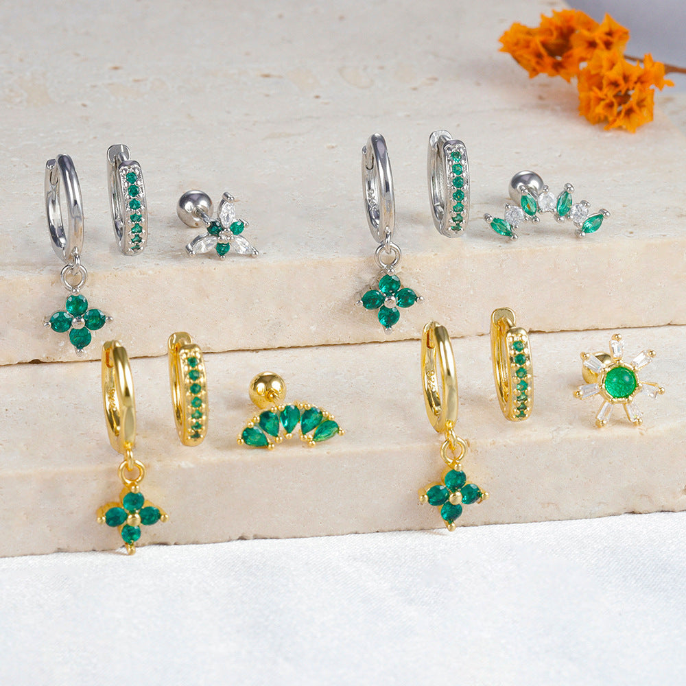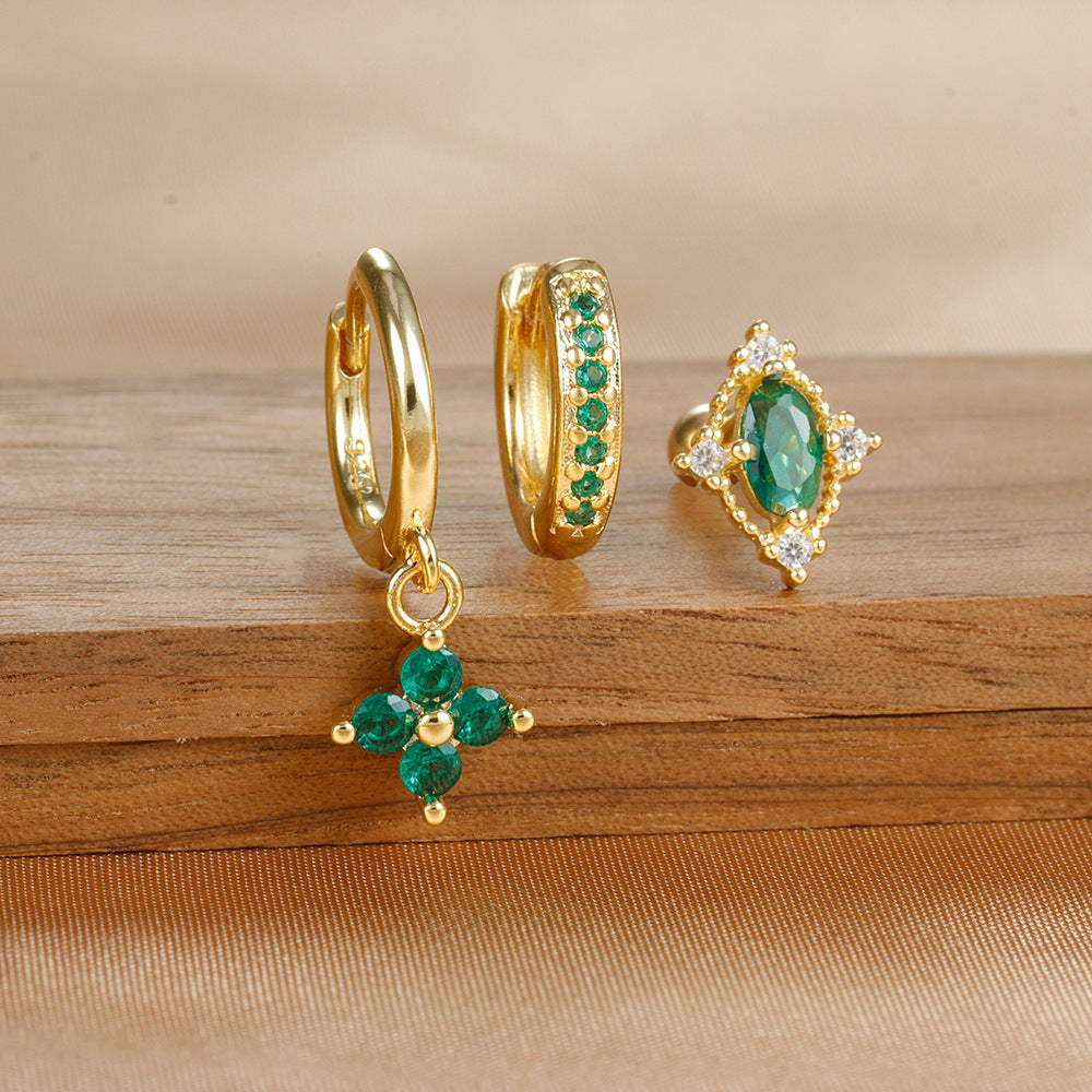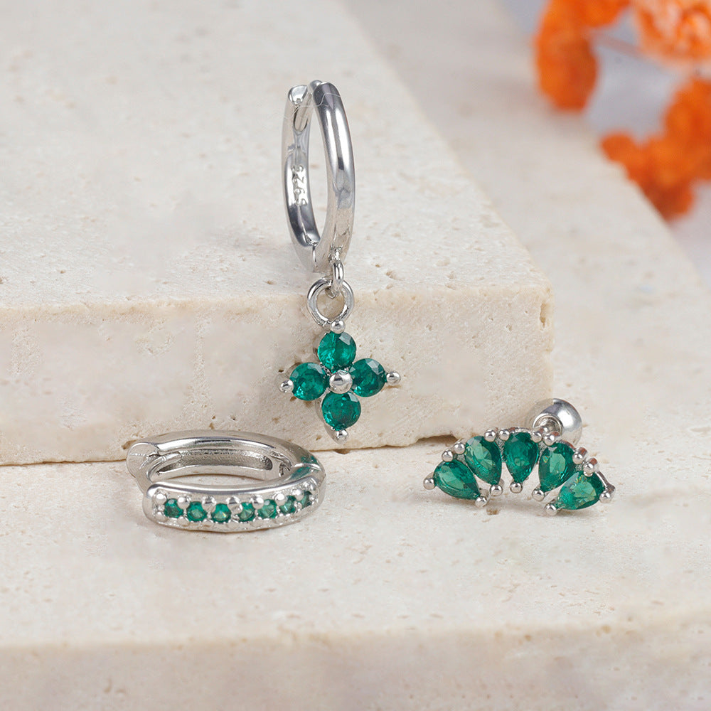 Geometric Ear Studs Suit Green Zircon Flower Light Luxury
