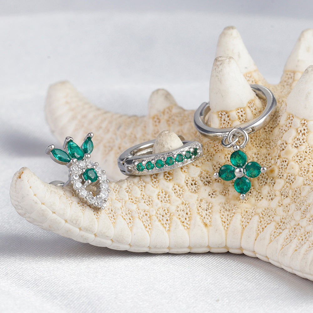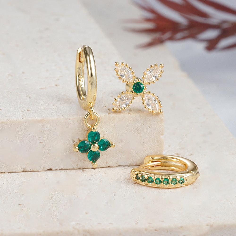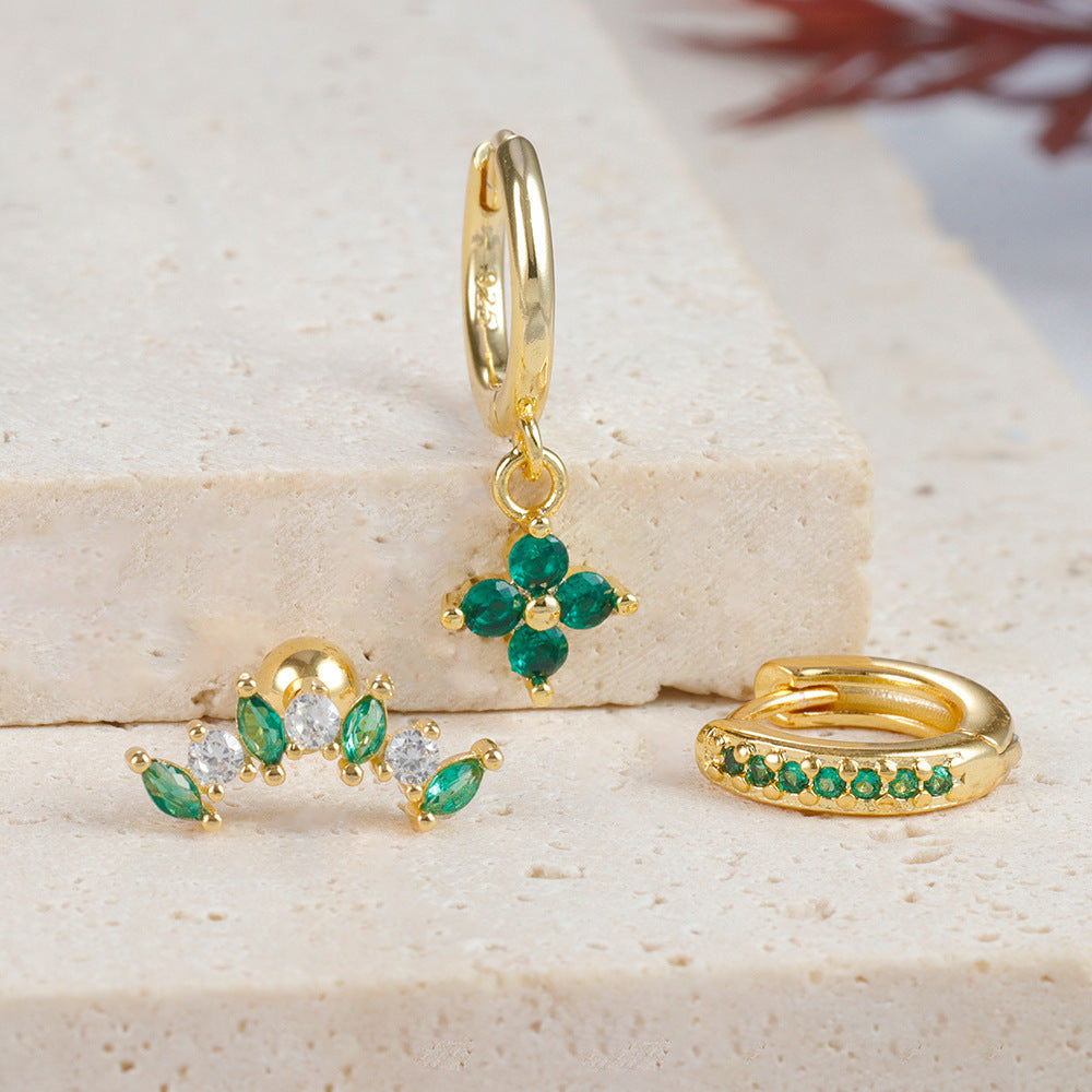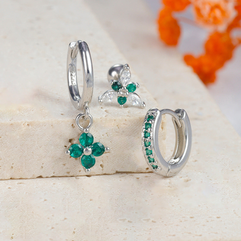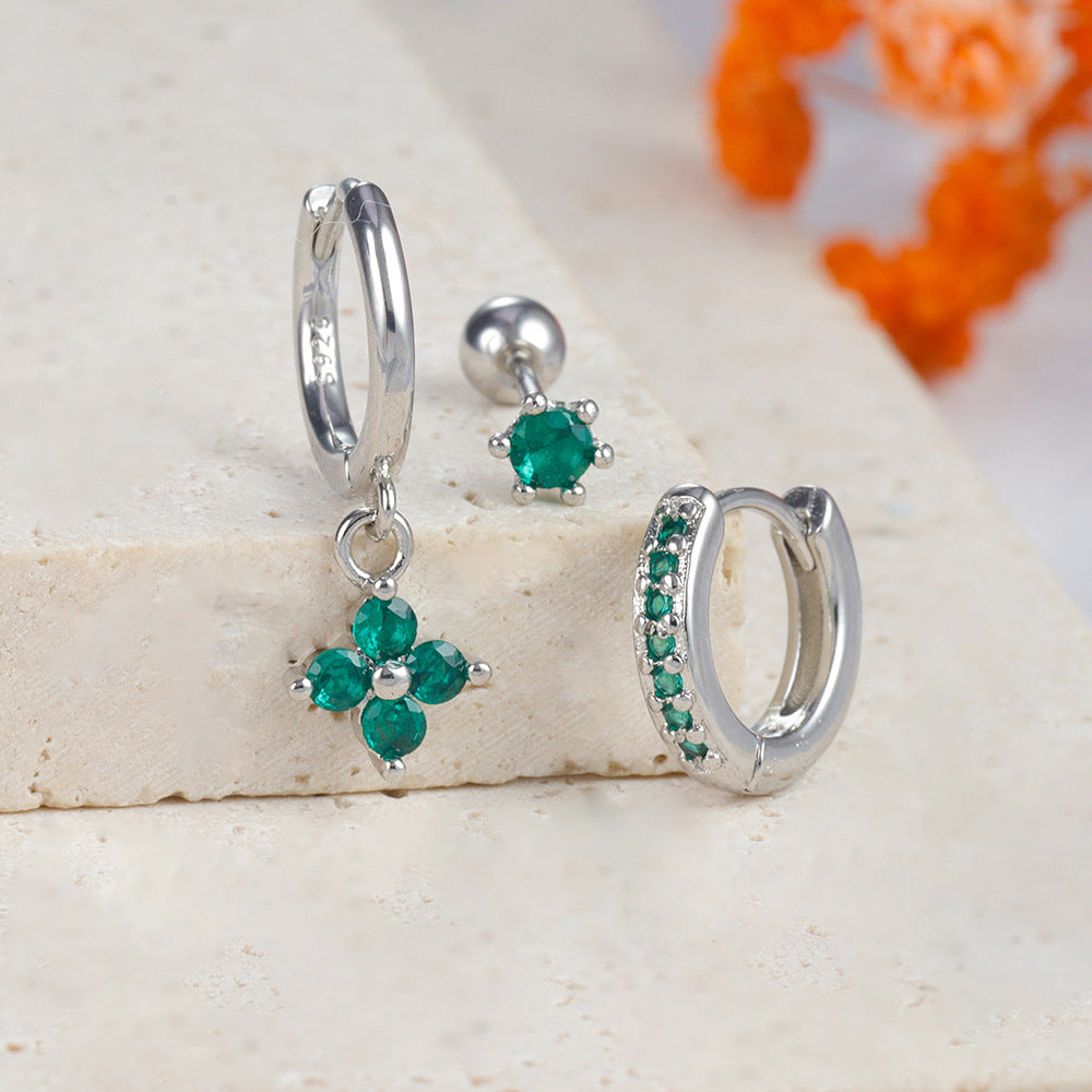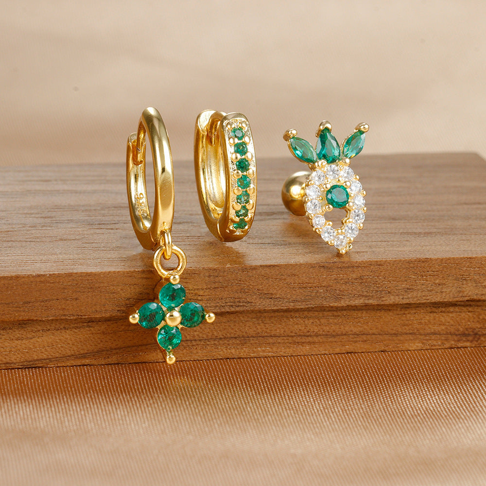 Geometric Ear Studs Suit Green Zircon Flower Light Luxury