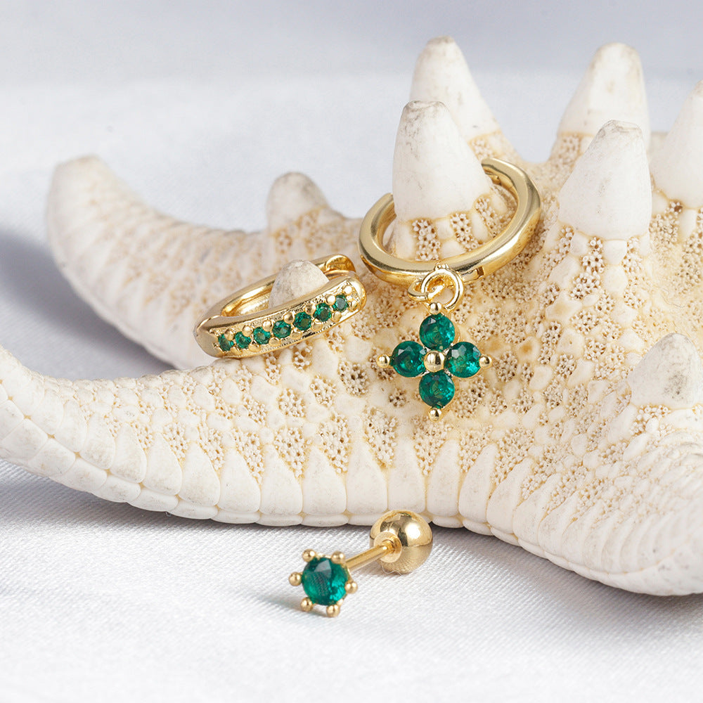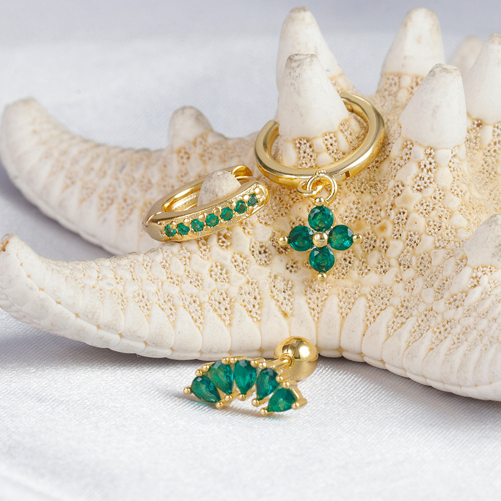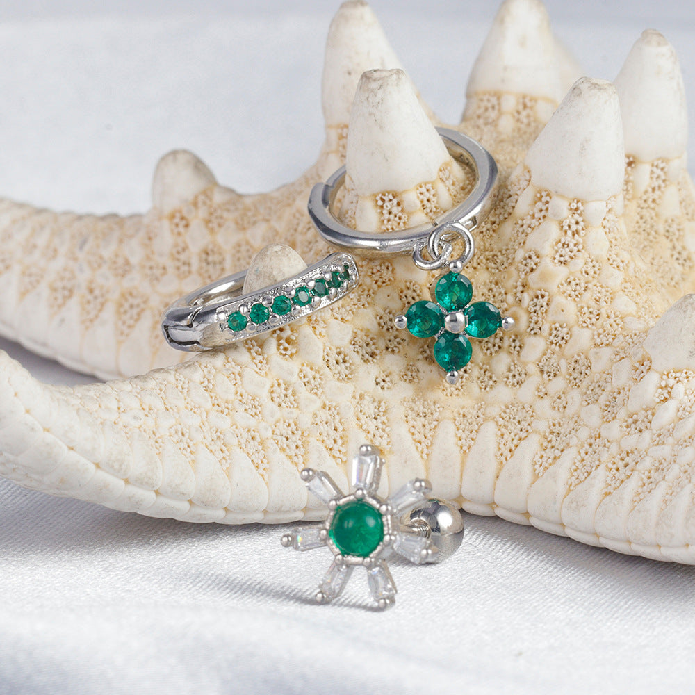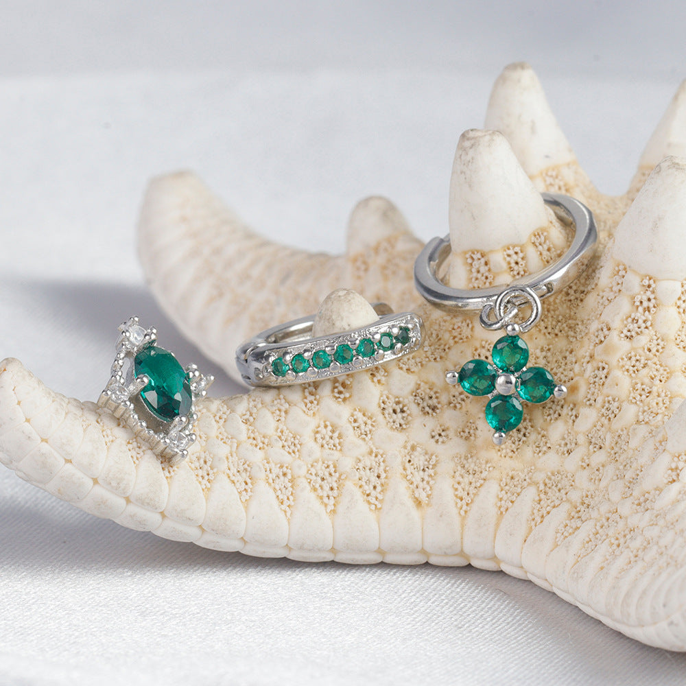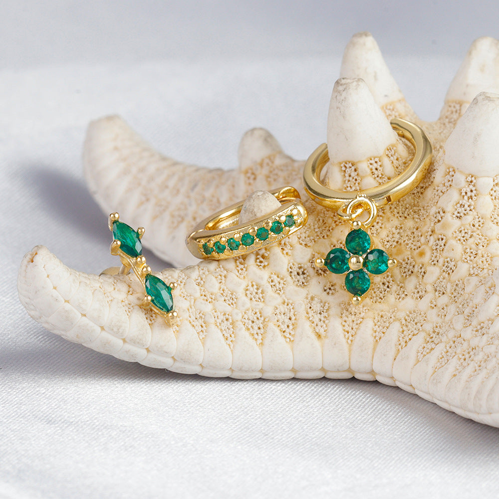 Geometric Ear Studs Suit Green Zircon Flower Light Luxury