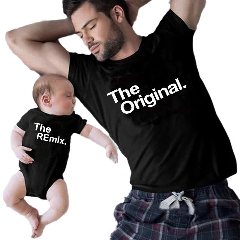 Black Round Neck Printed Parent-child Short Sleeve Cotton