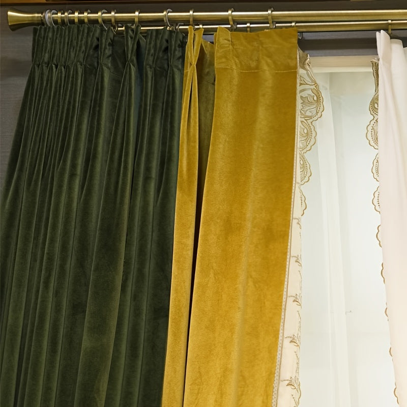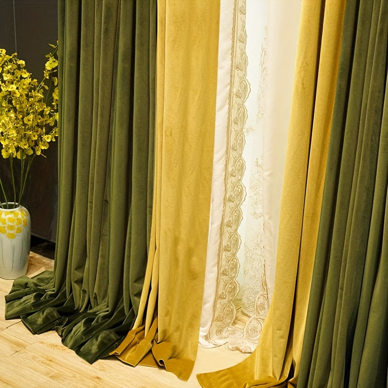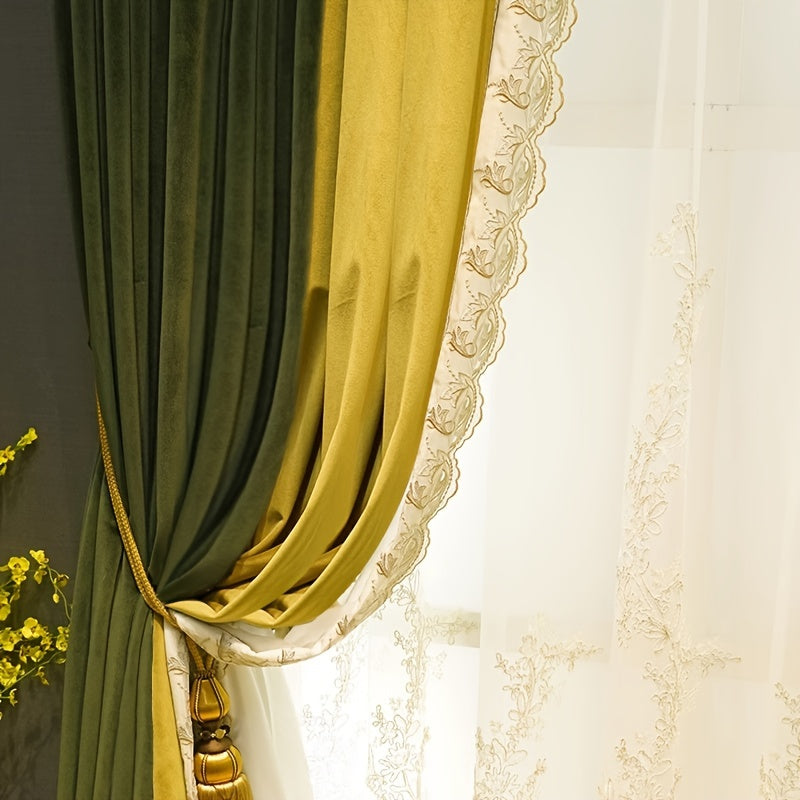 (French Australian Velvet Curtains Olive Green And White [Romantic Lace Design] [Elegant Living Room Or Bedroom] [Bay Window Or Balcony]) (Various Sizes Available) (Luxurious Curtains) (Curtains Korean Hook Processing)