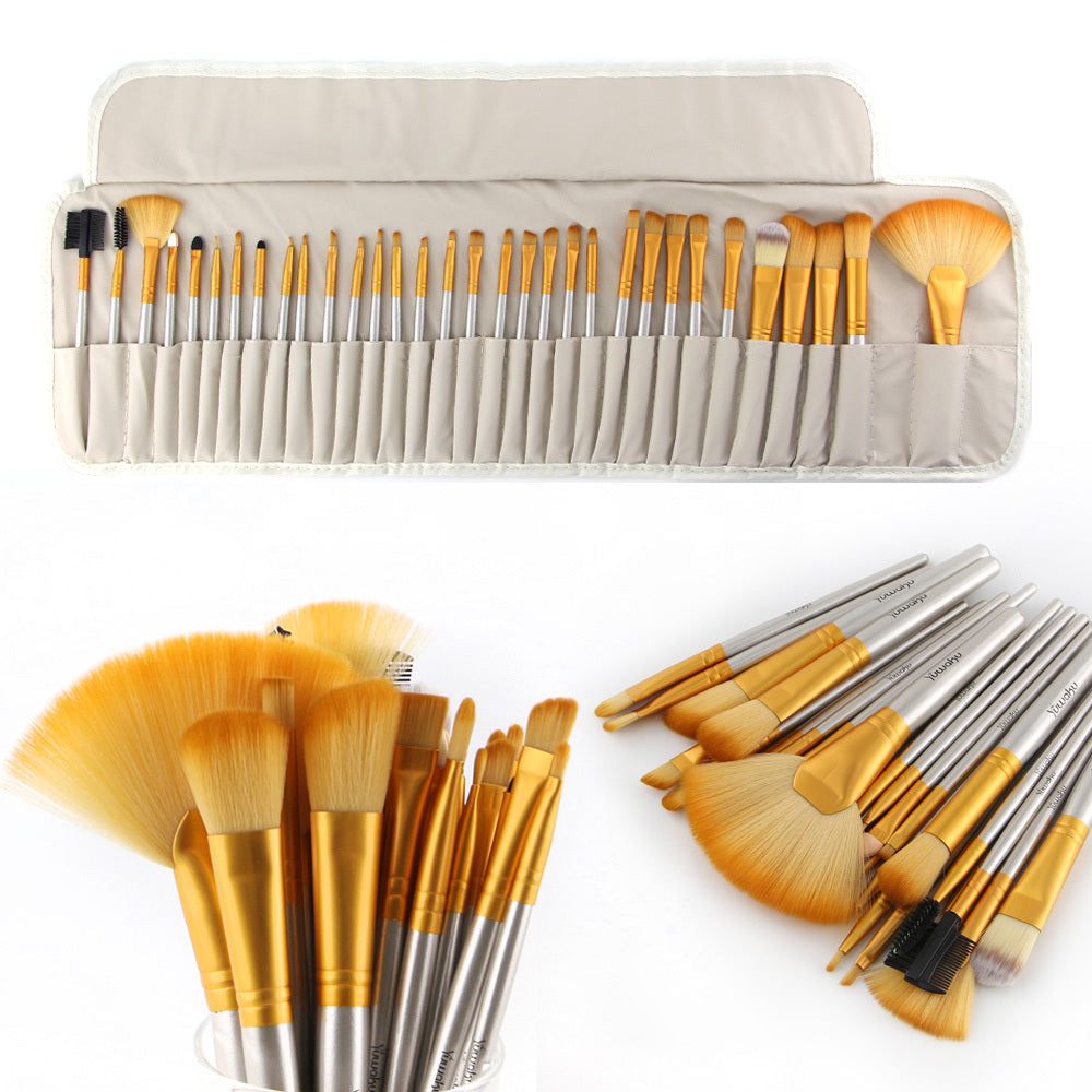 32pcs professional makeup cosmetic brush tool kits, easy carry, easy storage, brush including: Fan brushes, Powder brushes, Foundation Brush, Concealer Brush, Eyeshadow Brush, Eyebrow Brush, Blush Brush, Lip Brush, Mascara Brush etc. In one Tool kits
