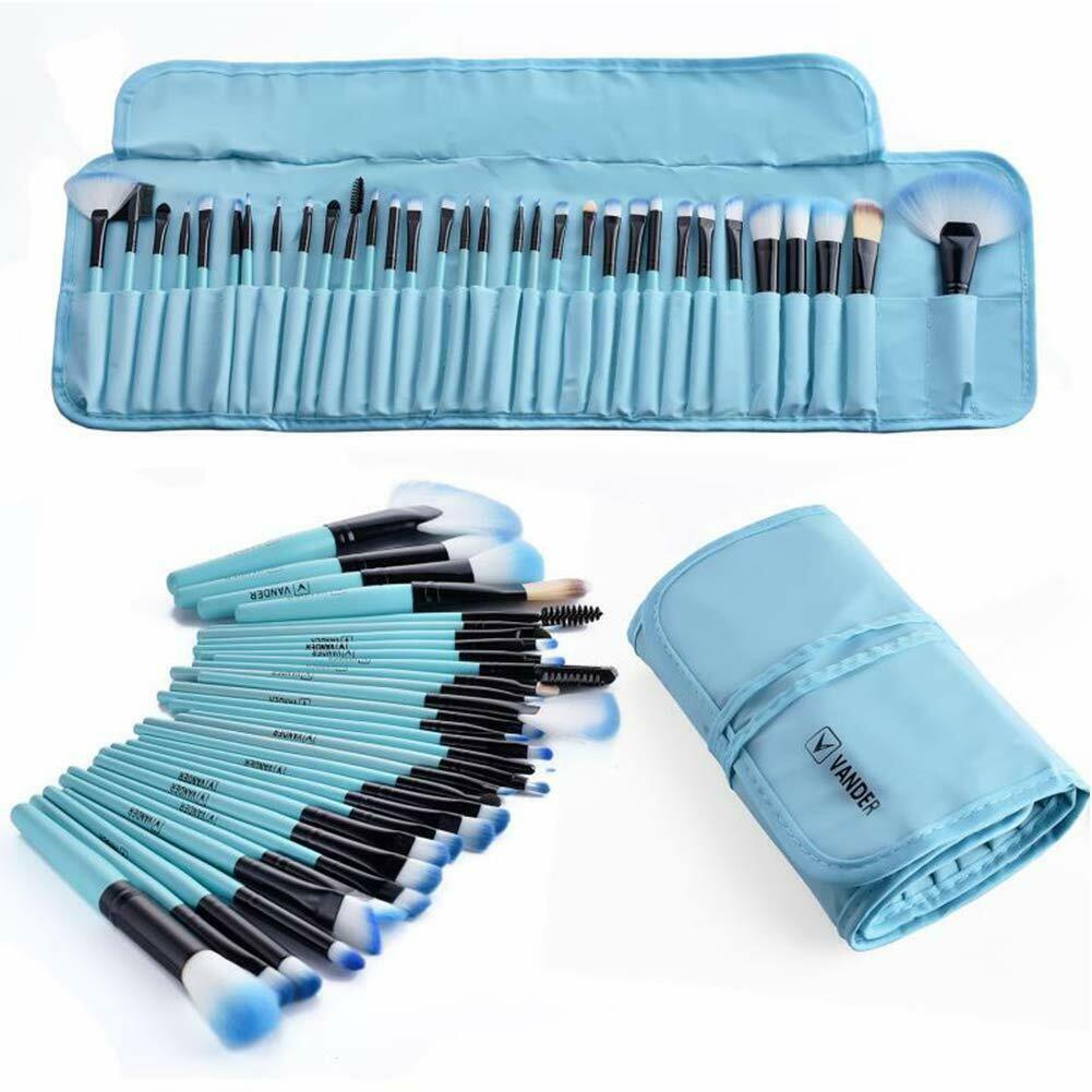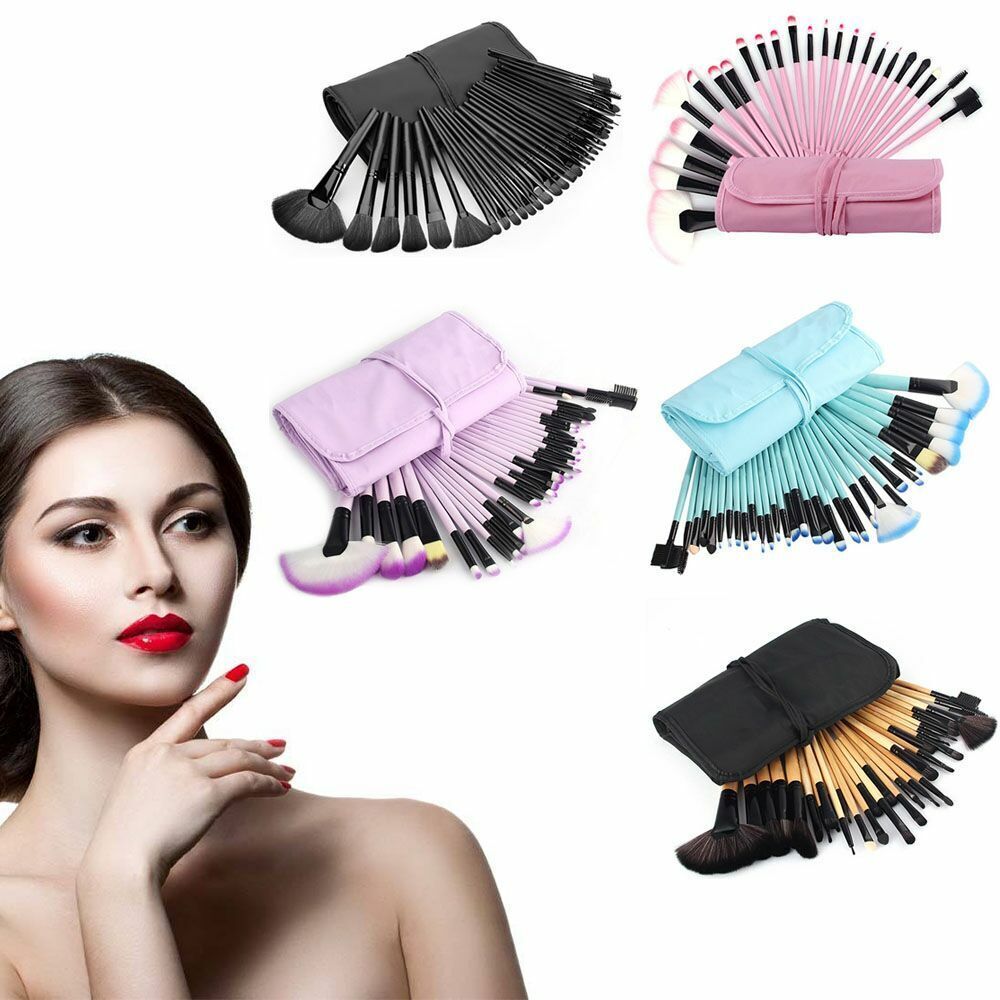 32Pcs Makeup Brushes Pouch Set Blending Powder Puff Professional Cosmetics Tools