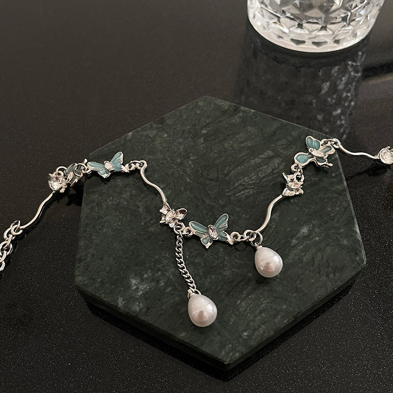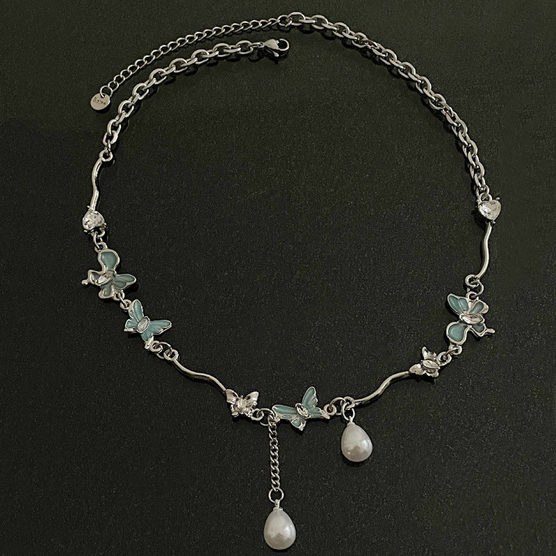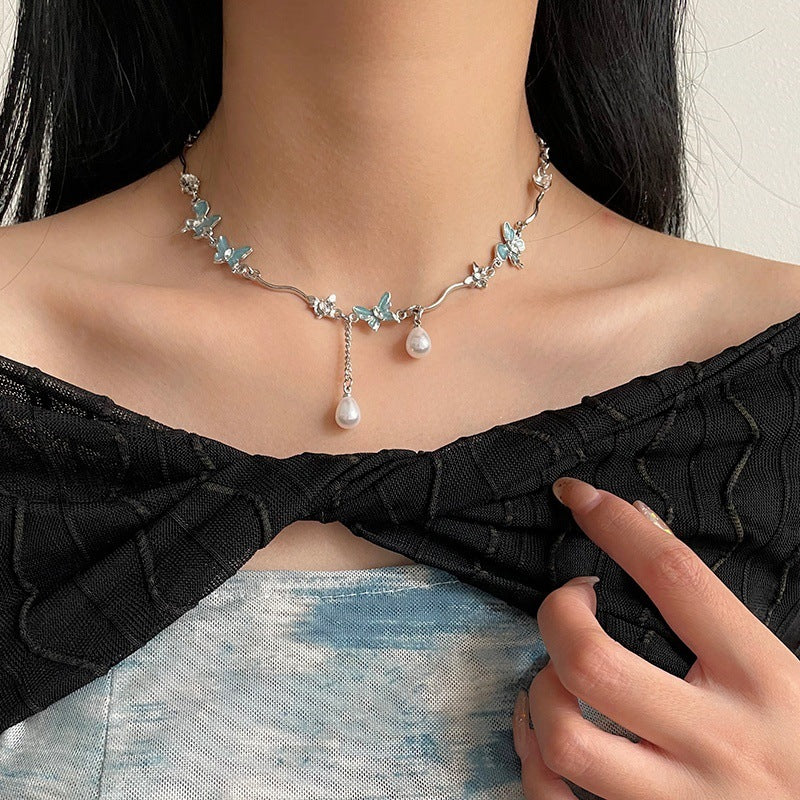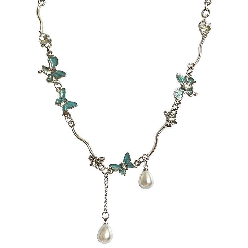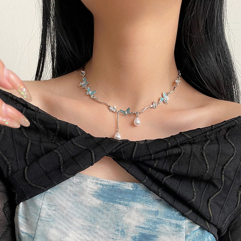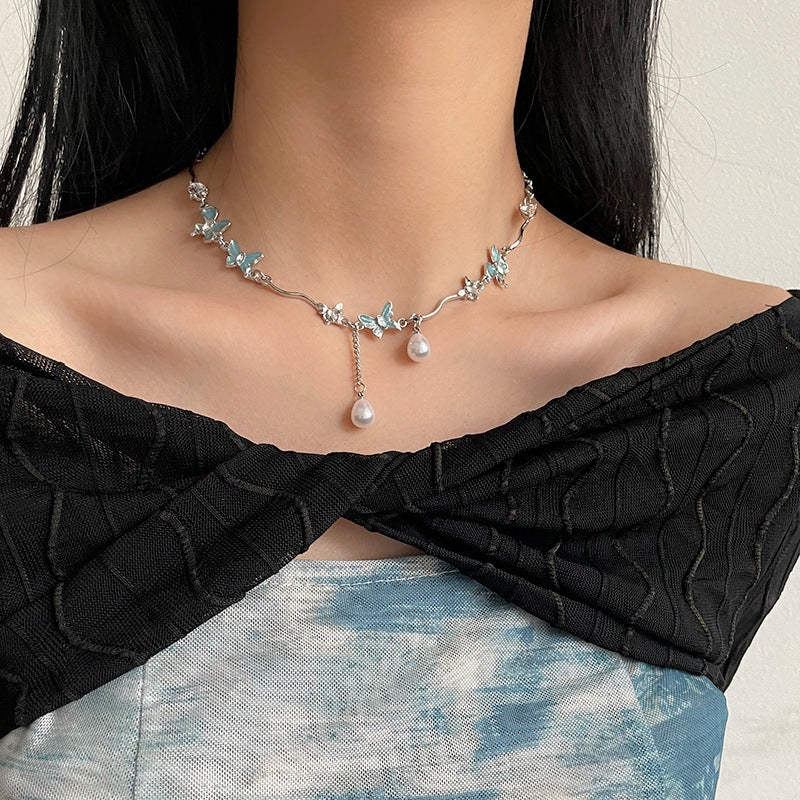 Color: Lake Blue butterfly Pearl irregular necklace