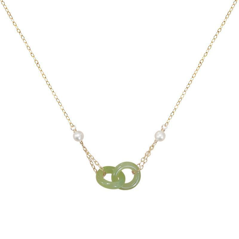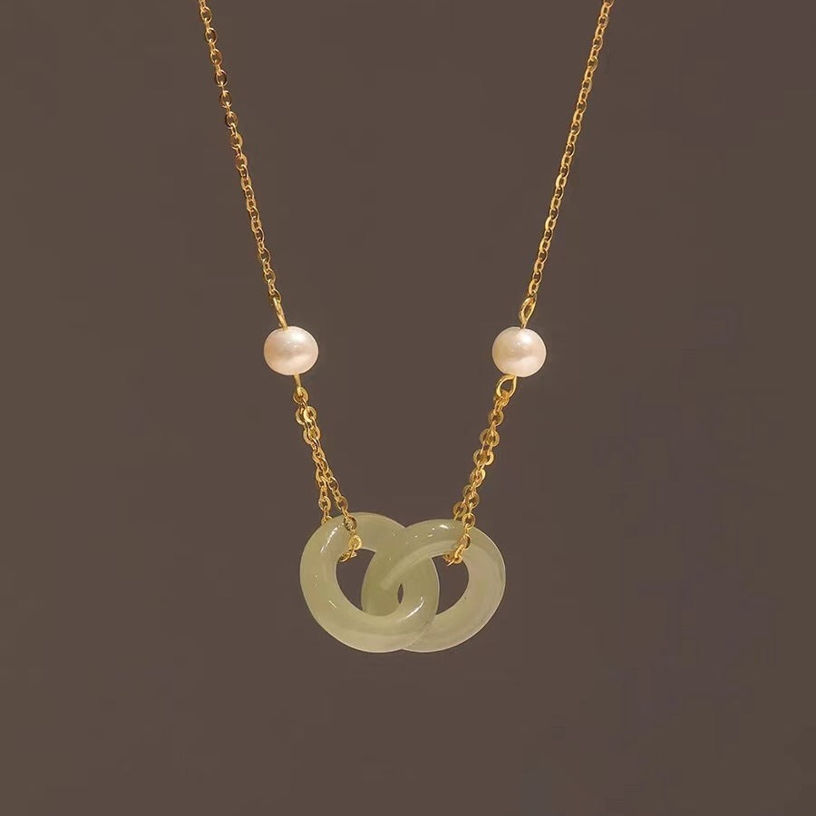 Clavicle Chain Double Ring Safety Buckle Pendant Pearl Necklace
