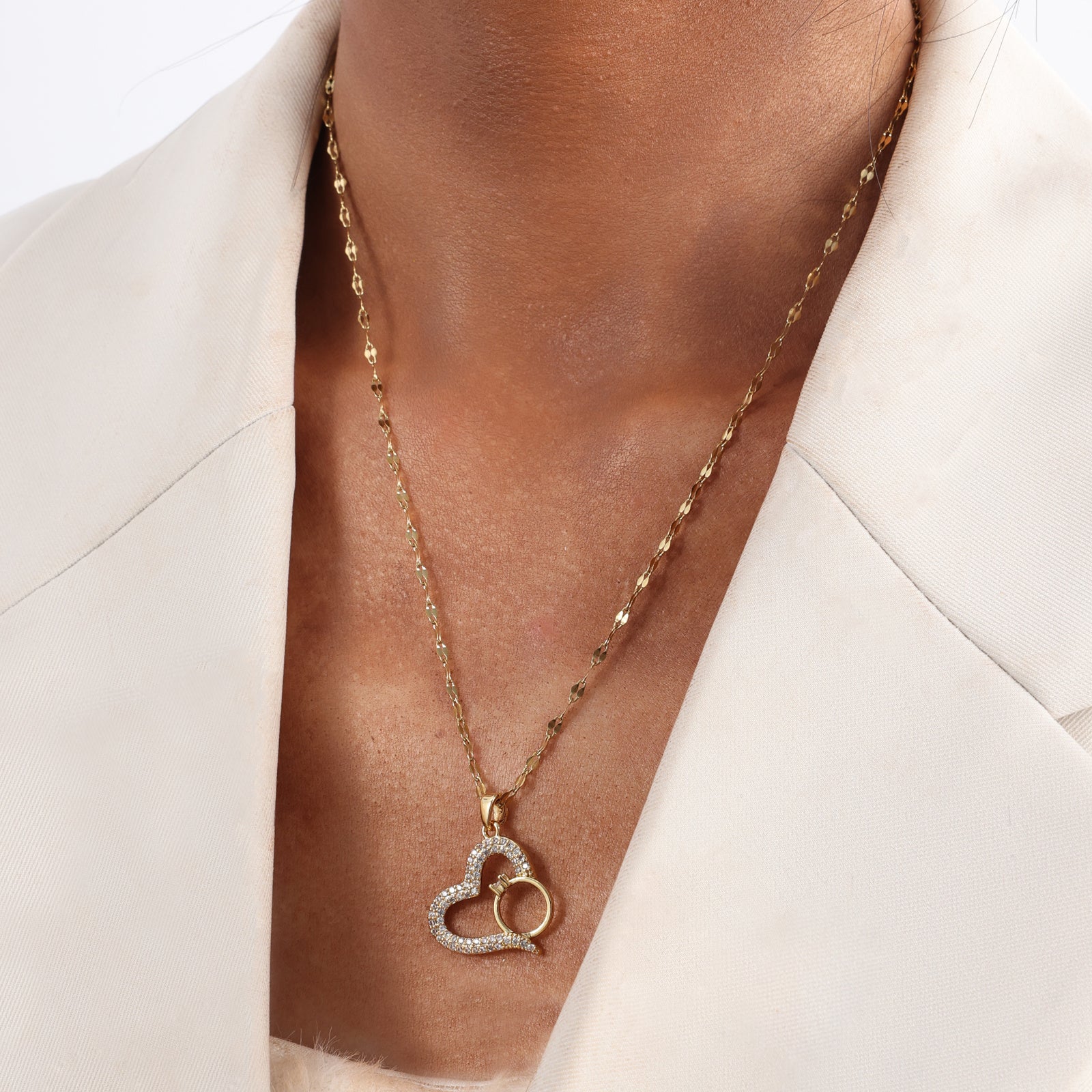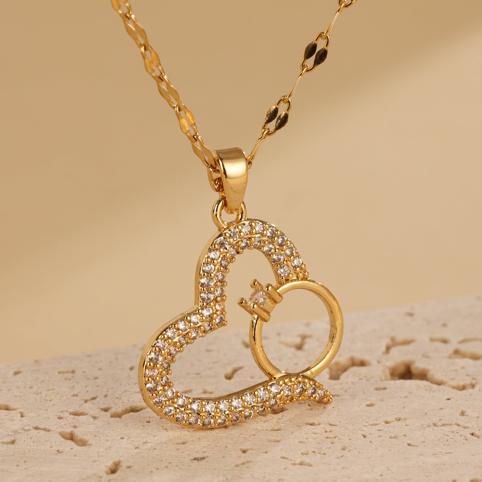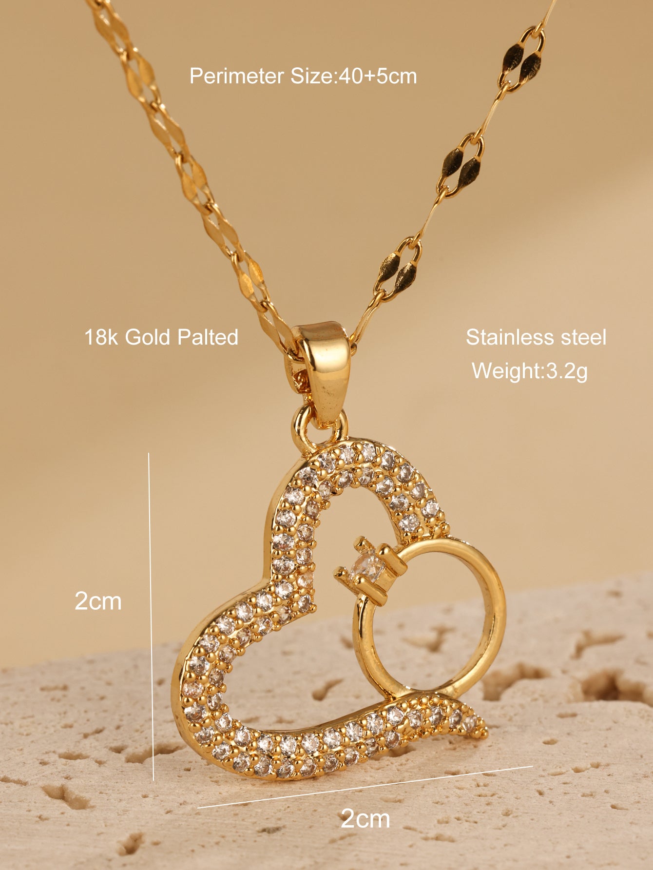 Japanese And Korean Full Diamond Heart-shaped Zircon Ring Pendant With Collarbone Chain, Minimalist And Niche Design Necklace