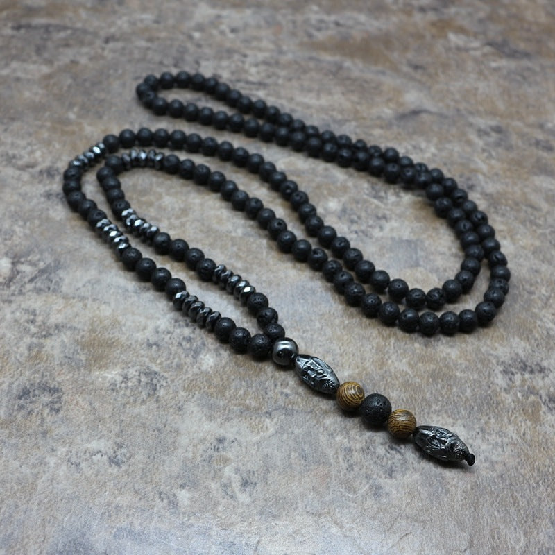 Men's Necklace 6mm Lava Rock Pendant Men's Rosary Necklace
