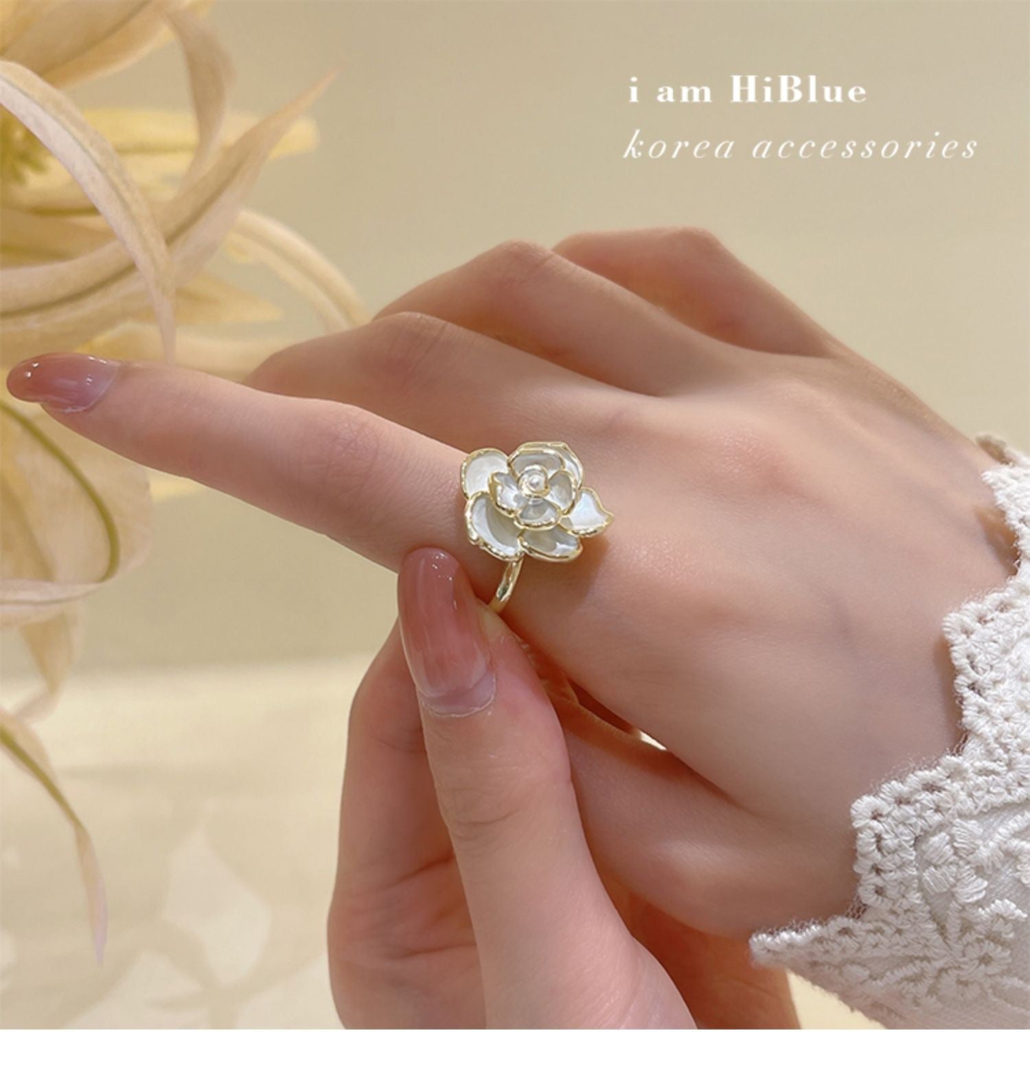 Color: white flowers open ring
