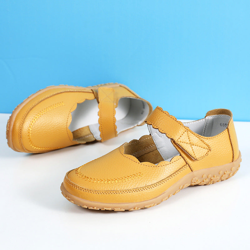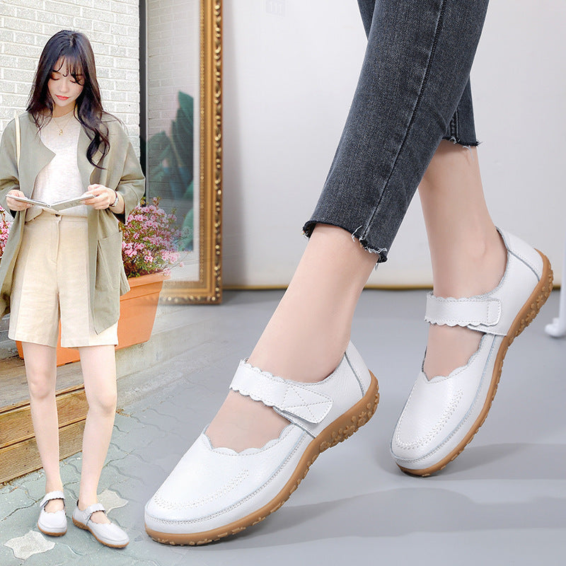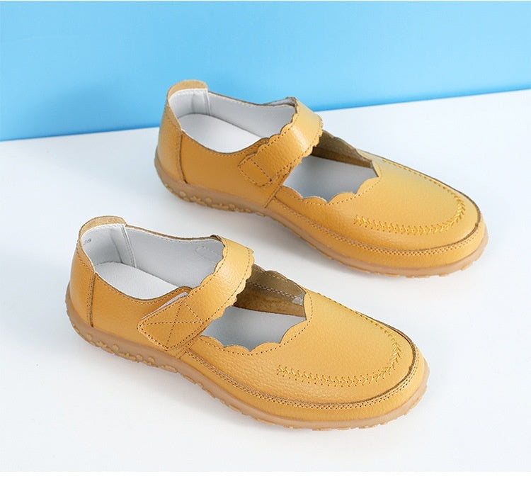 Casual Flat Hollowed Leather Shoes Round Toe Soft British Style Japanese Gommino