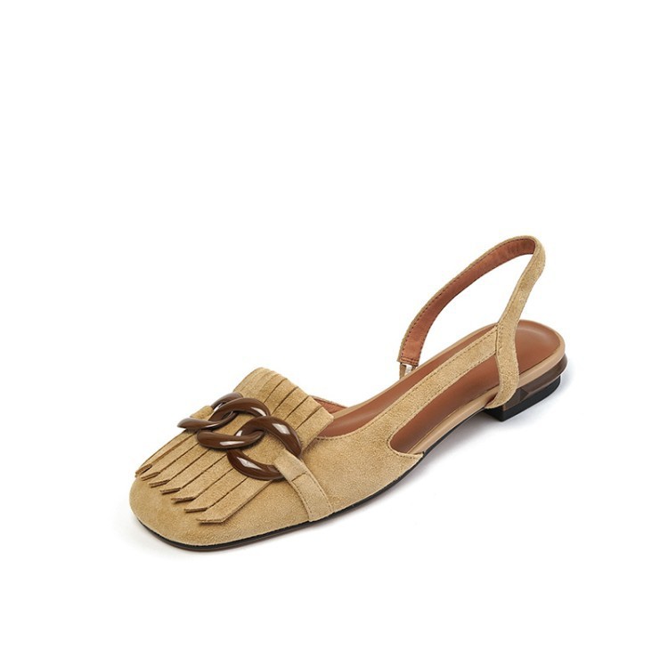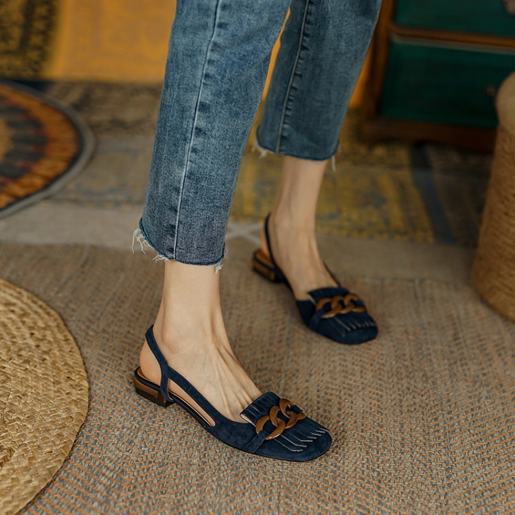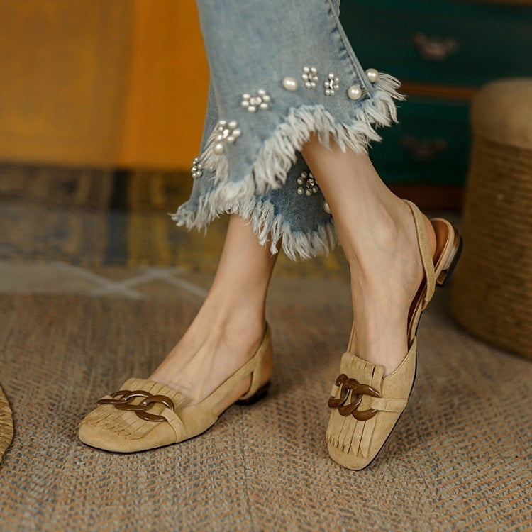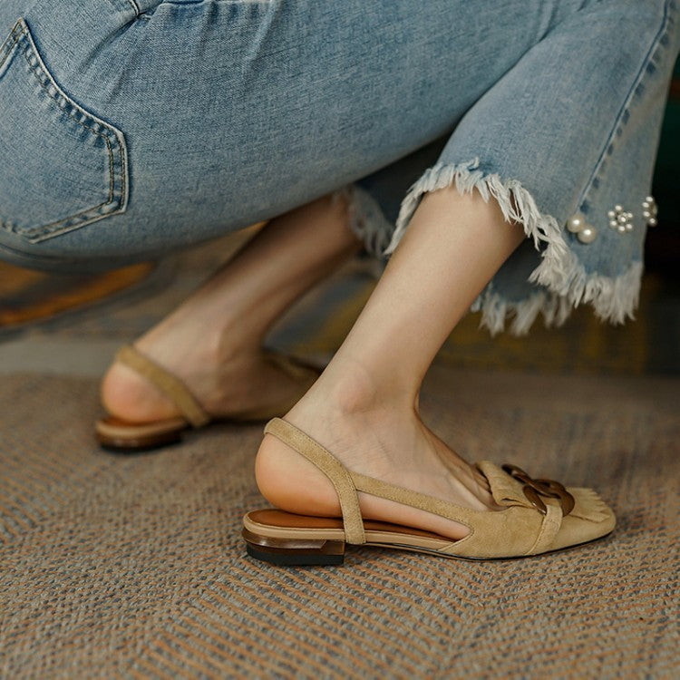Pedal Toe Cap Slingback Sandals Tassel Low Heel Women's Shoes