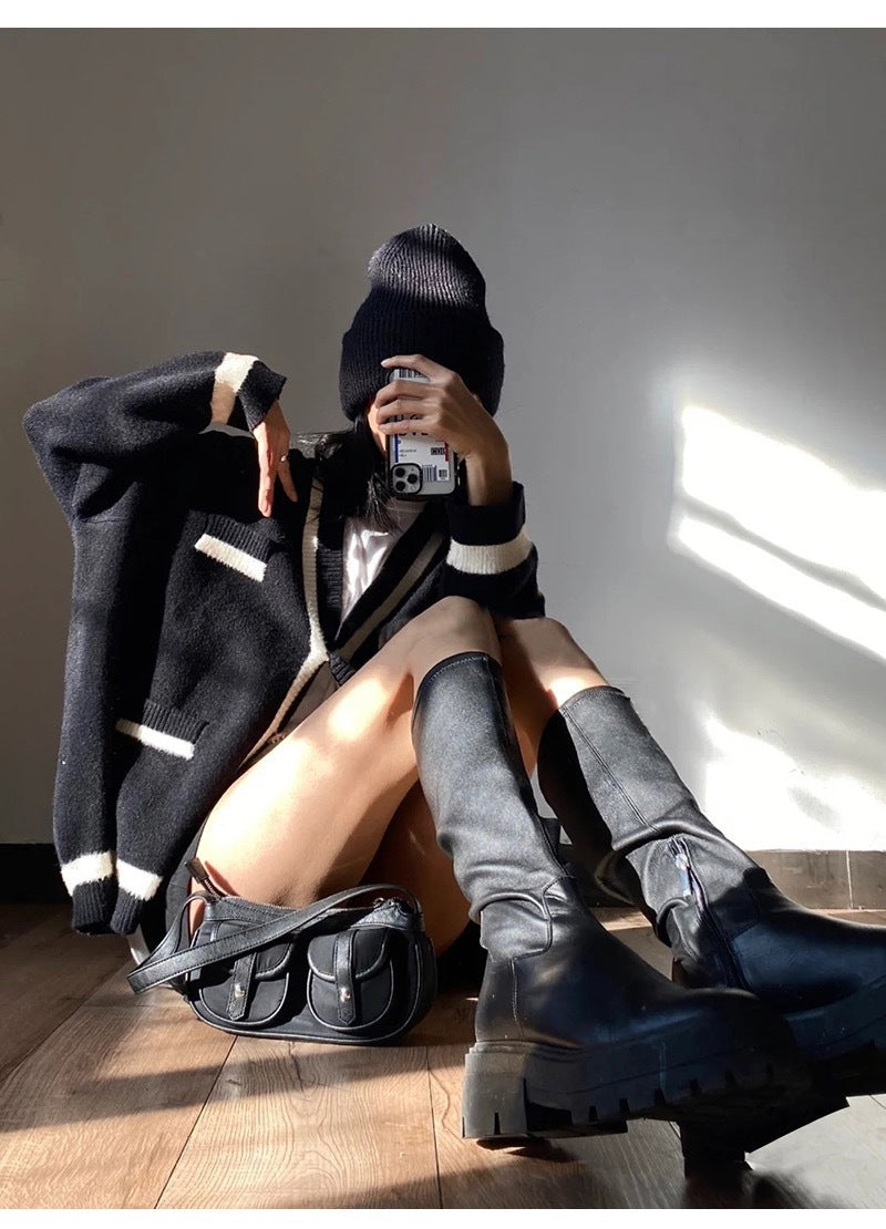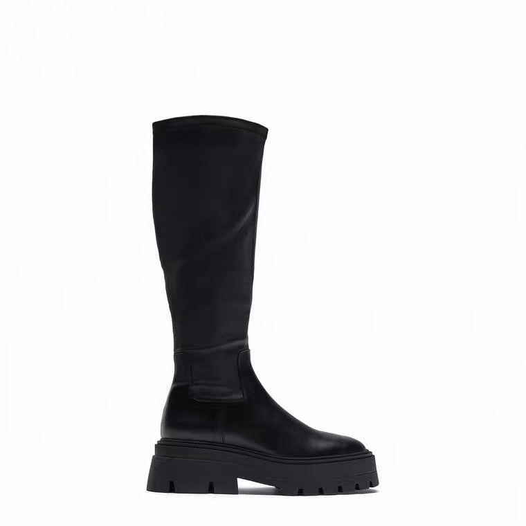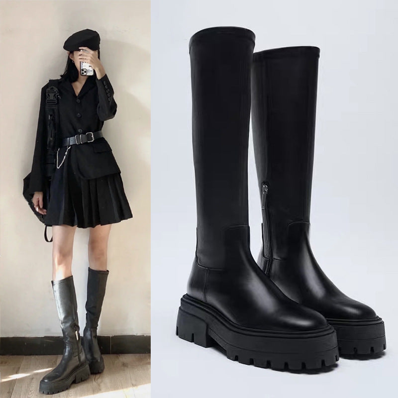Side Zipper Thick Soles Appear Thinner Than Knee Boots