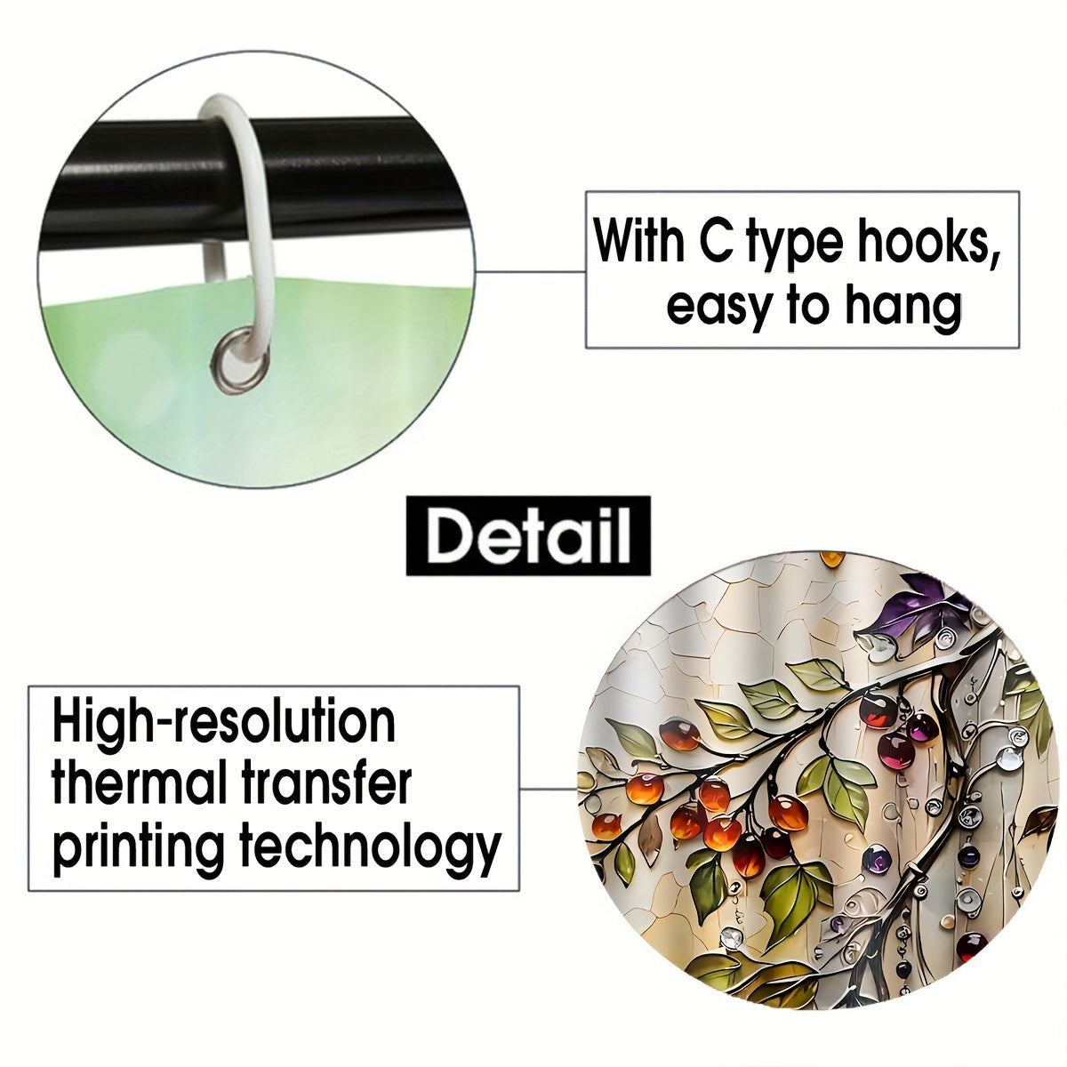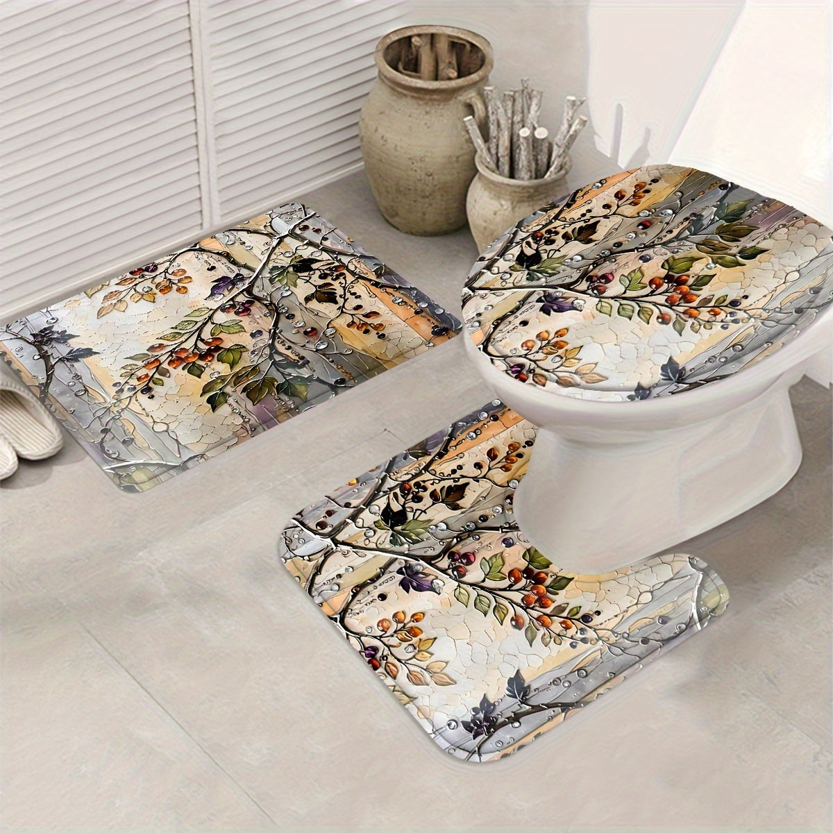 4Pcs Unique Grapevine 3D Illusion Jeweled Print On Shower Curtain Set, Includes 12 Shower Curtain Hooks, Toilet Floor Mat, Unique Cat Lover Bathroom Decor Housewarming Gift Living Room Shower Curtain Set