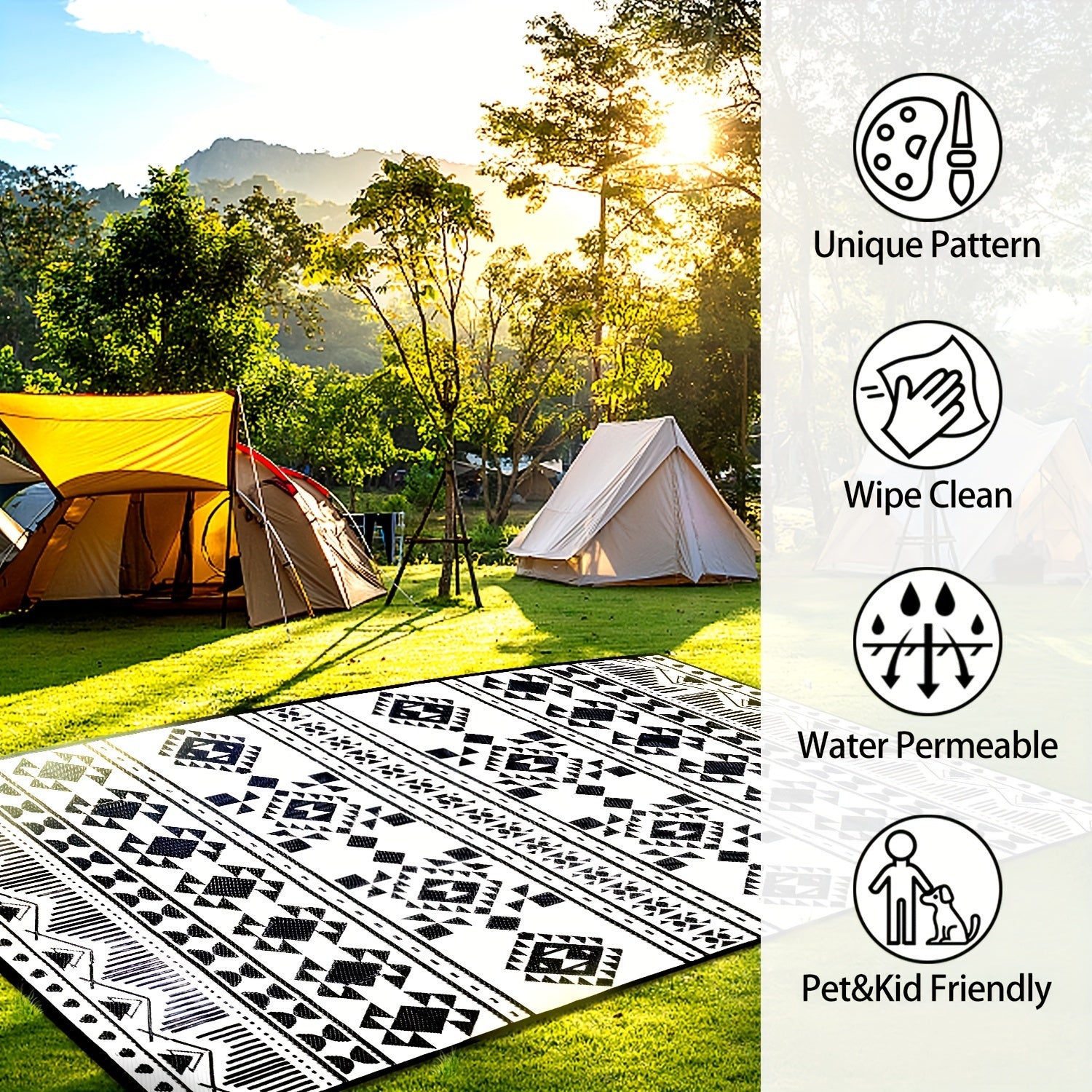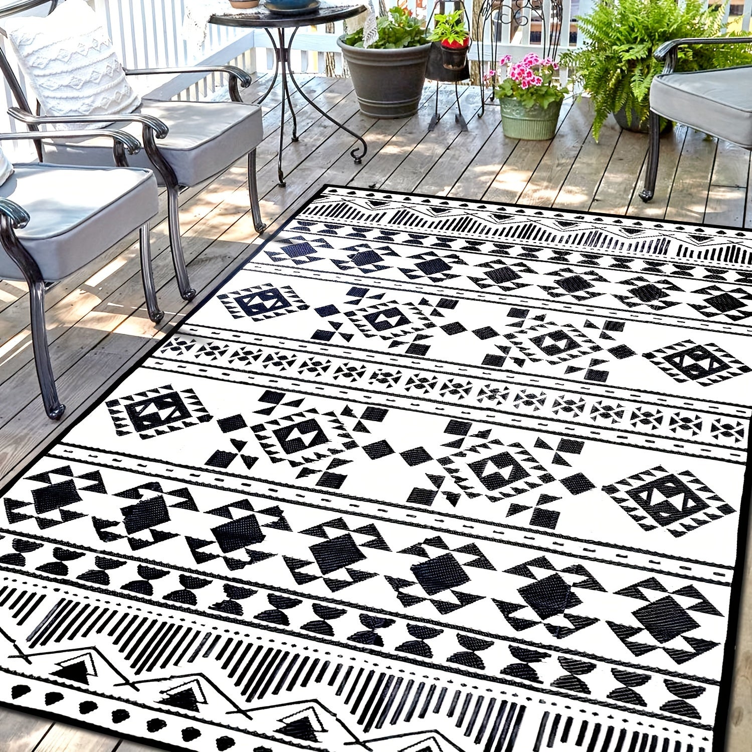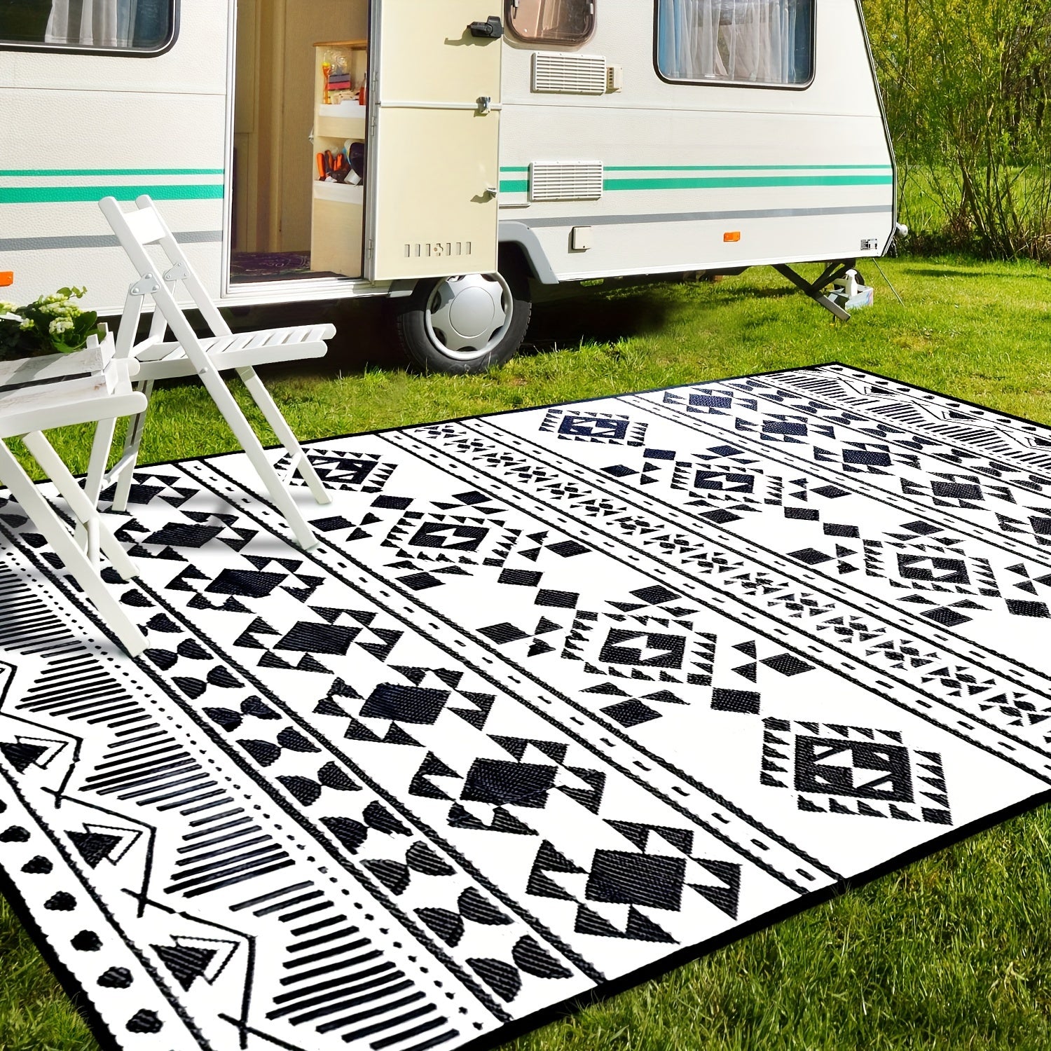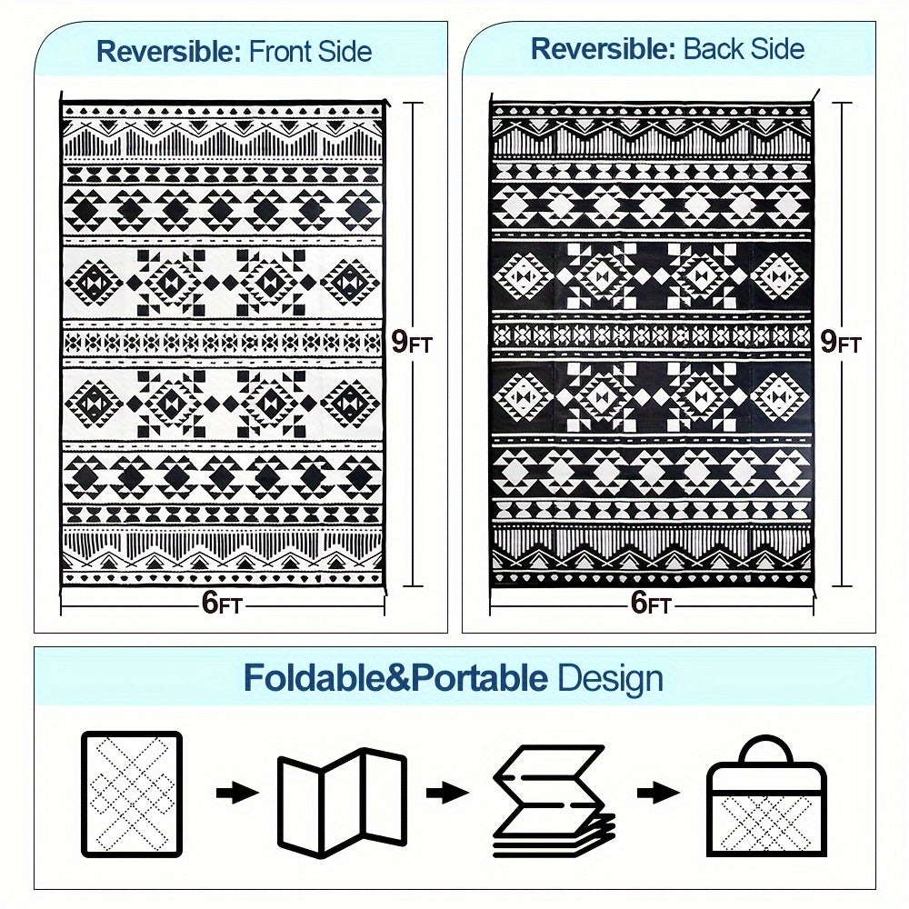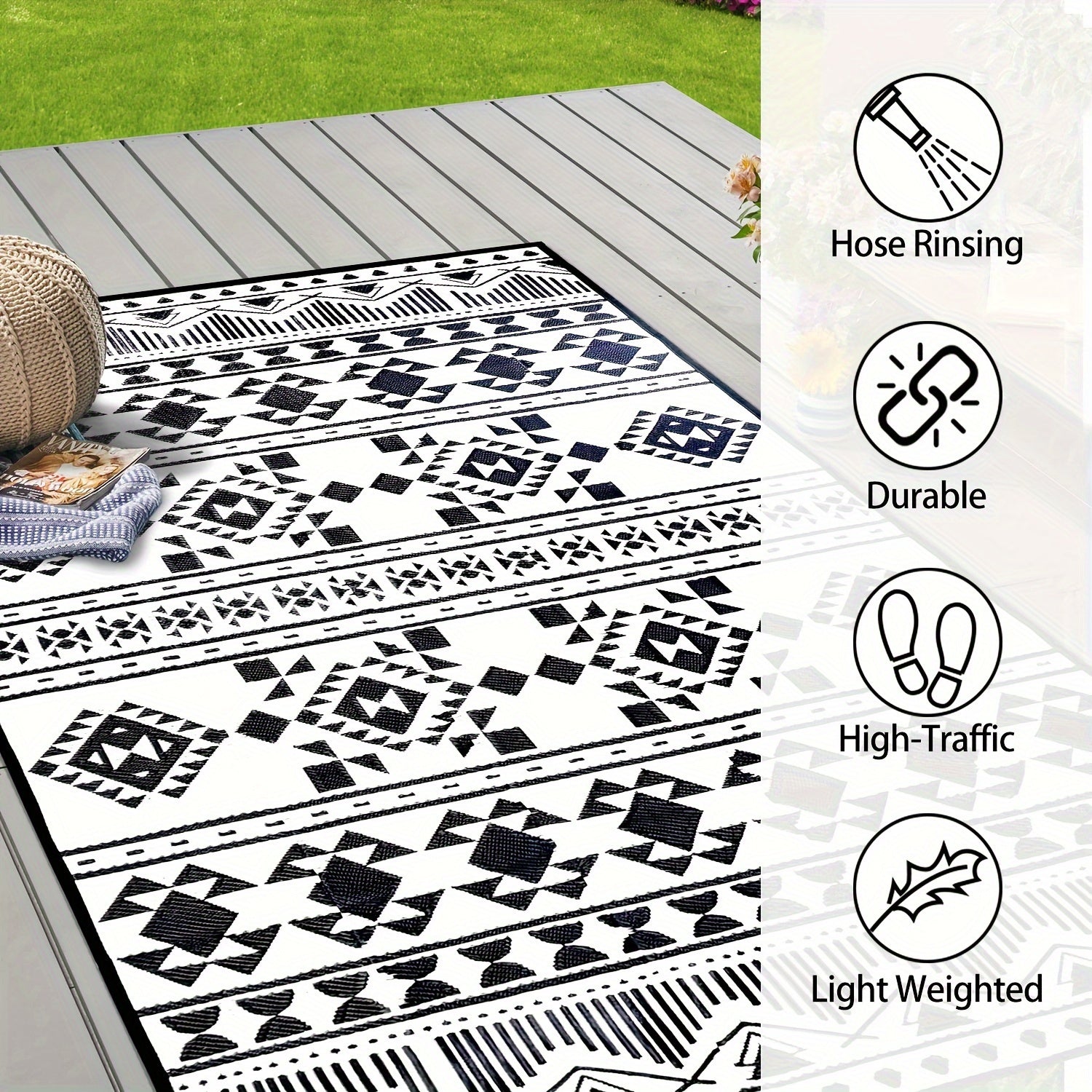 6x9ft Outdoor Rug Mat for Patio, Waterproof Reversible Plastic Straw Rugs, Camping Carpet Area Mats for RV, Porch, Deck, Backyard, Balcony, Camper, Trailer, Black & White
