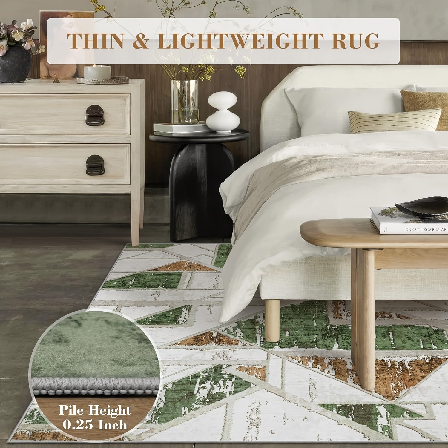 Area Rugs 8x10 Living Room: Large Soft Machine Washable Rug with Non-Slip Backing Moroccan Geometric Indoor Floor Rug Carpet for Bedroom Under Dining Table Home Office - Green/Brown