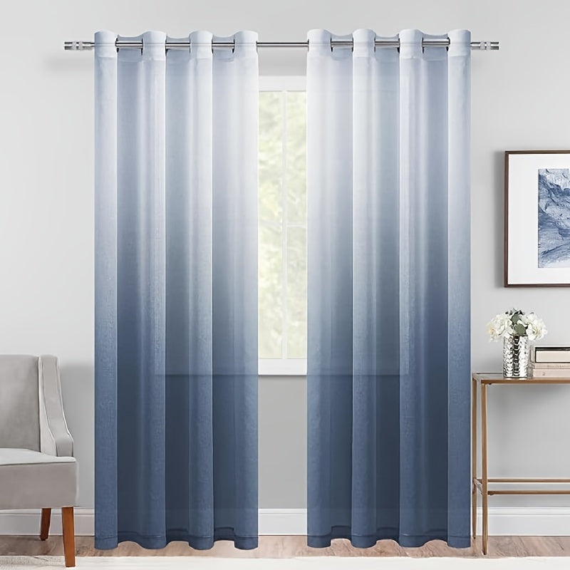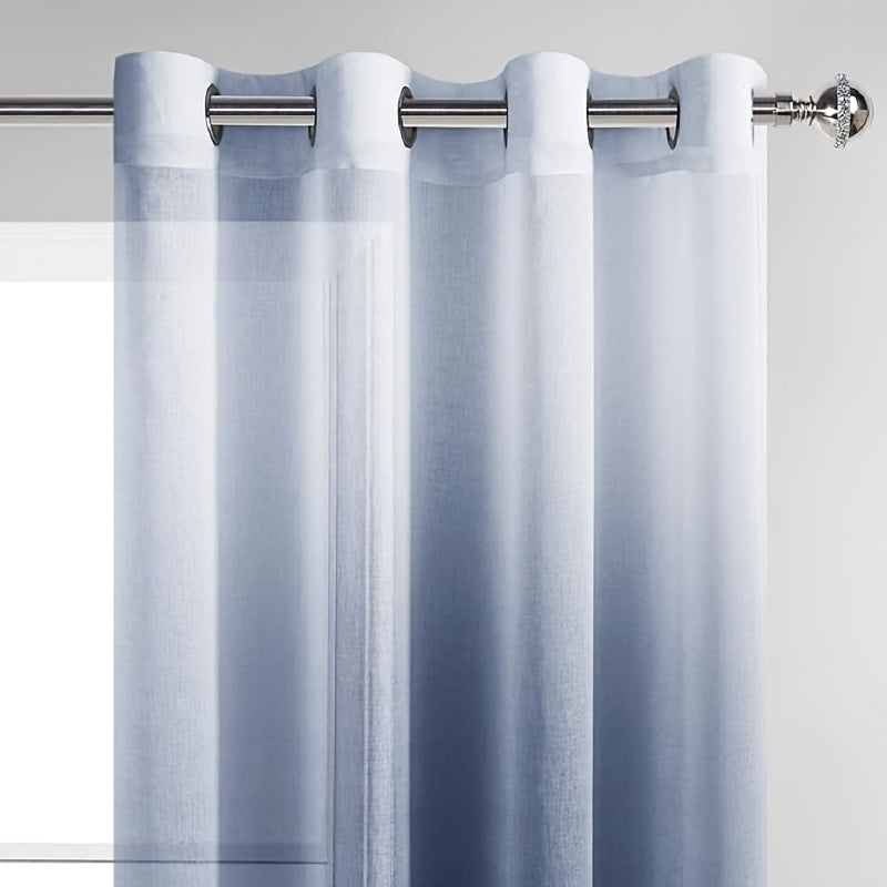 Faux Linen Ombre Sheer Curtains - Gradient Semi Voile Drapes Bedroom And Living Room Curtains, Set Of 2 Grommet Top Window Curtain Panels