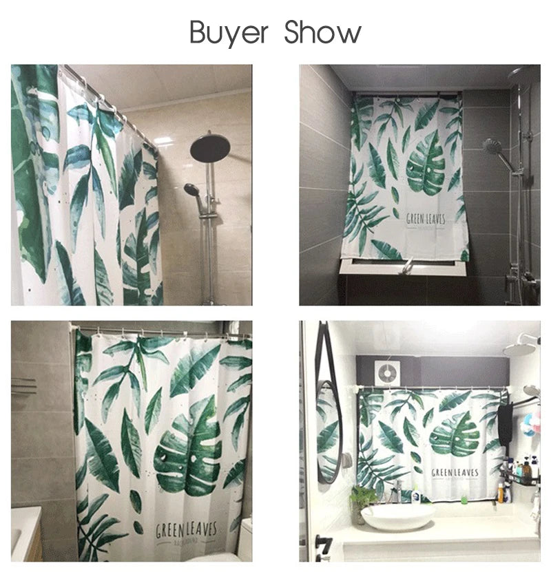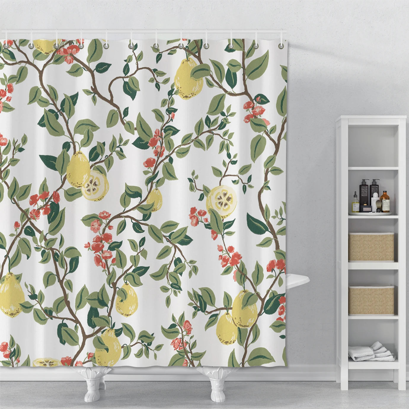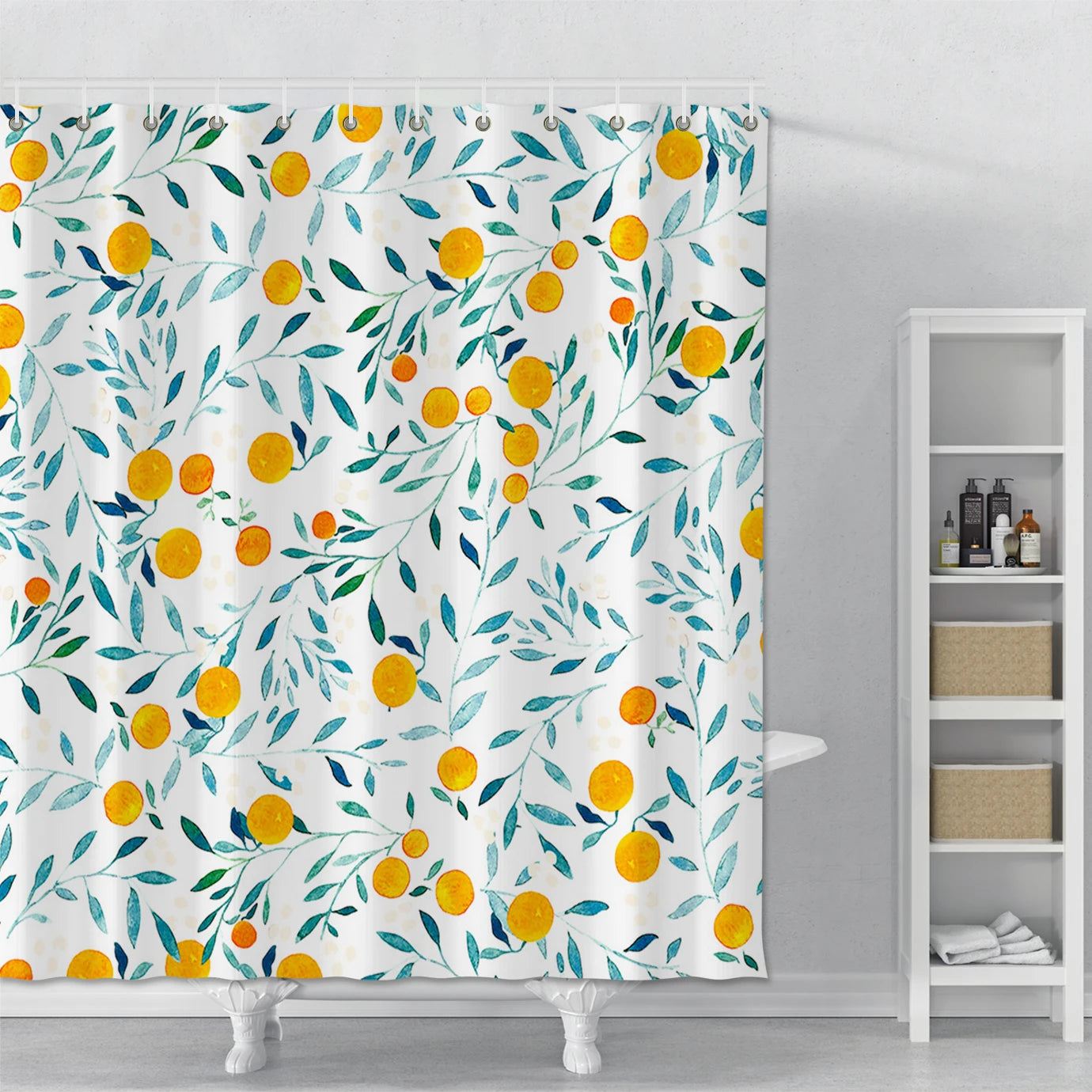 Flowers Leaves Printed Shower Curtain Waterproof Bathroom Shower Curtain With Hooks Polyester Fabric Bath Shower Curtain Decor