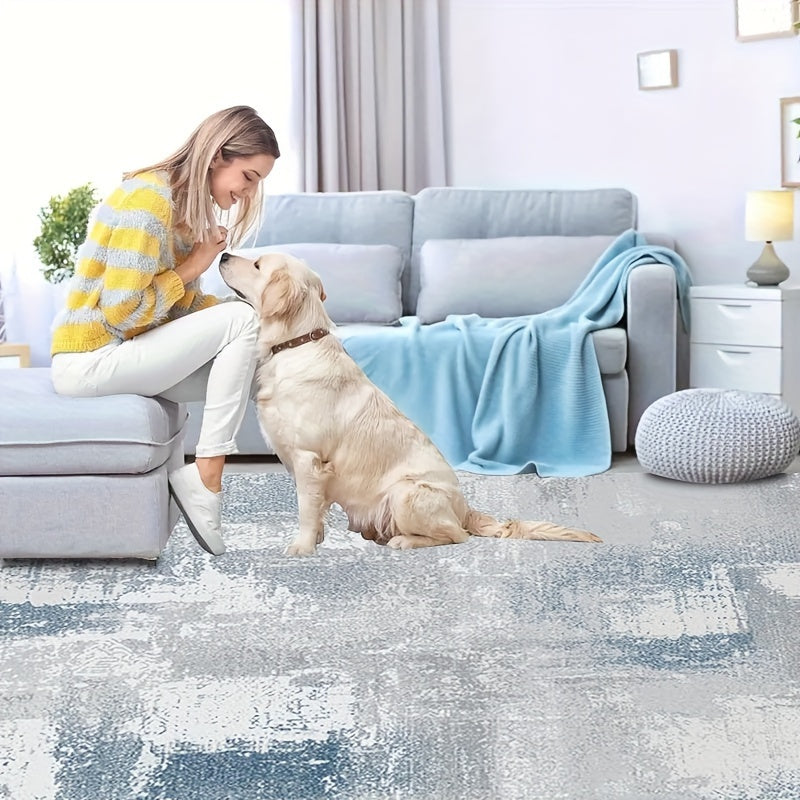 For Living Room Bedroom Dining Room Office Modern Woven Carpet, 3x5 4x6 5x7ft, Washable Carpet, Machine Washable Carpet, Abstract Area Area Rug, With Non-slip Carpet, Anti-stain, Blue And White