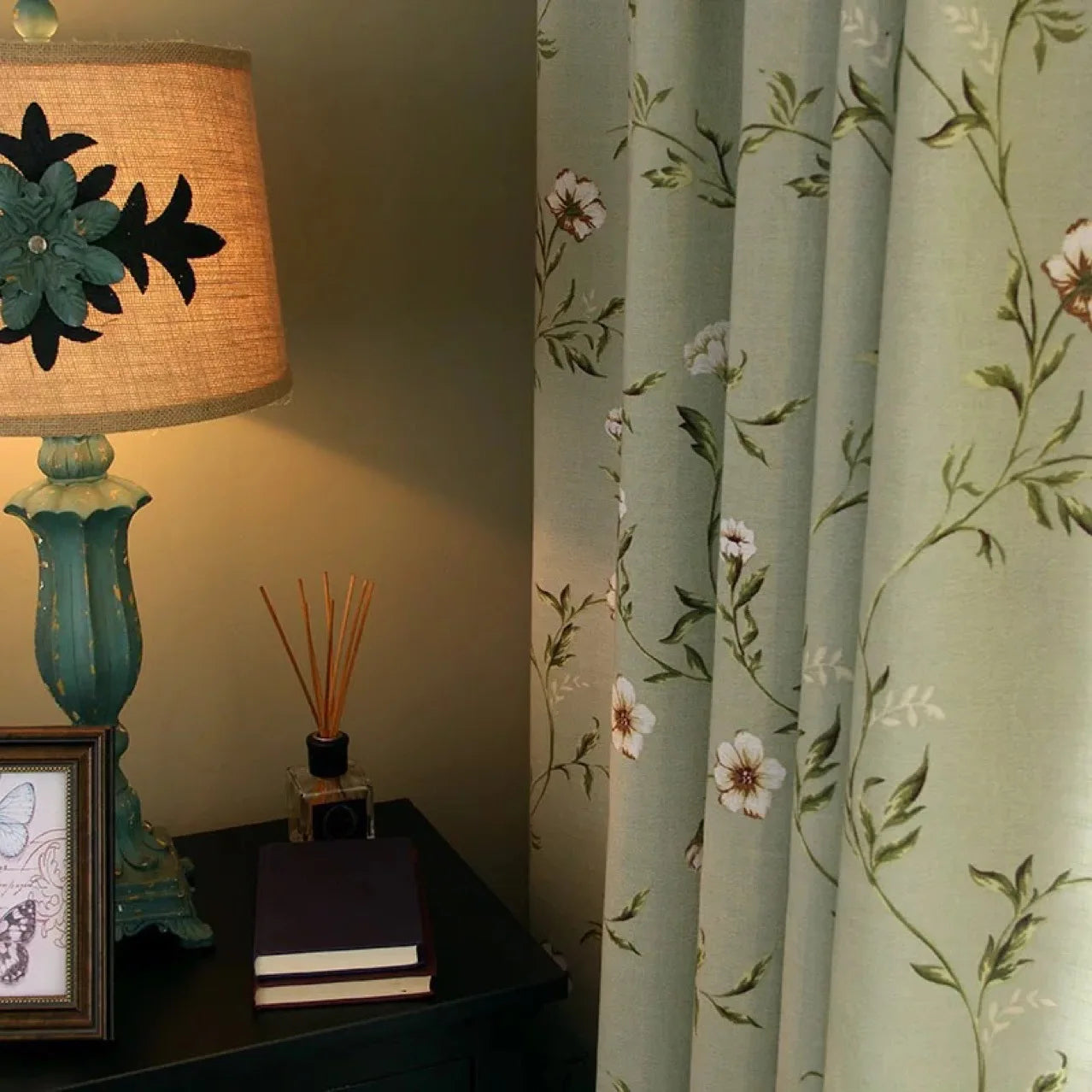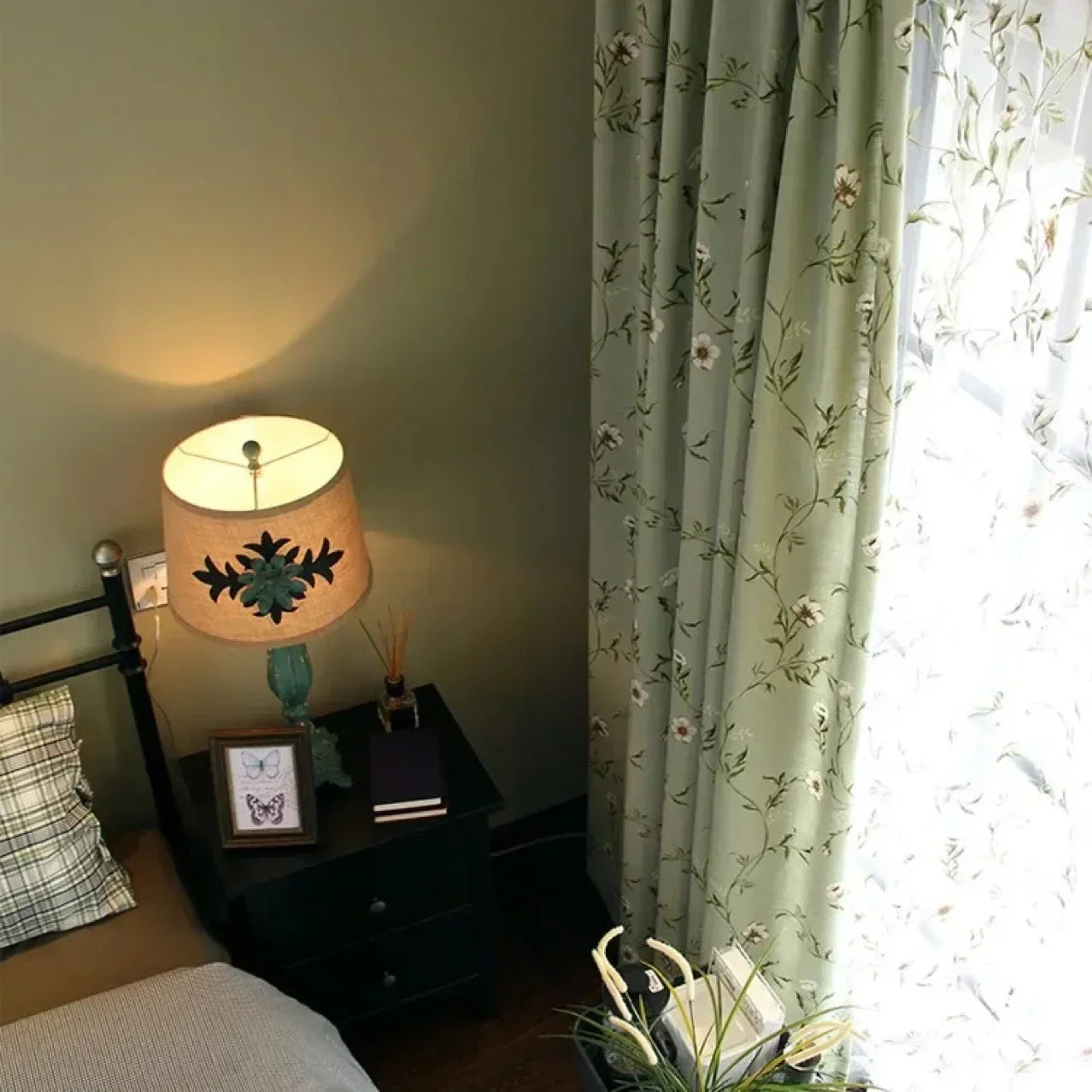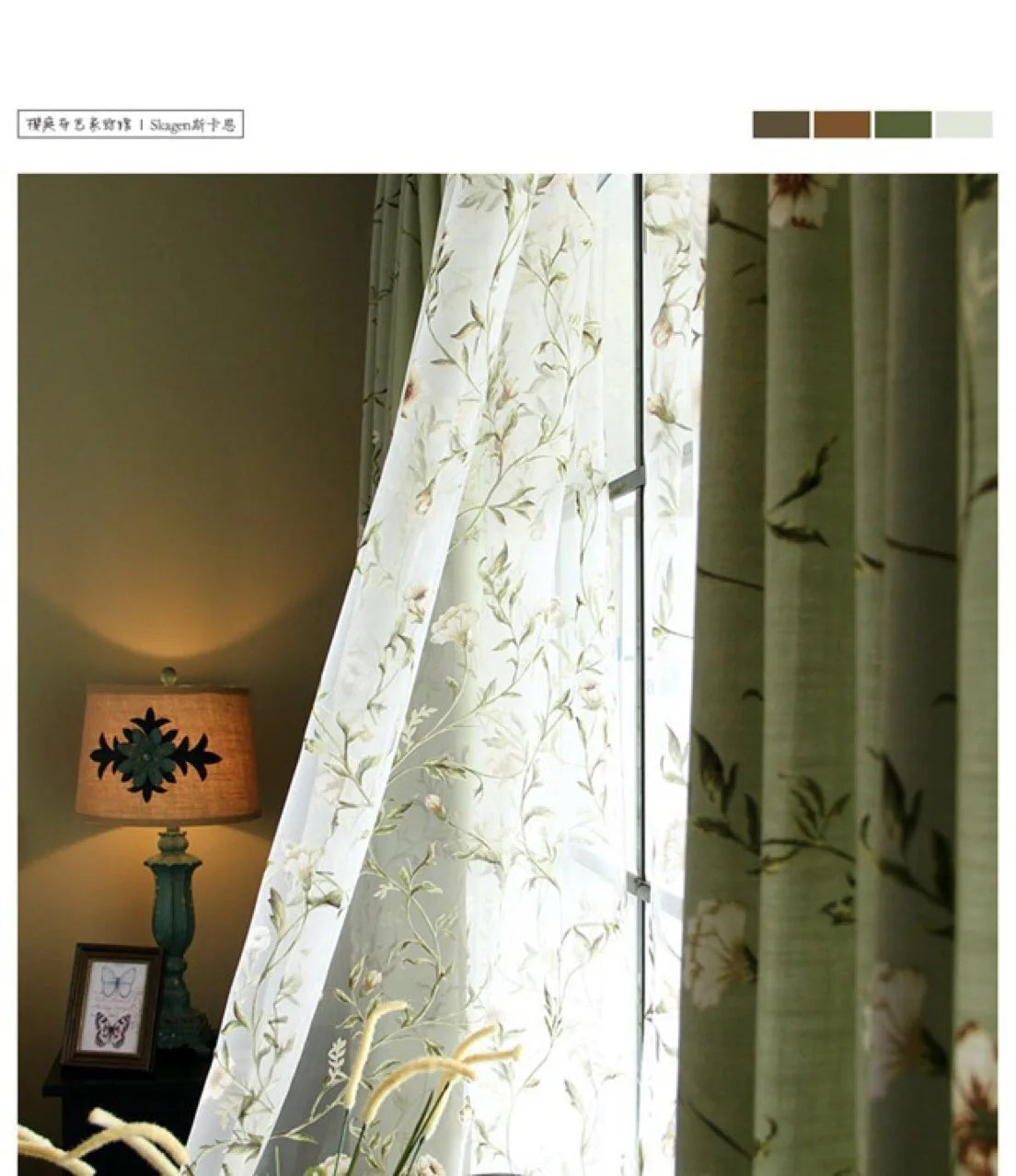 Green Flower and Bird Printed Cotton and Linen Curtains for Living Bedroom Dining Room Partition Curtains Balcony Customization