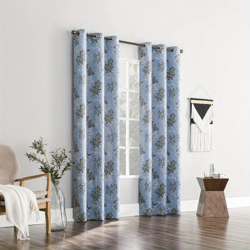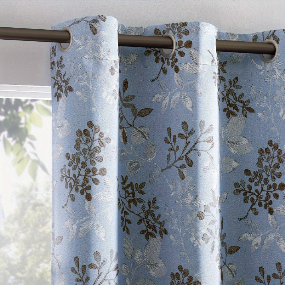 Grommet Blackout Single Curtain Panel, Blue/ Leaf, 40"W x 84"L