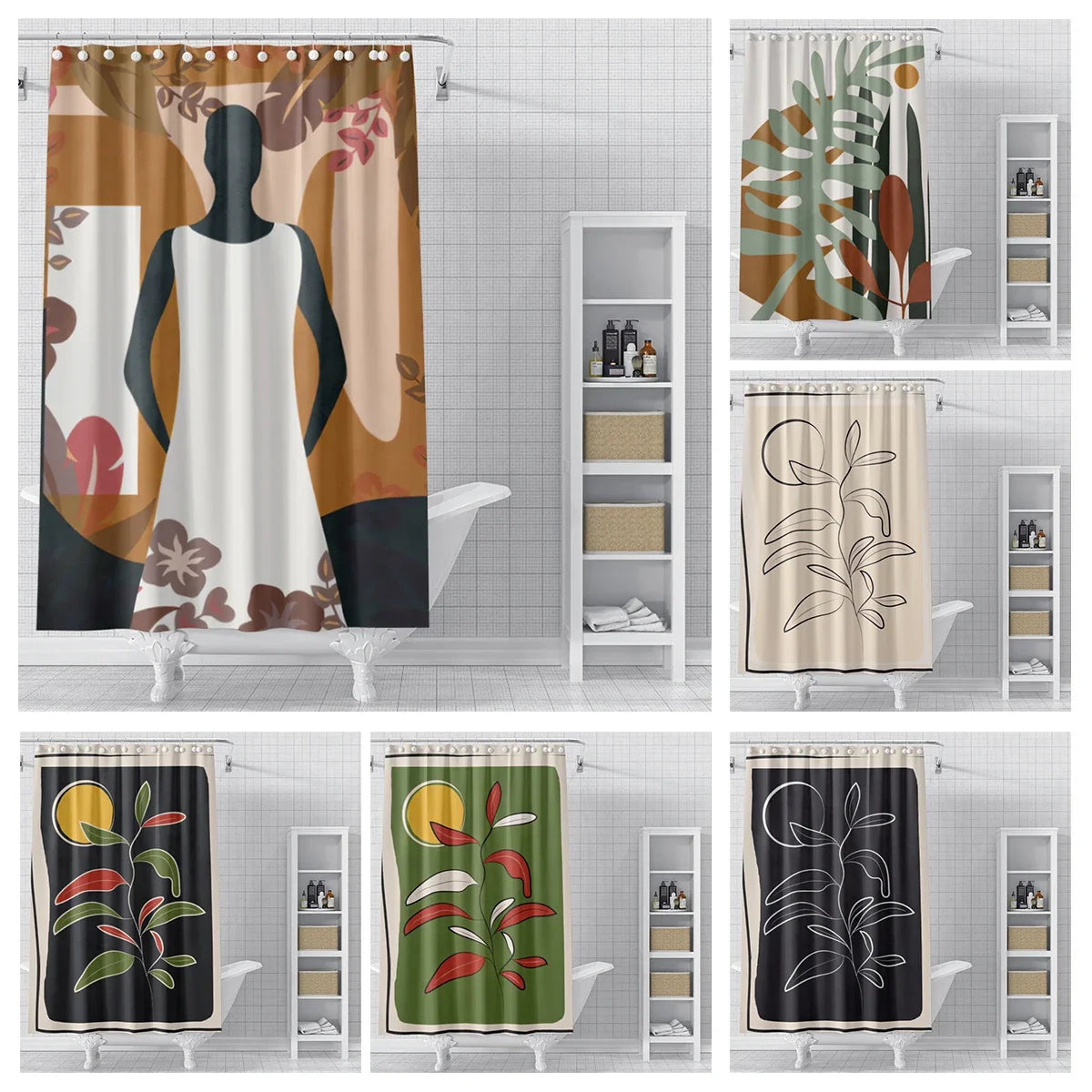 Home shower curtains for bathroom waterproof fabric Modern Nordic style bathroom Curtains shower curtain Abstract morandi plant