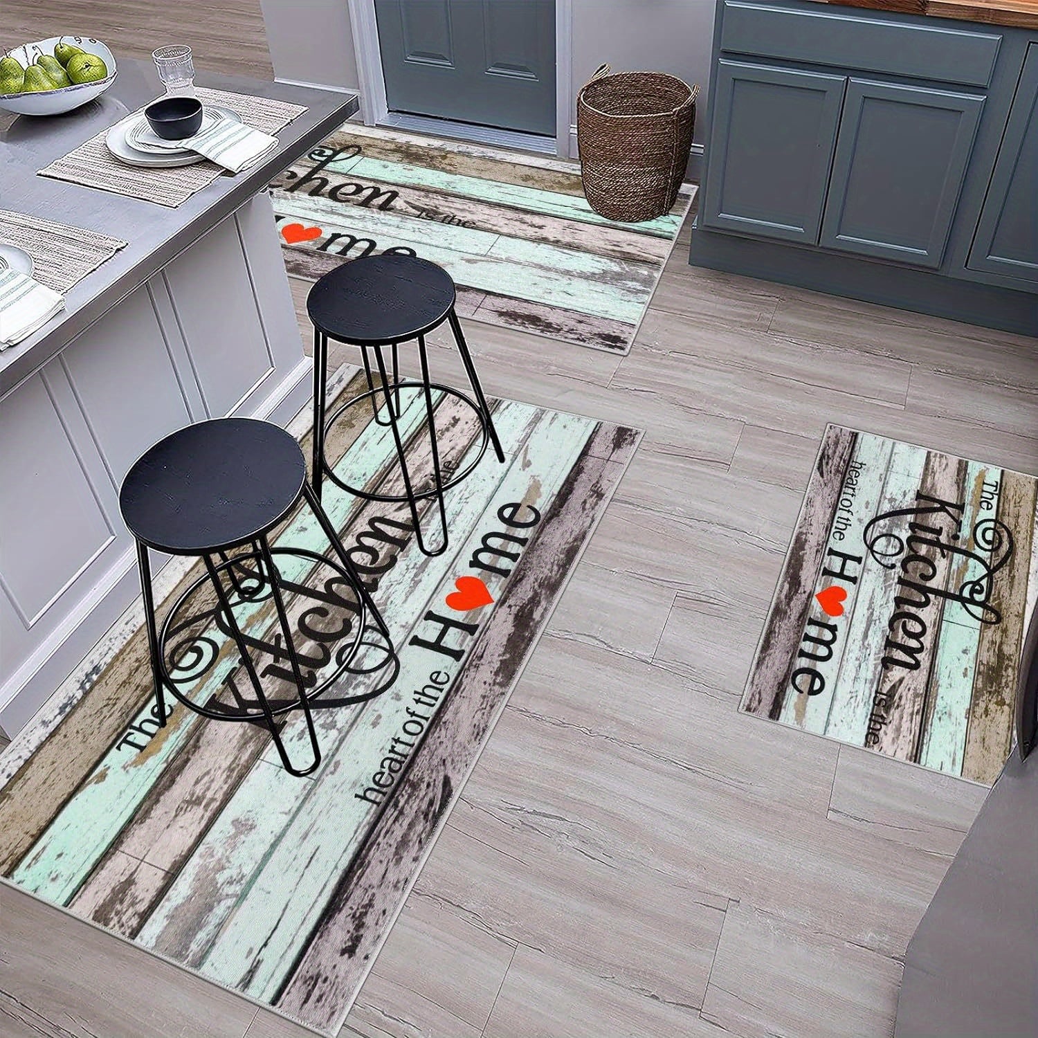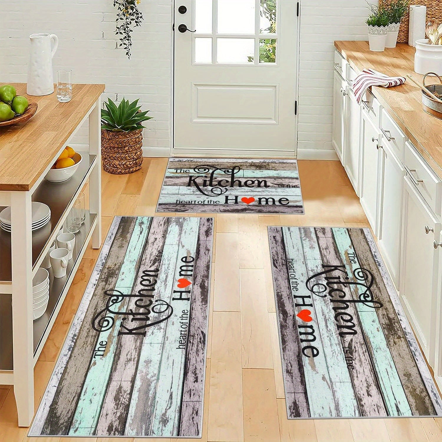 Kitchen Rugs Sets of 3 Non Slip Farmhouse Rugs for Kitchen Floor Machine Washable Kitchen Runner Carpet Mat for Kitchen Home Office Hallway Sink Door