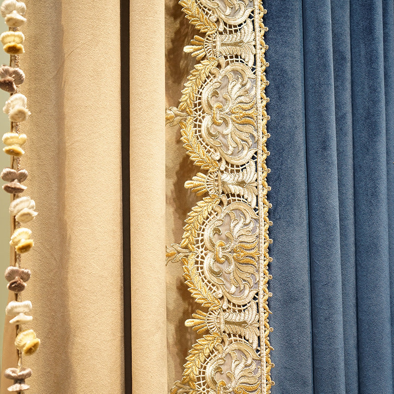 Light Luxury Stitching Dark Blue Velvet Cloth Bedroom Water-soluble Embroidered Curtain