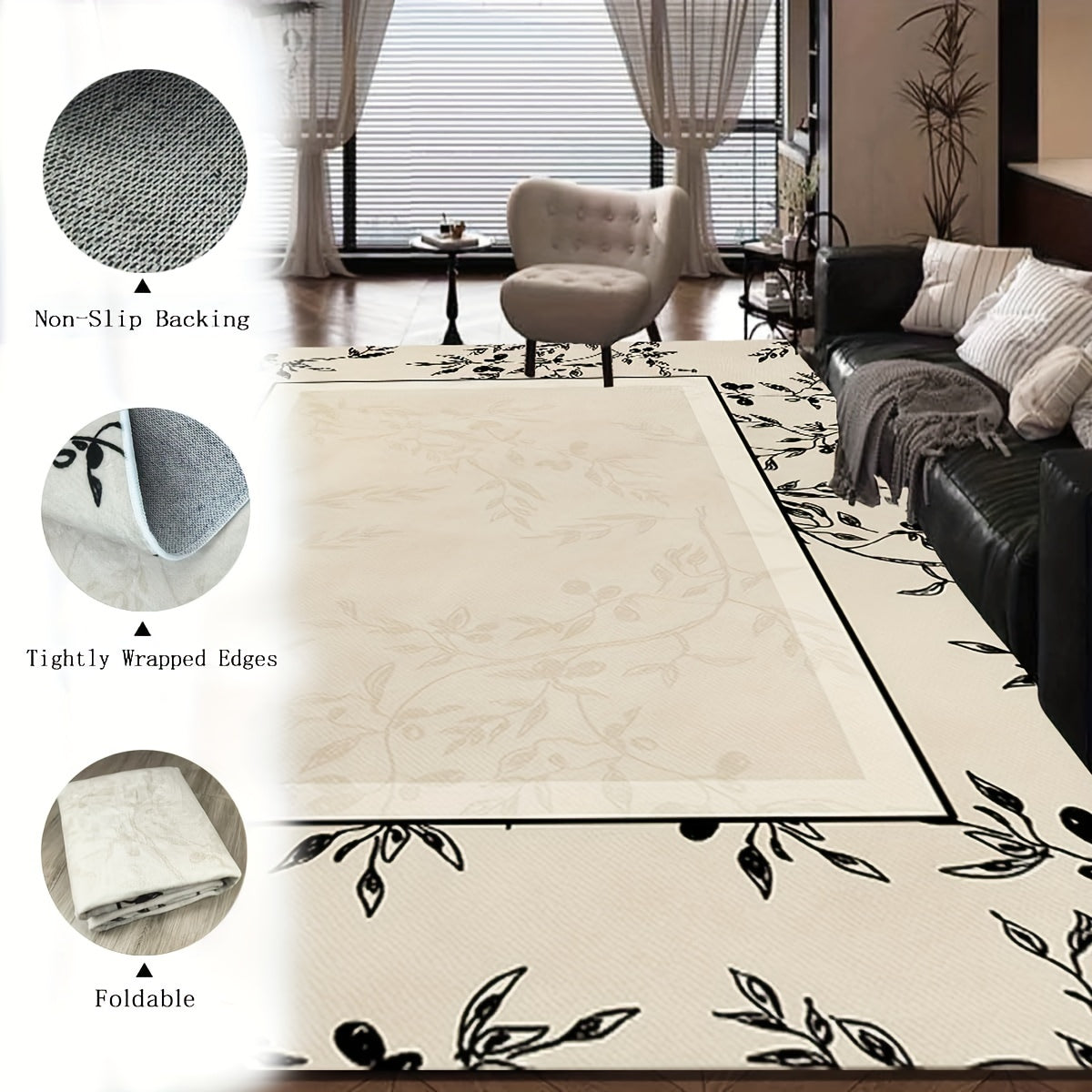 Modern Abstract Area Rug for Living Room, Bedroom, Dining Room, Office - 5x7ft, Machine Washable, Lightweight, Non-Slip, Water-Resistant, Low Pile, PVC and Polyester Fiber, Rubber Backing - Indoor Use