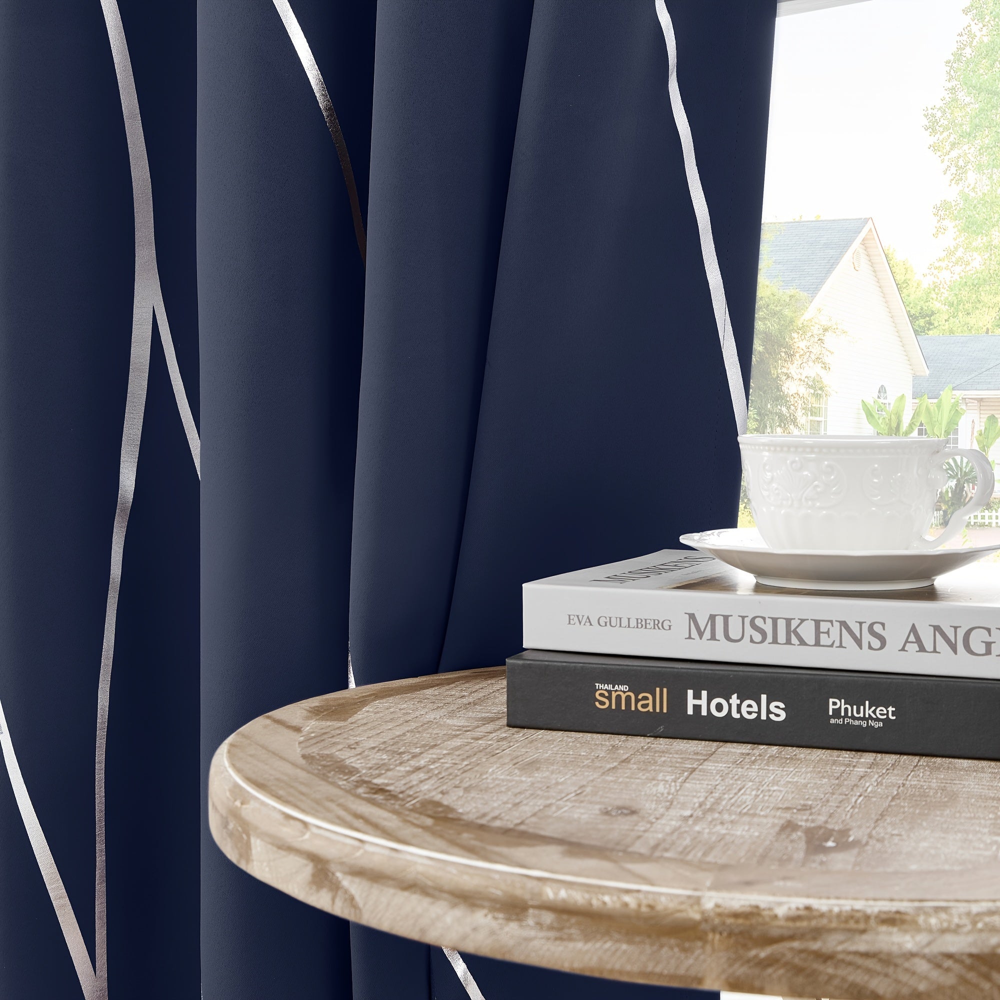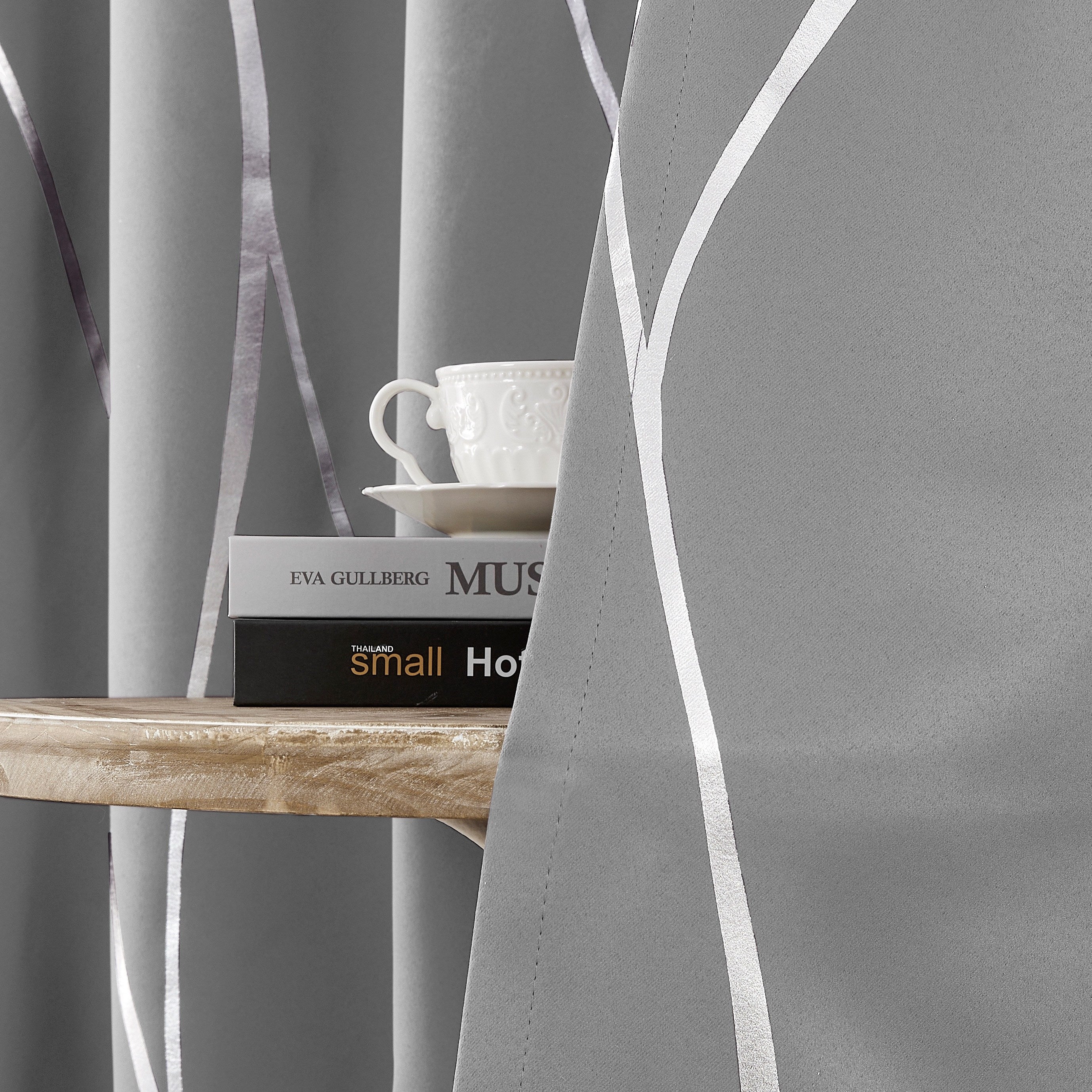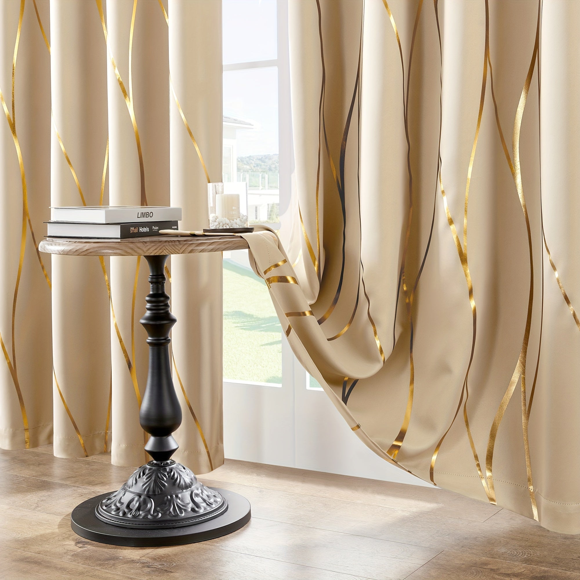Pack Of 2 Blackout Curtains, Gold And Slive Wave Pattern Foil Print Room Darkening Curtain, Thermal Insulated Energy Saving Window Drapes For BedRoom