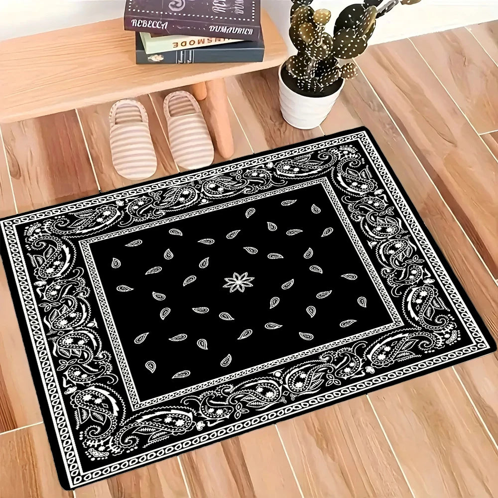 Paisley Bandana Print Area Rug Anti Slip Ethnic Carpet for Home Kitchen Living Room Bedroom Floor Mat Washable Area Flannel Rugs