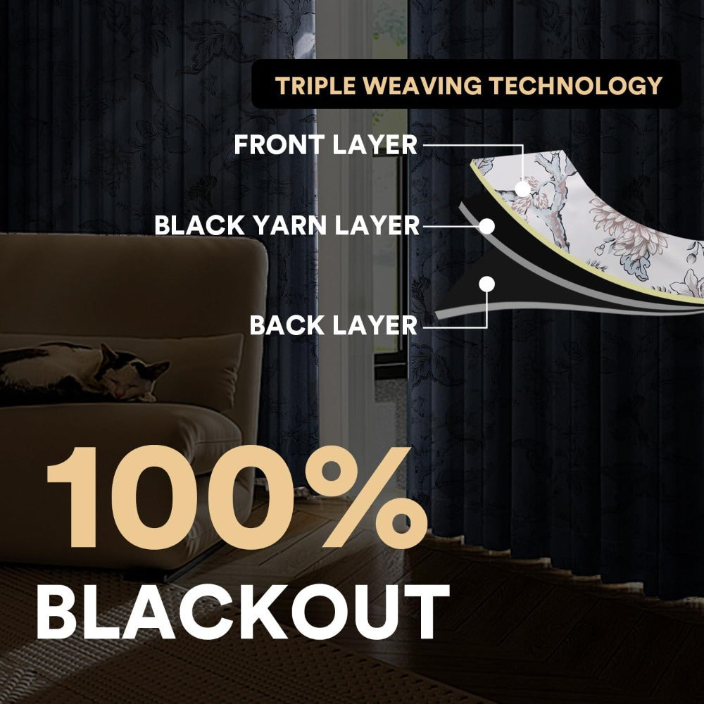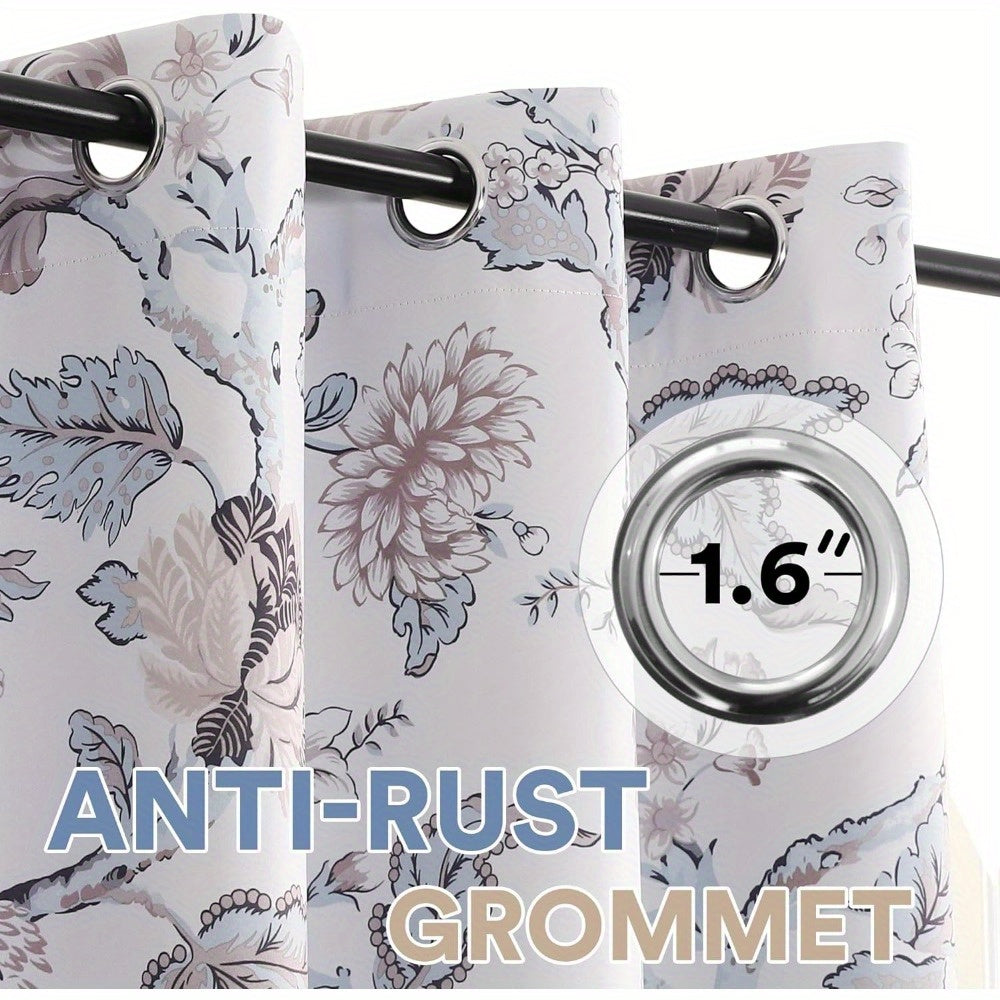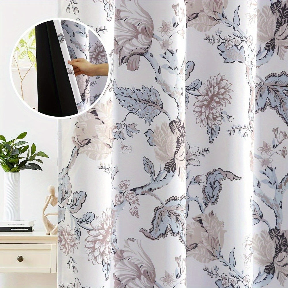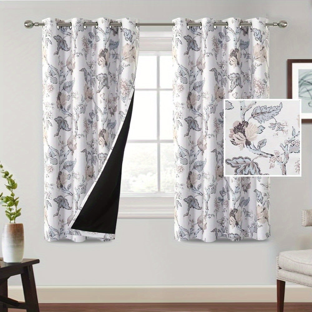 PrinceDeco 100% Blackout Curtains for Bedroom 63 Inches Long Floral Blackout Curtains for Kitchen Enegy Saving Thermal Insulated Grommet Top Window Drapes Set 2 Panels