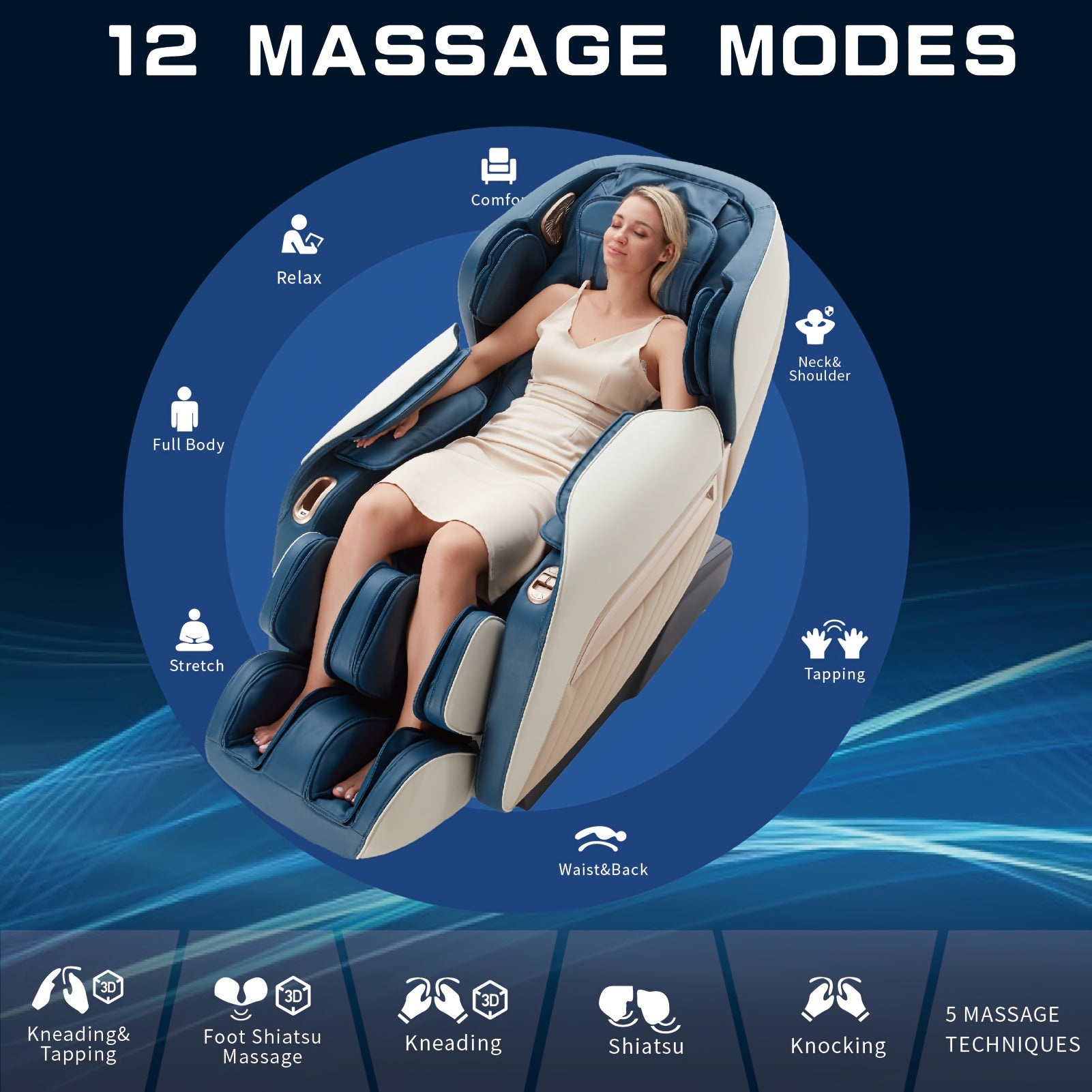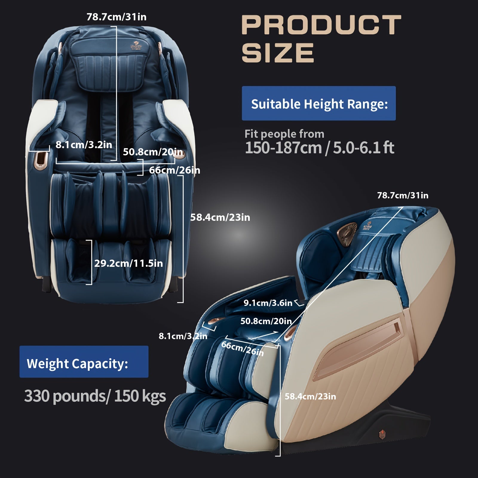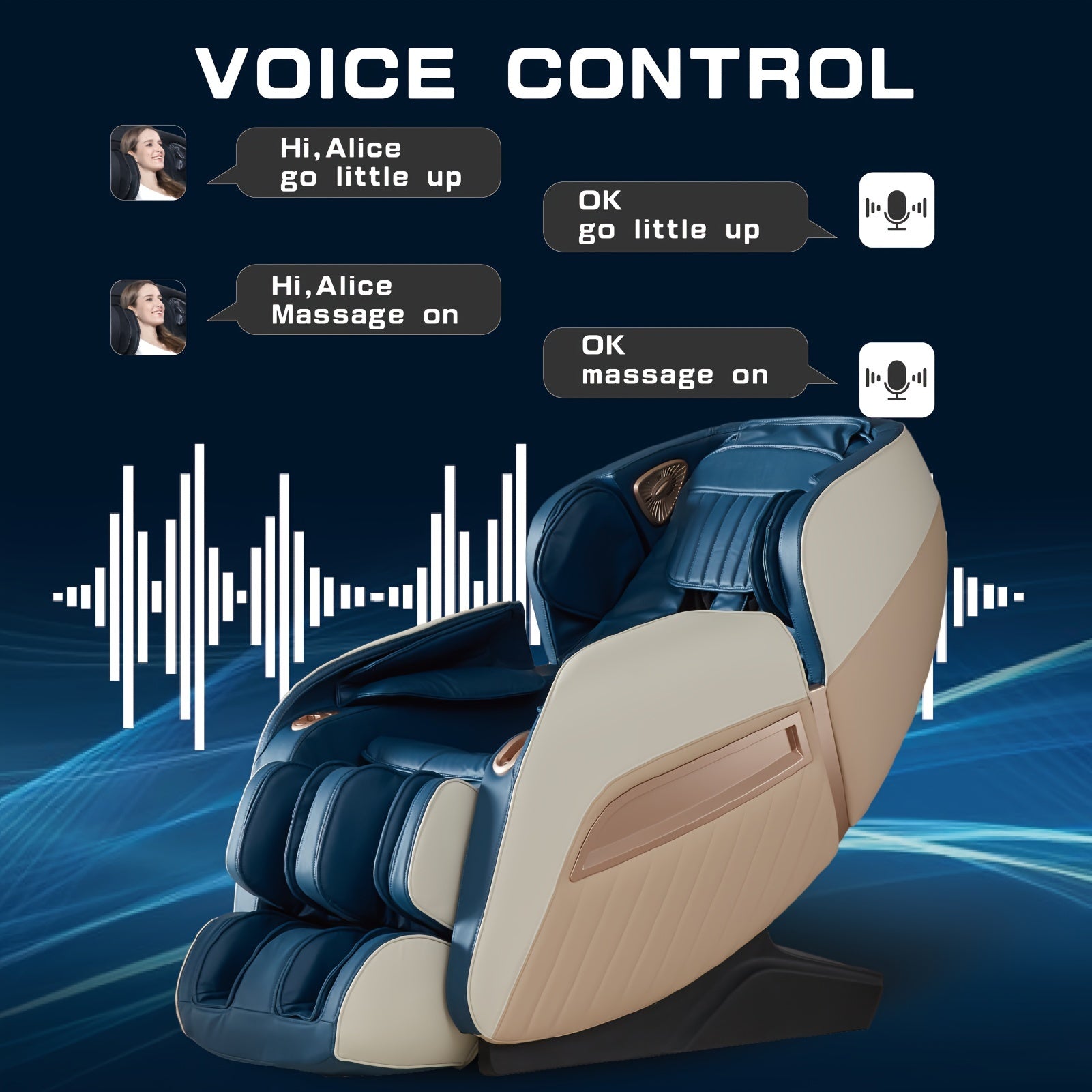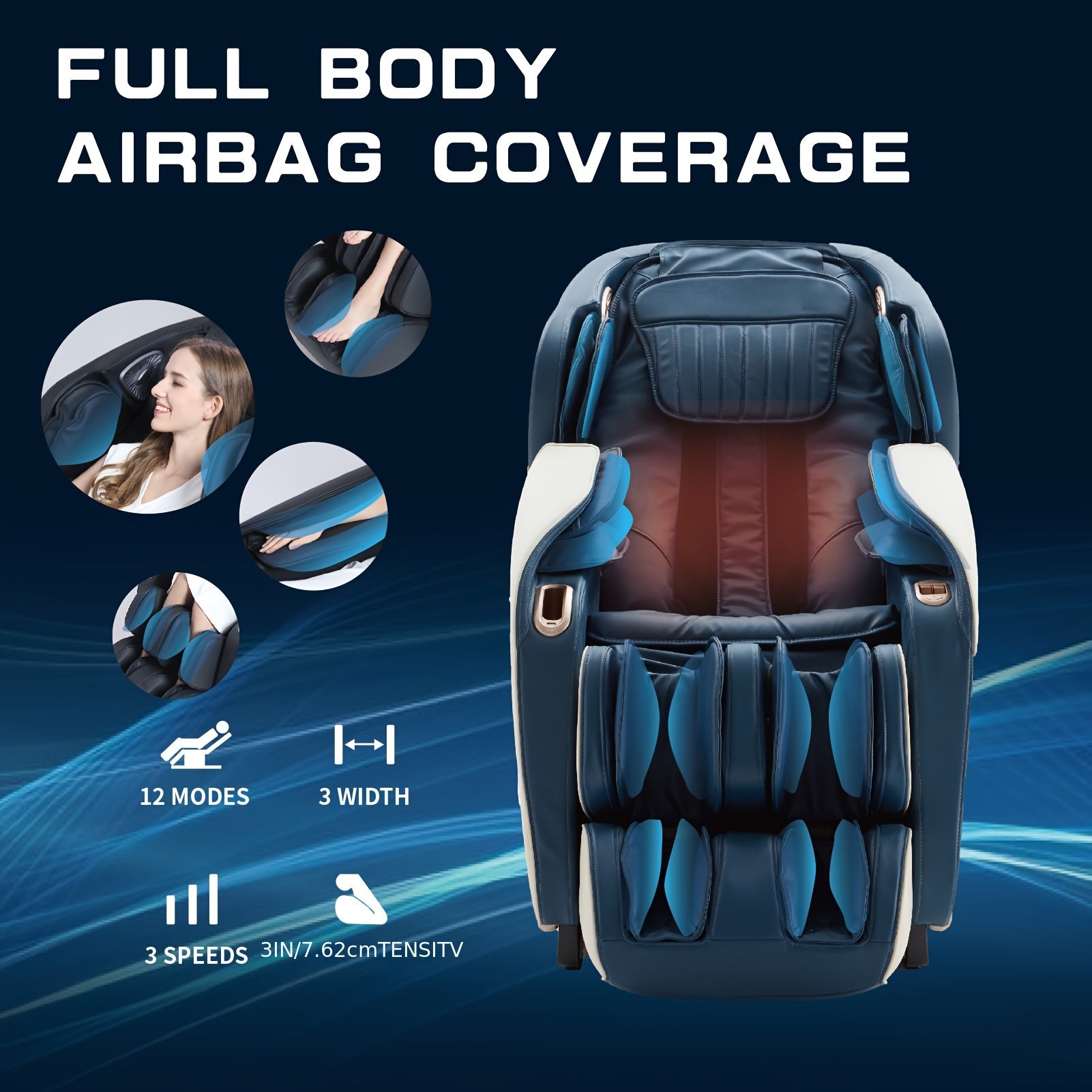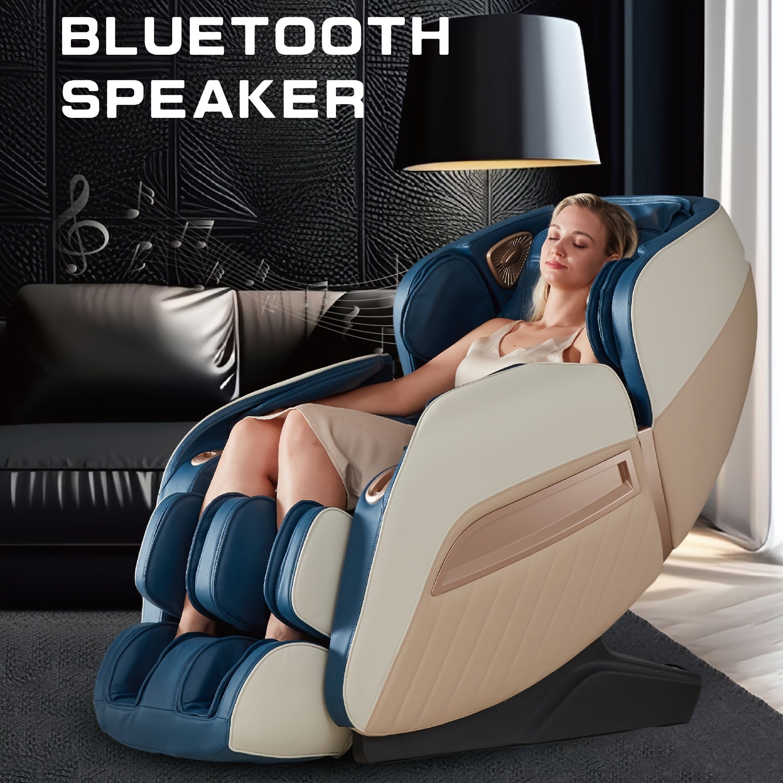 Relaxation Masterpiece Massage Chair - Full Body Recliner with Heat, Zero Gravity, Air Pressure, SL Track, Intelligent Voice Control, Foot Roller, BT Speaker, and Soothing Blue/Black Design for Ultimate Comfort and Relaxation