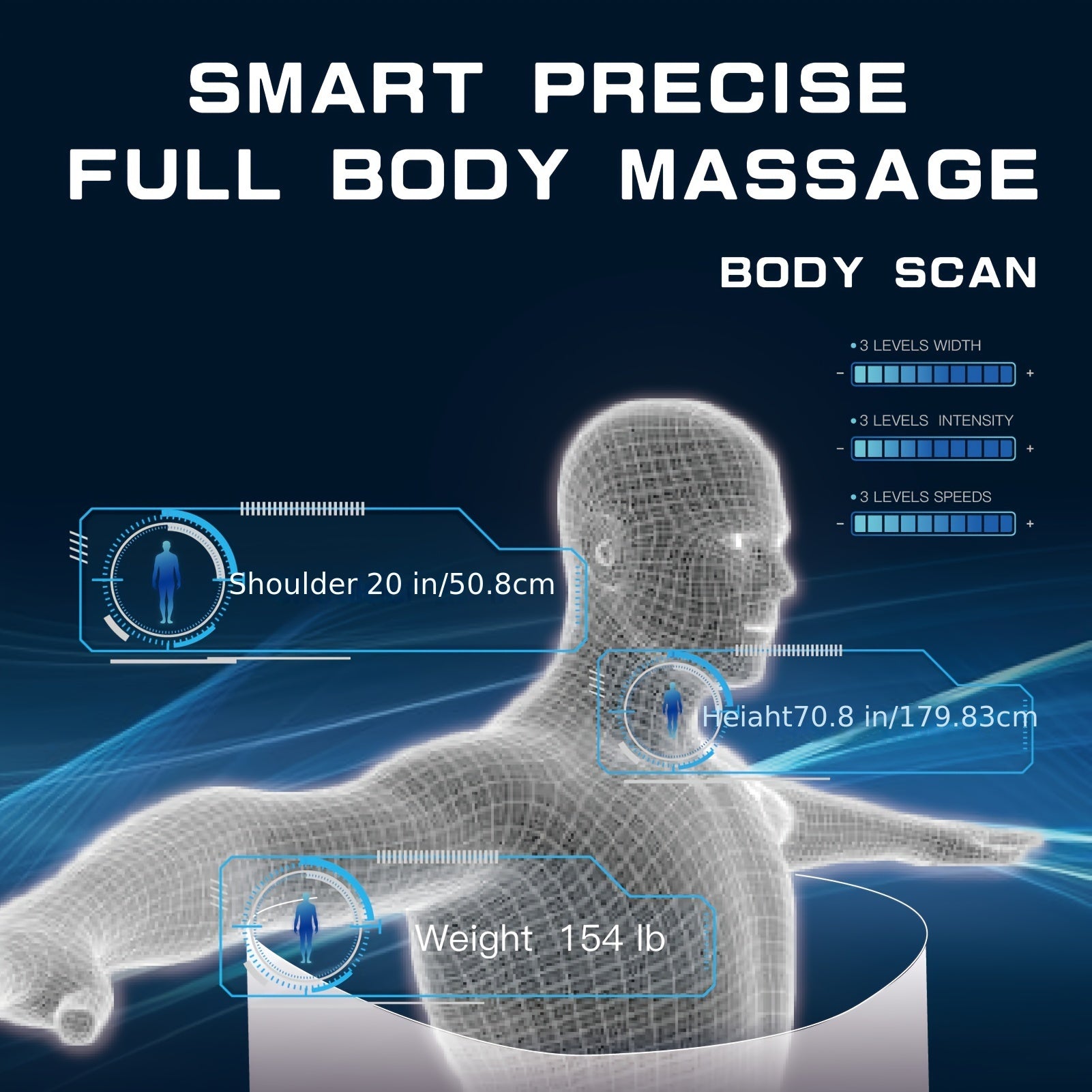 Revolutionary 3D Massage Hands: This state-of-the-art full body massage chair goes beyond traditional fixed massage rollers, featuring advanced 3D Massage Hands. Unlike fixed rollers, the 3D Massage Hands can replicate the techniques of a professional masseuse, performing various massage actions such as kneading, squeezing, flapping, pressing, pushing, holding, swinging, and twisting. Moreover, this massage chair can extend up to 7cm forward to alleviate deep muscle pain.