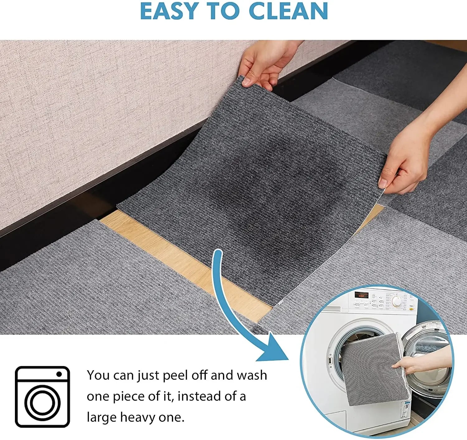 Self Adhesive Square Carpet Tiles Commercial Carpet Floor Mat DIY Carpet Tile Reusable Carpet Rug for Living Room Bedroom