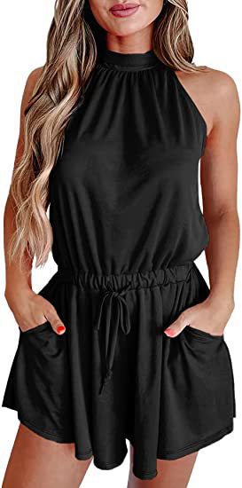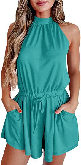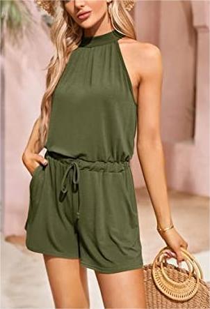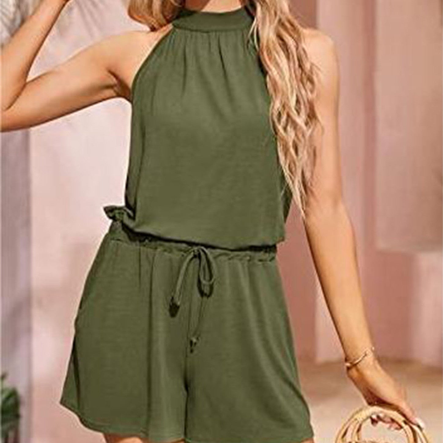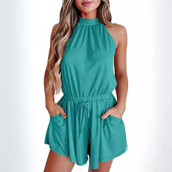 Women's Waist-controlled Lace-up Halter Loose Printed Jumpsuit
